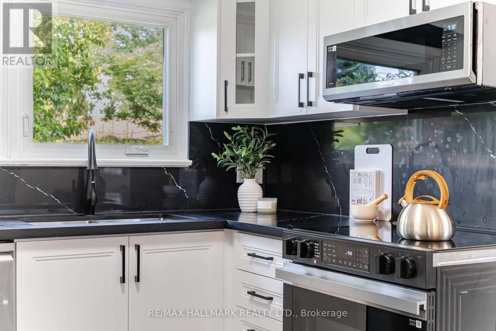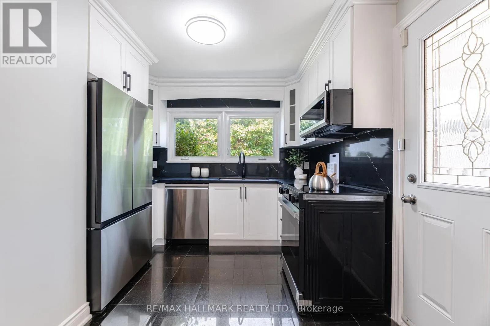 DVP and Lawrence Ave E This stunning, fully renovated 4-bedroom home sits on an impressive 50 x 125 ft lot in one of Don Mills most sought after communities. Thoughtfully updated throughout, it features a gorgeous chefs kitchen with high-end finishes and brand-new appliances, sleek modern bathrooms, updated windows and doors, and a brand-new roof making it completely move-in ready. Inside, you'll find elegant hand scraped hardwood floors, a bright and spacious family room with a large picture window, and smooth ceilings enhanced by pot lights. The home offers four generously sized bedrooms, a dedicated dining area, and a fully finished basement complete with a large recreation room perfect for entertaining or easily converted into an in-law suite. Step outside to the peaceful and expansive south-facing backyard ideal for gardening or relaxing under the charming gazebo covered patio. Enjoy excellent privacy with full fencing, creating the perfect outdoor retreat. Additional features include an attached garage, a large driveway with ample parking for up to six cars, an enclosed front porch that offers a cozy space to relax while doubling as the perfect family mudroom, and a convenient garden shed for extra storage. Enjoy unparalleled convenience with quick access to the DVP, Highways 401, 404, and the TTC. Everyday essentials are just minutes away, and the home is located within top rated school districts offering IB programs, as well as public, Catholic, French, and private school options. Stylish, modern, and priced to sell, don't miss your chance to own this stunning urban retreat! (id:27476)