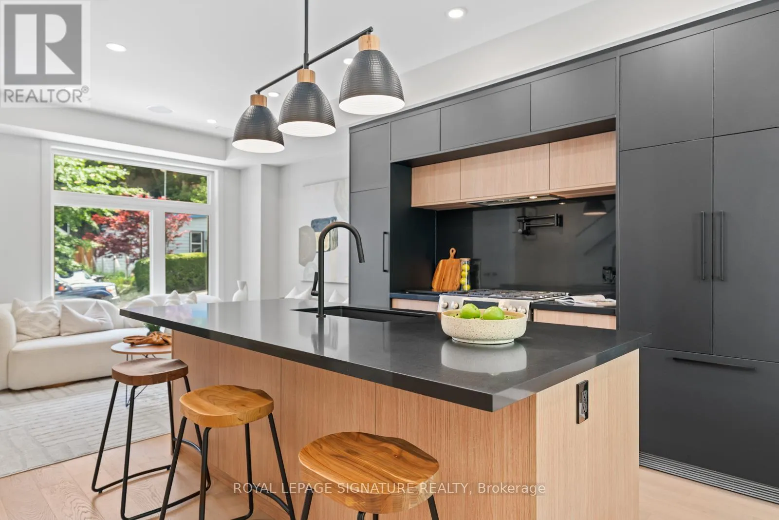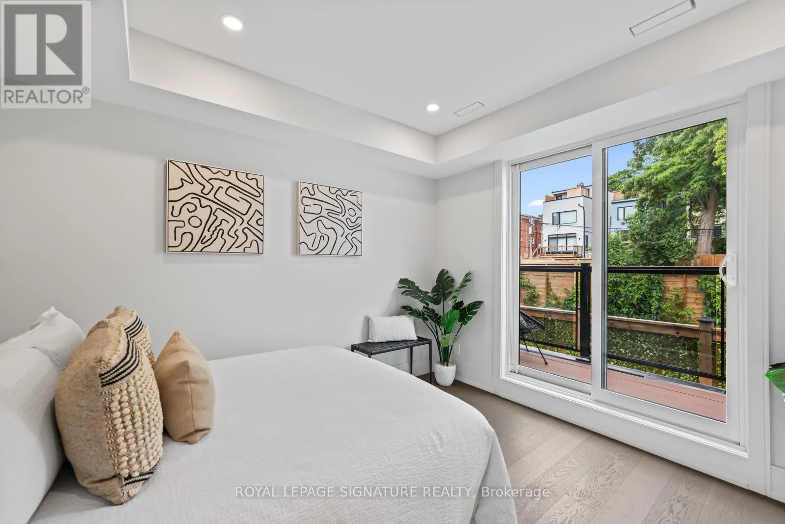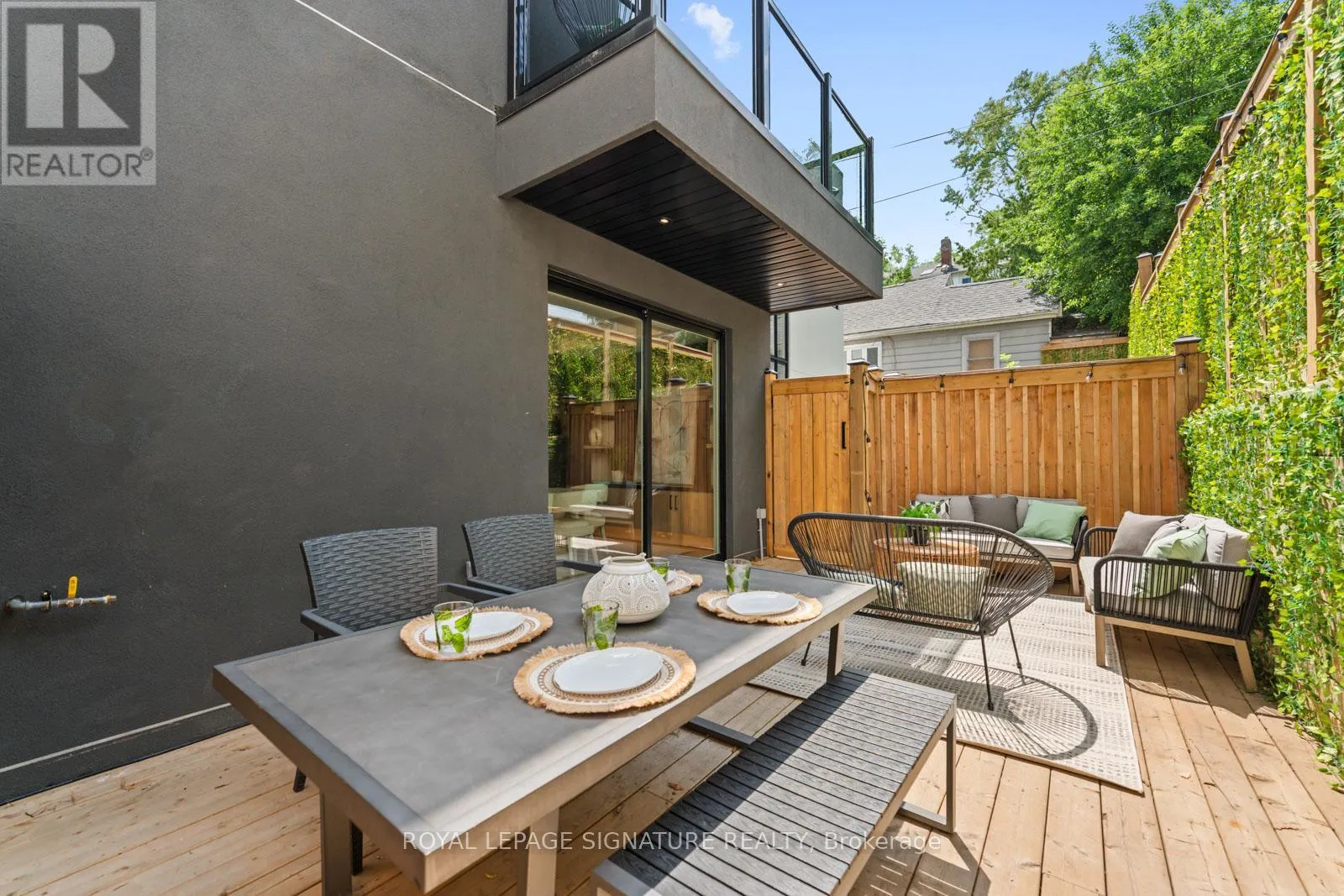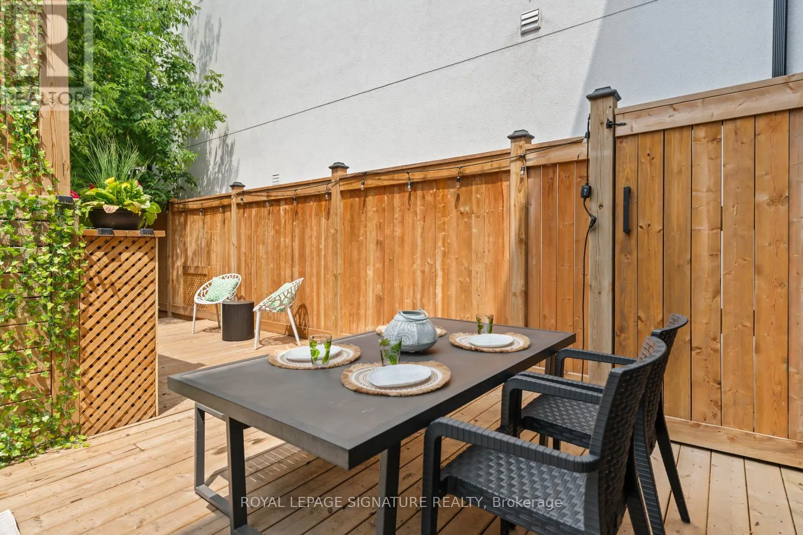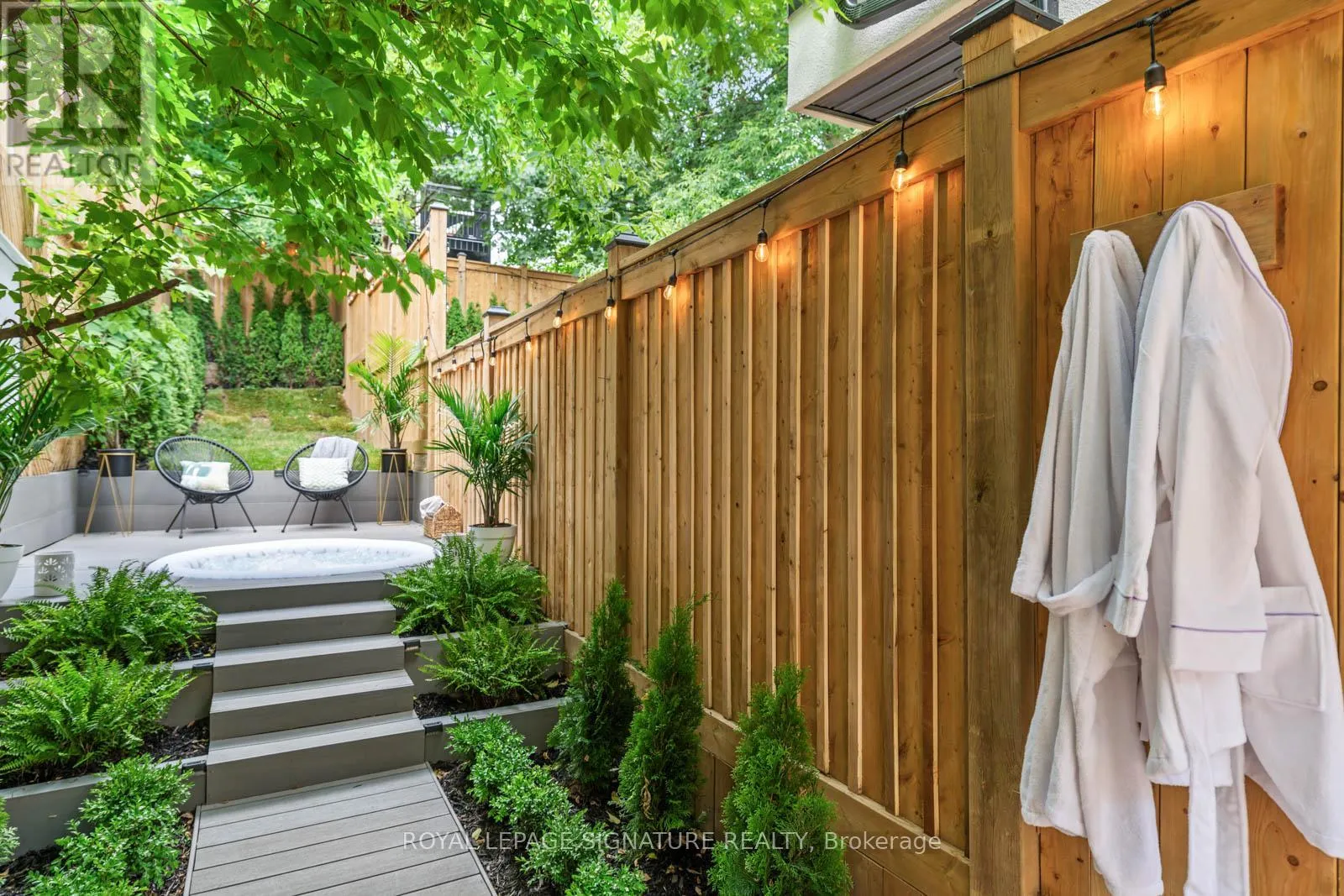 Leslie St & Gerrard St E Your Private Oasis in Prime Leslieville!! Welcome to 24 Harriet St! This one-of-a-kind, custom built, detached 3-storey modern masterpiece is nestled on a quiet street in the heart of vibrant Leslieville, just steps to Queen East, trendy cafes, parks, and more. Step into your own private backyard retreat complete with a hot tub, mature trees, privacy fencing, and a massive entertainers deck, perfect for summer nights, outdoor movies, and unforgettable gatherings! Inside, this thoughtfully designed home stuns with its soaring ceilings, wide-plank engineered hardwood floors, and in-ceiling speakers throughout. The gourmet kitchen is a chefs dream with quartz countertops and backsplash, built-in panelled fridge, gas range with pot filler, ample storage, and a large island with seating. The dining area features a stylish feature wall, floating shelves, and custom built-ins, all flowing into a sun-drenched living space with floor-to-ceiling sliding doors for seamless indoor/outdoor living. The upper levels boast three spacious bedrooms, each with their own private balcony, generous closet, and spa-like ensuite bathroom. The luxurious primary suite includes a custom walk-in closet, 2 private balconies and a six-piece ensuite with soaker tub, glass shower, and double vanity. Elegant oak stairs with glass railings enhance the modern aesthetic and open flow. Don't miss this rare opportunity to own a turnkey designer home in one of Torontos most desirable neighbourhoods! (id:27476)