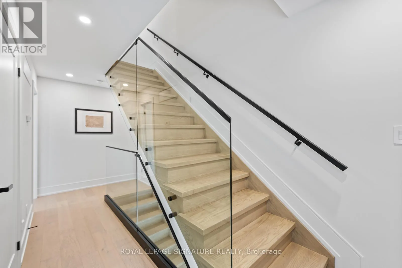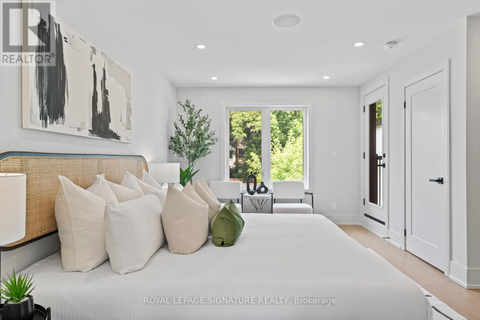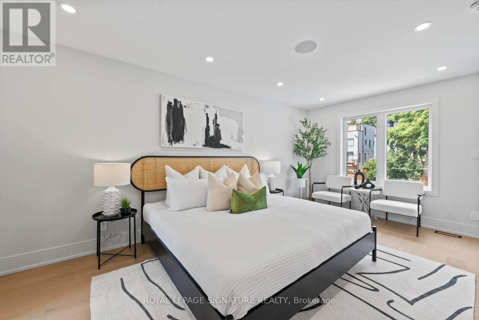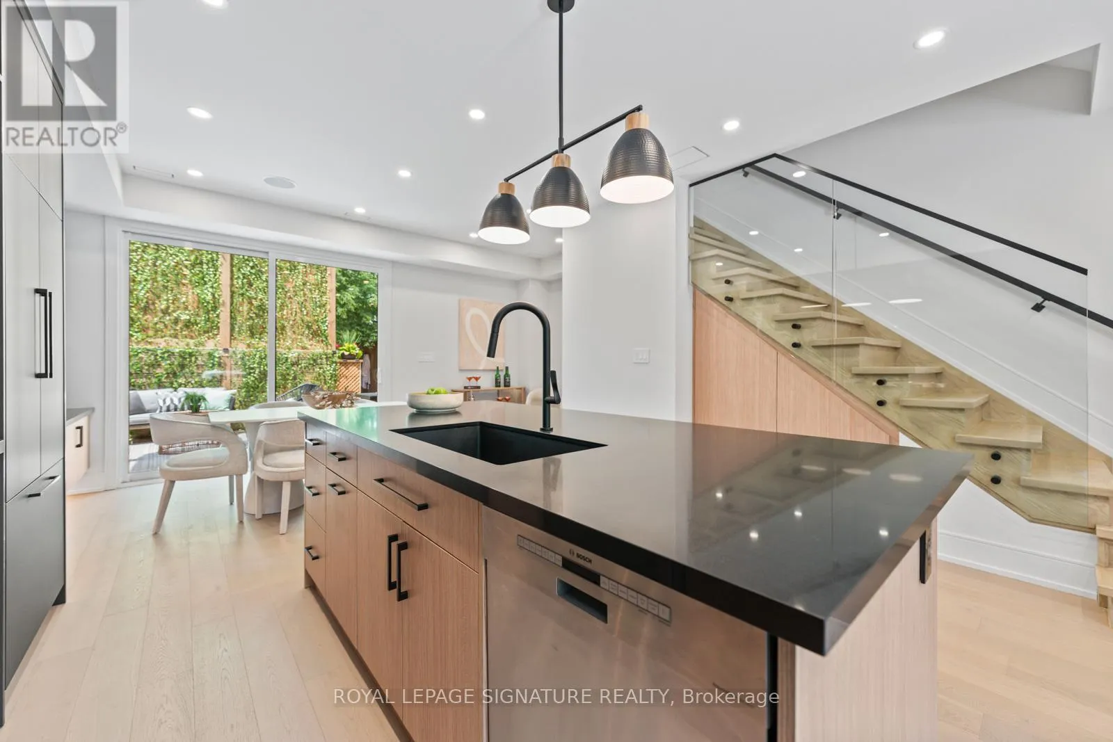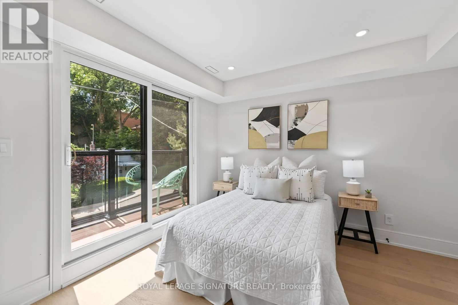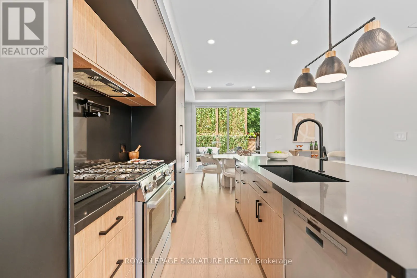 Leslie St & Gerrard St E Your Private Oasis in Prime Leslieville!! Welcome to 24 Harriet St! This one-of-a-kind, custom built, detached 3-storey modern masterpiece is nestled on a quiet street in the heart of vibrant Leslieville, just steps to Queen East, trendy cafes, parks, and more. Step into your own private backyard retreat complete with a hot tub, mature trees, privacy fencing, and a massive entertainers deck, perfect for summer nights, outdoor movies, and unforgettable gatherings! Inside, this thoughtfully designed home stuns with its soaring ceilings, wide-plank engineered hardwood floors, and in-ceiling speakers throughout. The gourmet kitchen is a chefs dream with quartz countertops and backsplash, built-in panelled fridge, gas range with pot filler, ample storage, and a large island with seating. The dining area features a stylish feature wall, floating shelves, and custom built-ins, all flowing into a sun-drenched living space with floor-to-ceiling sliding doors for seamless indoor/outdoor living. The upper levels boast three spacious bedrooms, each with their own private balcony, generous closet, and spa-like ensuite bathroom. The luxurious primary suite includes a custom walk-in closet, 2 private balconies and a six-piece ensuite with soaker tub, glass shower, and double vanity. Elegant oak stairs with glass railings enhance the modern aesthetic and open flow. Don't miss this rare opportunity to own a turnkey designer home in one of Torontos most desirable neighbourhoods! (id:27476)