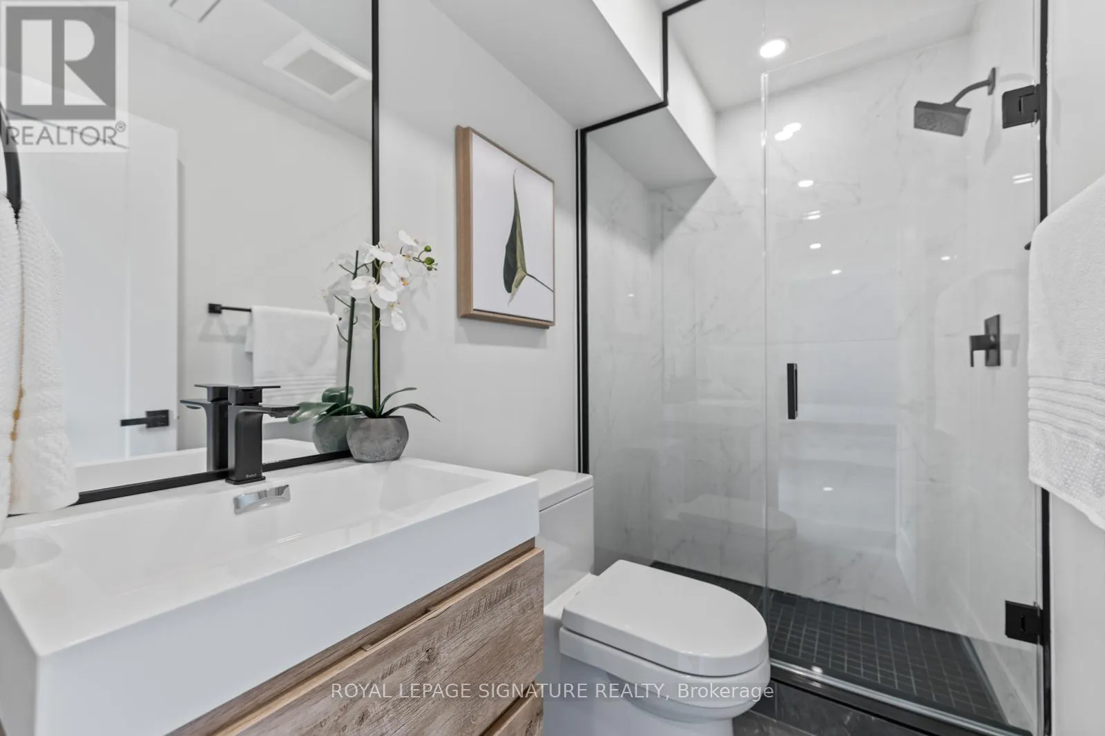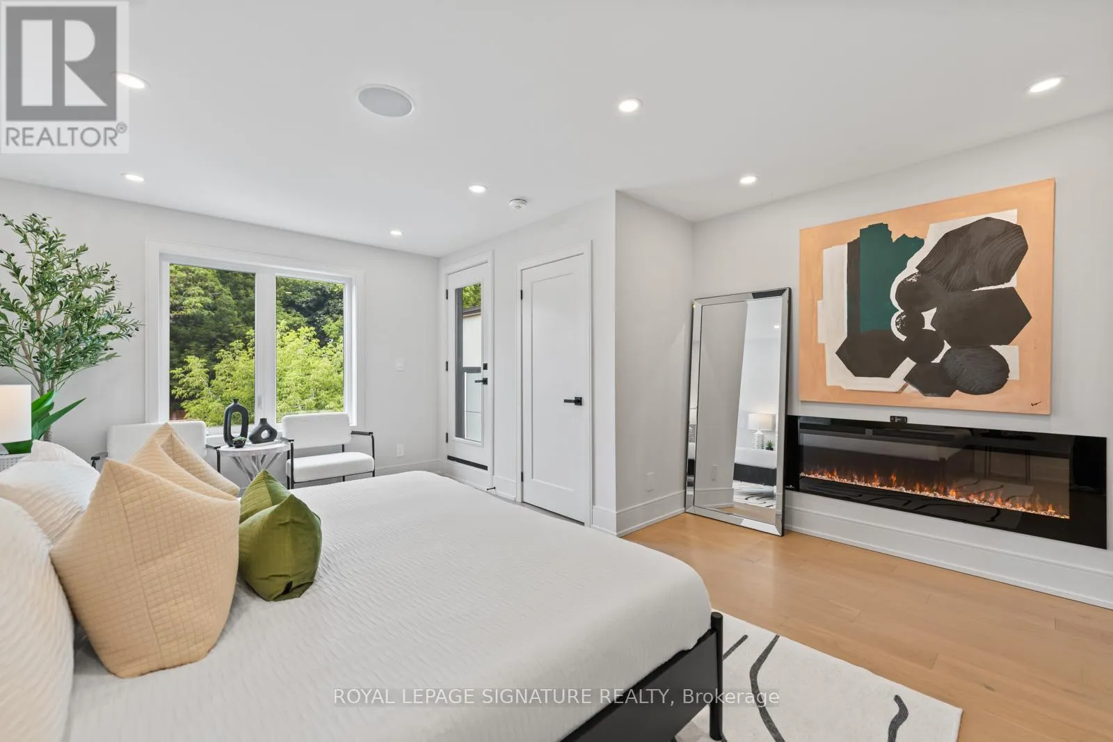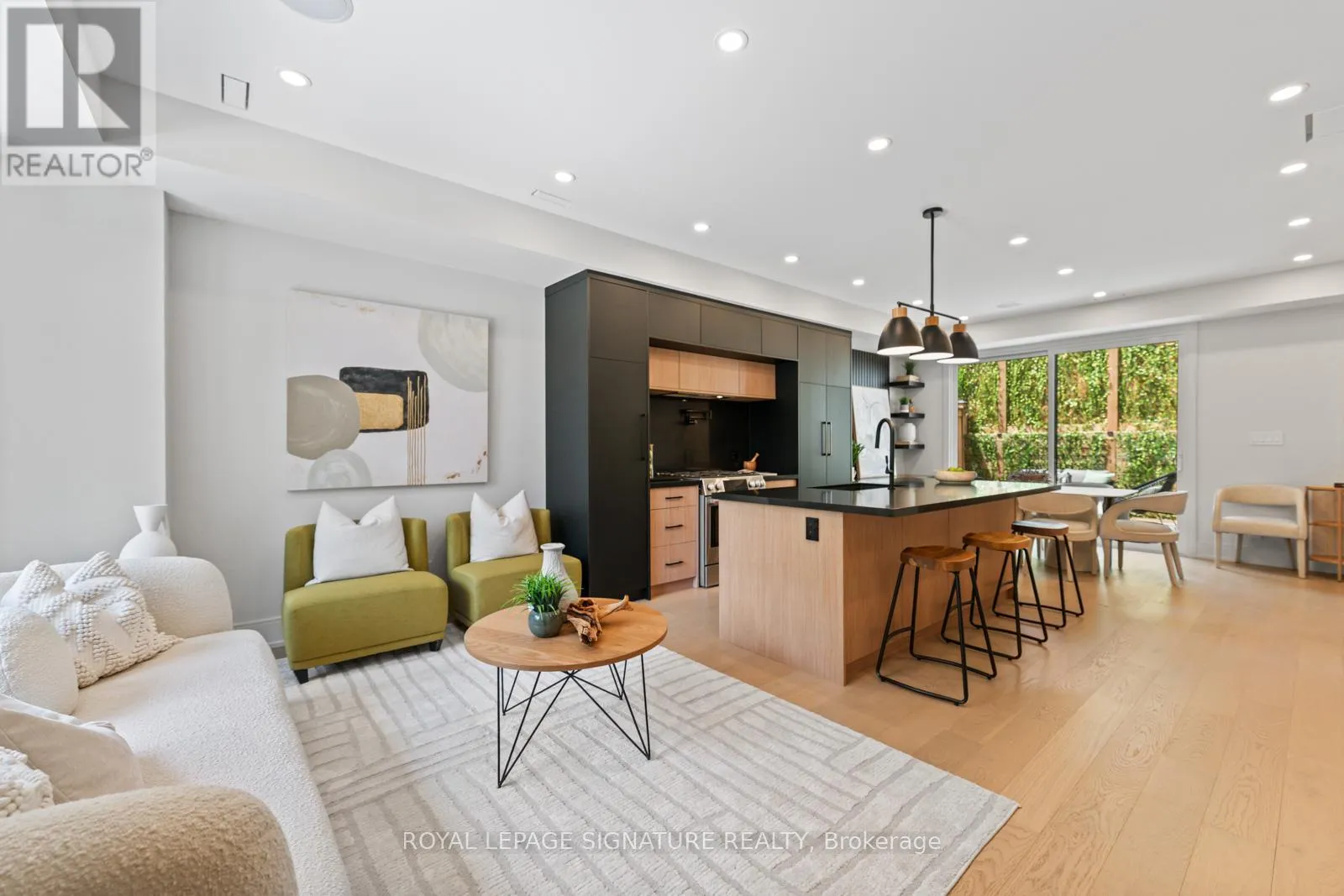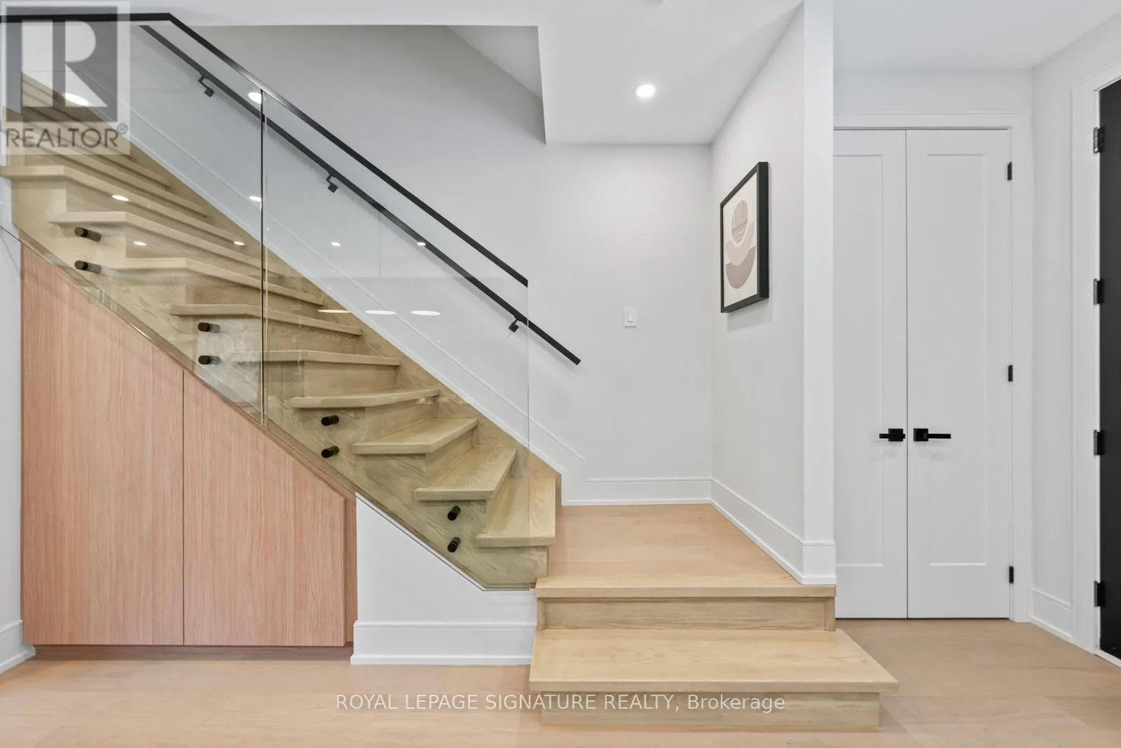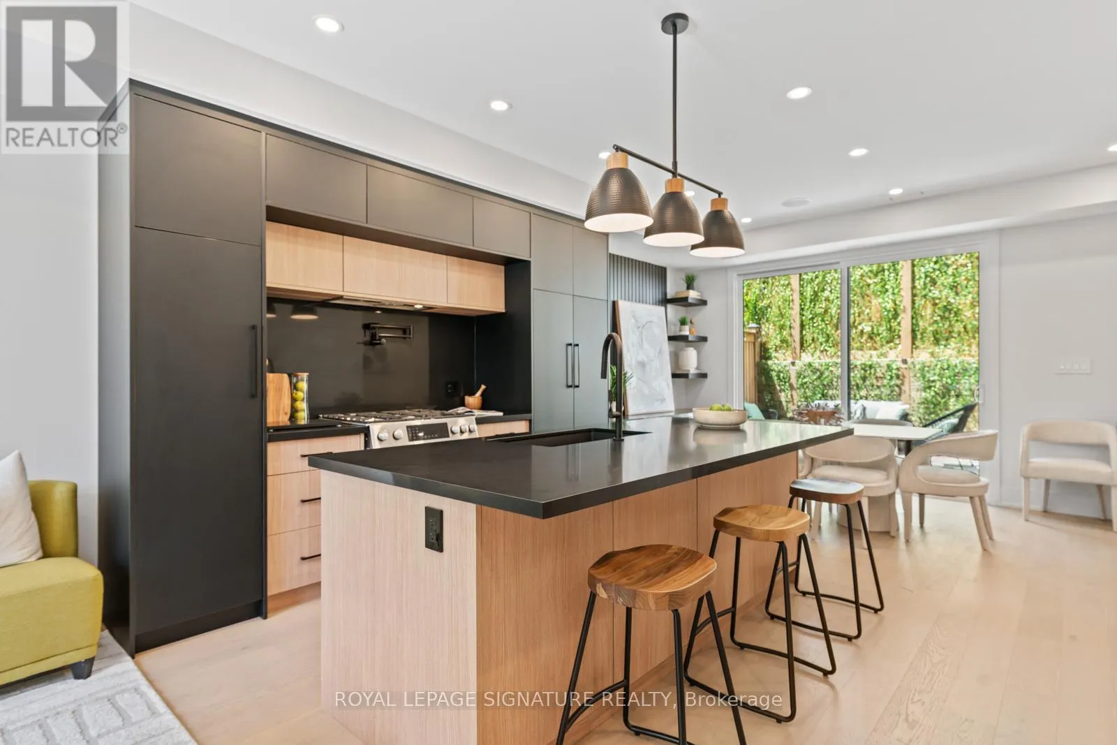 Leslie St & Gerrard St E Your Private Oasis in Prime Leslieville!! Welcome to 24 Harriet St! This one-of-a-kind, custom built, detached 3-storey modern masterpiece is nestled on a quiet street in the heart of vibrant Leslieville, just steps to Queen East, trendy cafes, parks, and more. Step into your own private backyard retreat complete with a hot tub, mature trees, privacy fencing, and a massive entertainers deck, perfect for summer nights, outdoor movies, and unforgettable gatherings! Inside, this thoughtfully designed home stuns with its soaring ceilings, wide-plank engineered hardwood floors, and in-ceiling speakers throughout. The gourmet kitchen is a chefs dream with quartz countertops and backsplash, built-in panelled fridge, gas range with pot filler, ample storage, and a large island with seating. The dining area features a stylish feature wall, floating shelves, and custom built-ins, all flowing into a sun-drenched living space with floor-to-ceiling sliding doors for seamless indoor/outdoor living. The upper levels boast three spacious bedrooms, each with their own private balcony, generous closet, and spa-like ensuite bathroom. The luxurious primary suite includes a custom walk-in closet, 2 private balconies and a six-piece ensuite with soaker tub, glass shower, and double vanity. Elegant oak stairs with glass railings enhance the modern aesthetic and open flow. Don't miss this rare opportunity to own a turnkey designer home in one of Torontos most desirable neighbourhoods! (id:27476)