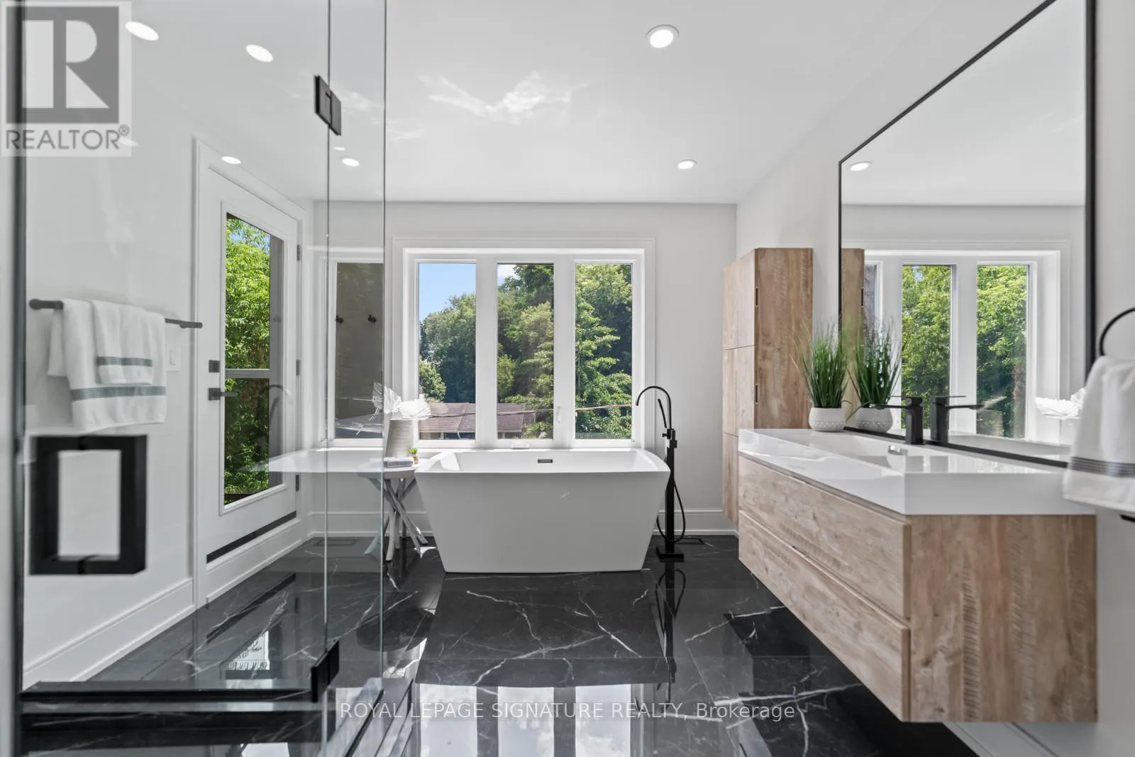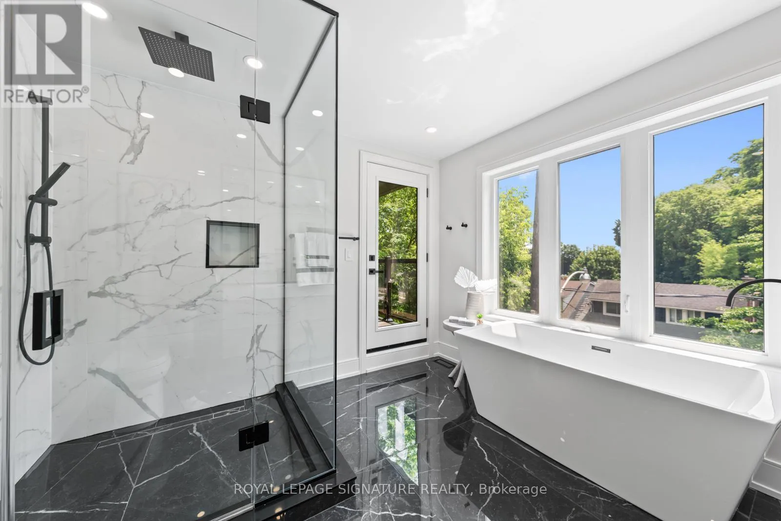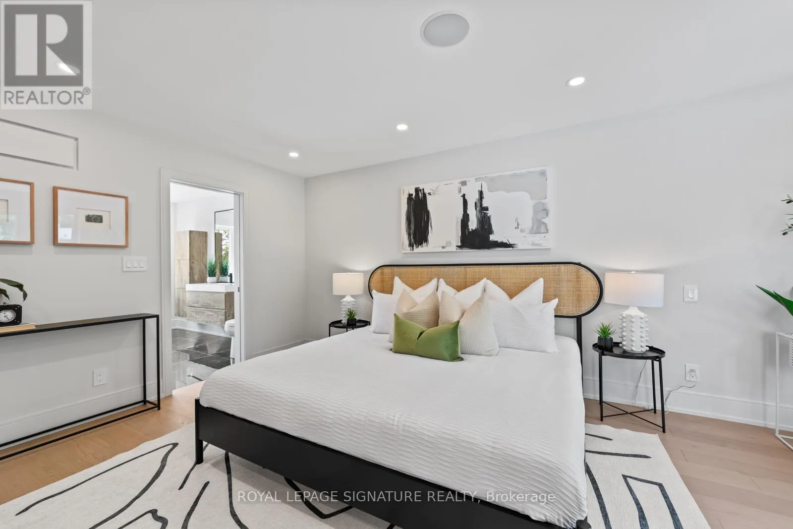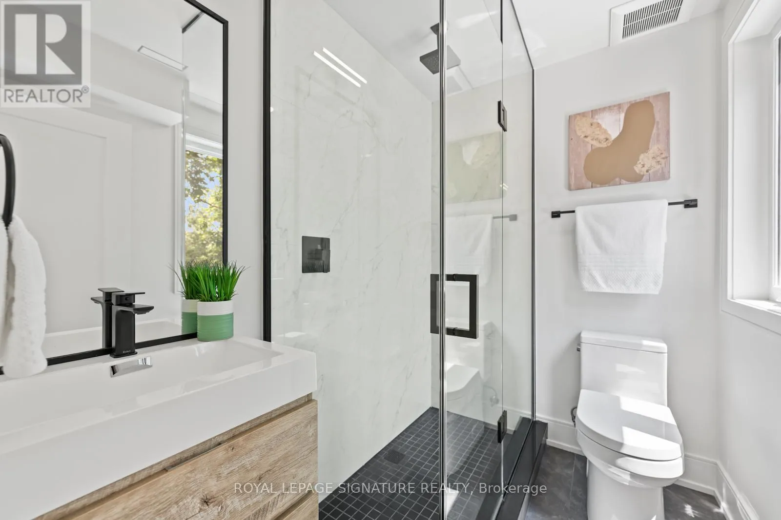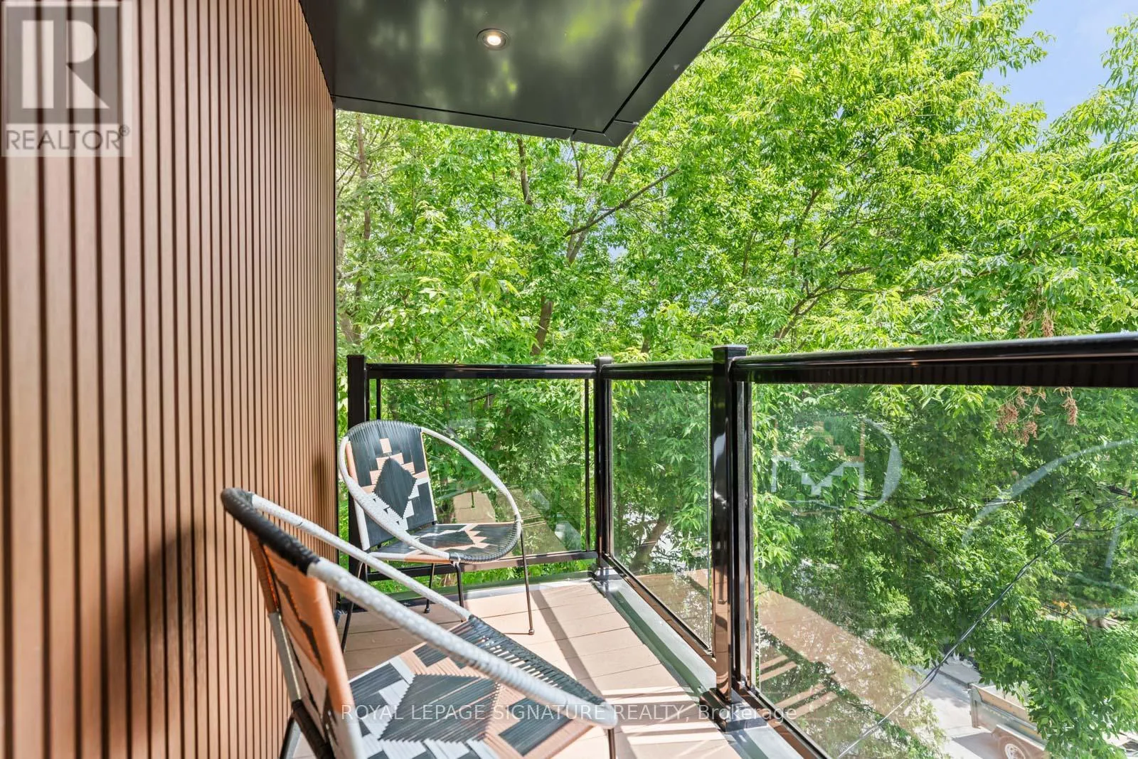 Leslie St & Gerrard St E Your Private Oasis in Prime Leslieville!! Welcome to 24 Harriet St! This one-of-a-kind, custom built, detached 3-storey modern masterpiece is nestled on a quiet street in the heart of vibrant Leslieville, just steps to Queen East, trendy cafes, parks, and more. Step into your own private backyard retreat complete with a hot tub, mature trees, privacy fencing, and a massive entertainers deck, perfect for summer nights, outdoor movies, and unforgettable gatherings! Inside, this thoughtfully designed home stuns with its soaring ceilings, wide-plank engineered hardwood floors, and in-ceiling speakers throughout. The gourmet kitchen is a chefs dream with quartz countertops and backsplash, built-in panelled fridge, gas range with pot filler, ample storage, and a large island with seating. The dining area features a stylish feature wall, floating shelves, and custom built-ins, all flowing into a sun-drenched living space with floor-to-ceiling sliding doors for seamless indoor/outdoor living. The upper levels boast three spacious bedrooms, each with their own private balcony, generous closet, and spa-like ensuite bathroom. The luxurious primary suite includes a custom walk-in closet, 2 private balconies and a six-piece ensuite with soaker tub, glass shower, and double vanity. Elegant oak stairs with glass railings enhance the modern aesthetic and open flow. Don't miss this rare opportunity to own a turnkey designer home in one of Torontos most desirable neighbourhoods! (id:27476)