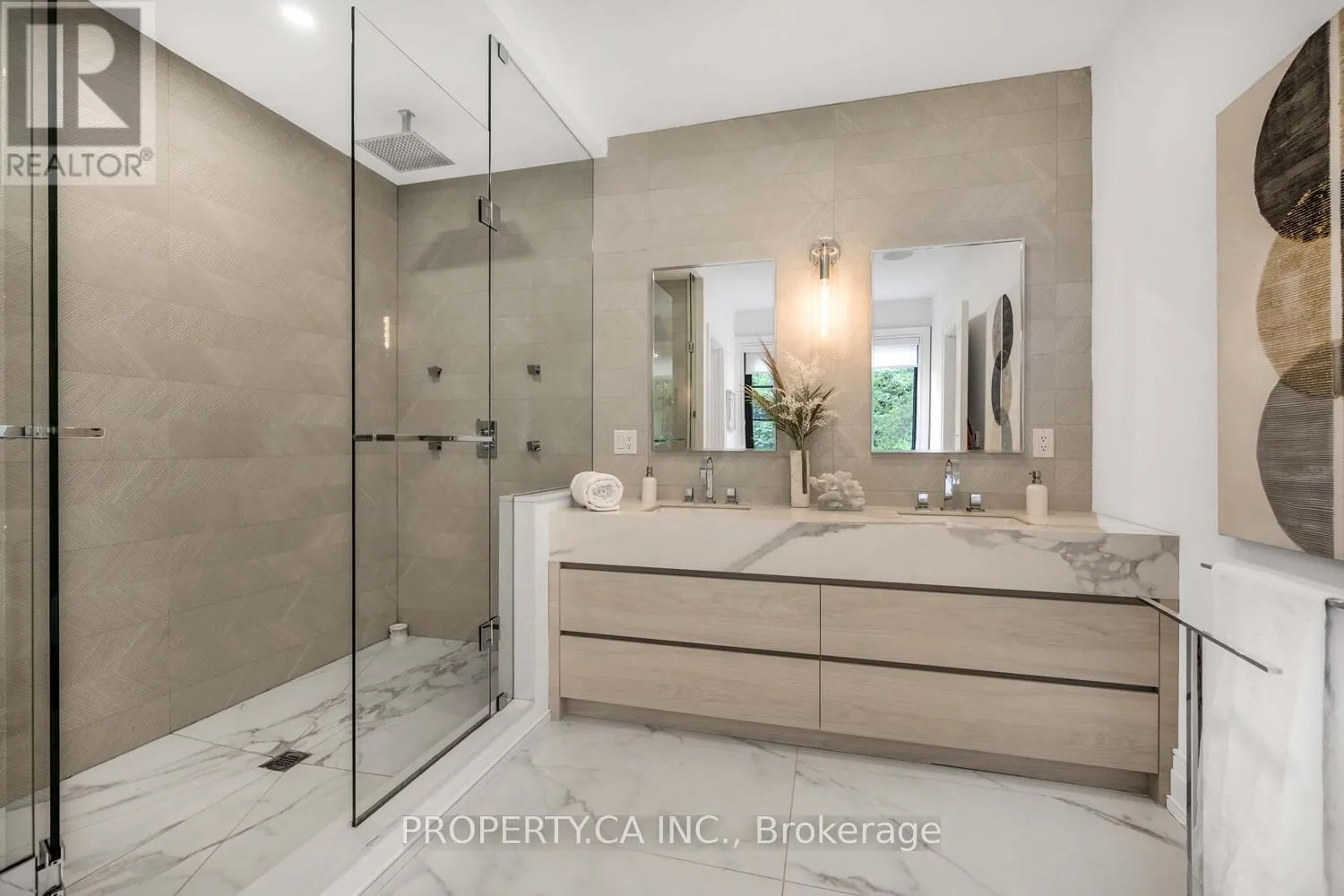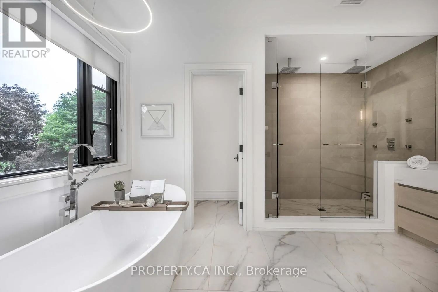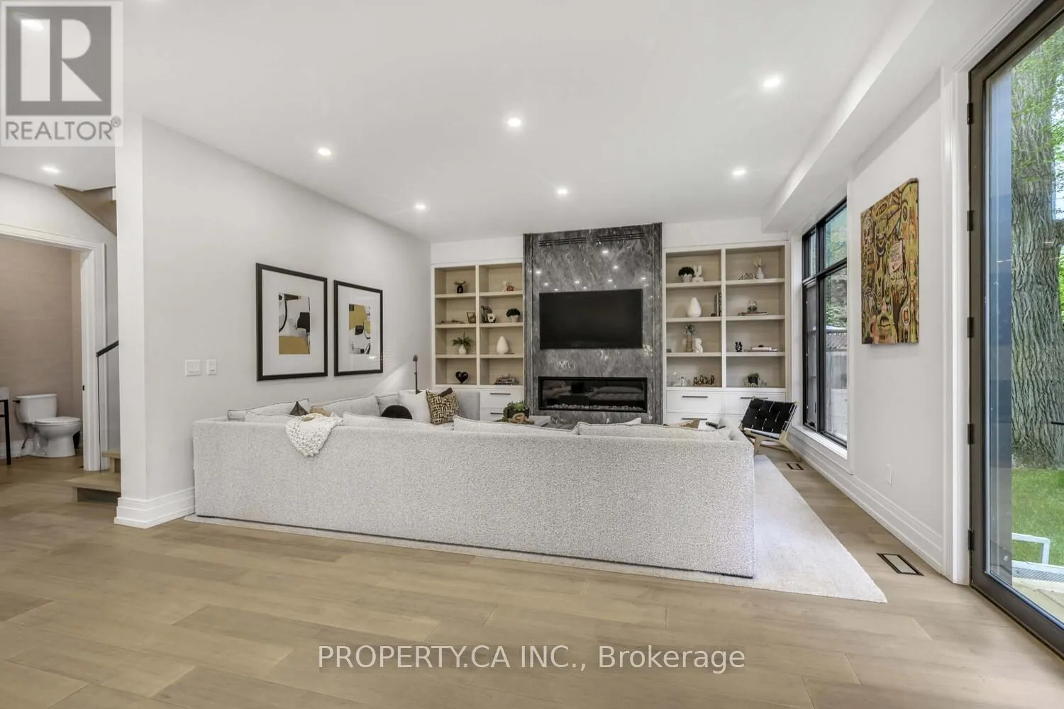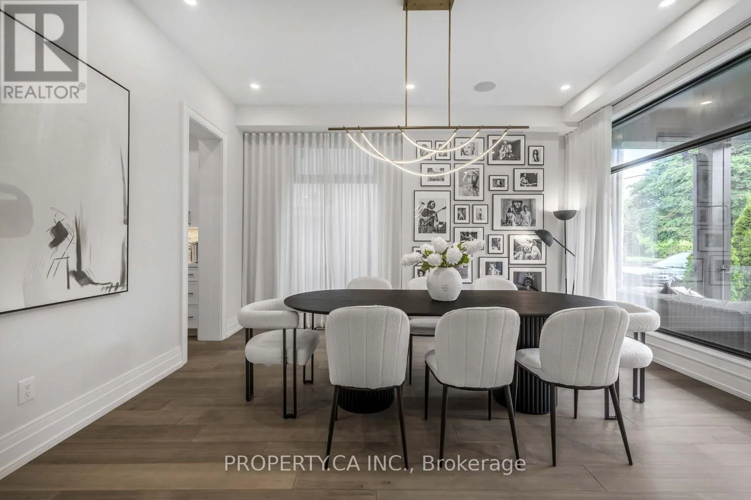 Bathurst And Lawrence Welcome to 8 Manor Haven Road A Custom Home Across from the Park!This beautifully designed 4+1 bedroom, 6-bathroom home offers over 3500 sqft luxurious living in a prime family-friendly location. Designed by Shaun Lipsey, it features premium finishes and a thoughtful, functional layout throughout. The main floor features 10ft ceilings, pre-engineered hardwood floors, pot lights, and floor-to-ceiling inline windows that flood the home with natural light. Spacious principal rooms include a formal living room and a large separate dining room, ideal for entertaining. The chefs kitchen by California Kitchens is a true showstopper, equipped with top-of-the-line JennAir appliances, including a side-by-side fridge and freezer, two wall ovens, and a massive 10-ft island with ample seating. A dedicated prep space with drink fridge, paired with a huge walk-in pantry offer exceptional storage and prep space. The family room features a cozy fireplace framed by a stunning floor-to-ceiling granite feature wall, creating a dramatic and welcoming focal point.Upstairs, you'll find four spacious bedrooms and three full bathrooms, including a primary retreat with a walk-in closet by Closets by Design and a spa-like ensuite with heated floors.The finished basement offers 1570 sqft includes a fifth bedroom, full bathroom, and a large open-concept rec space ideal for a home office, gym, or guest suite. A built-in bar adds flexibility for entertaining. Additional highlights include a heated mudroom, built-in Sonos surround sound, gas BBQ hookup, and a large private backyard. Located directly across from a park, this home delivers top-tier quality, comfort, and modern family living (id:27476)