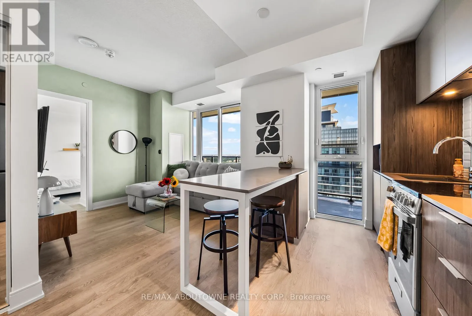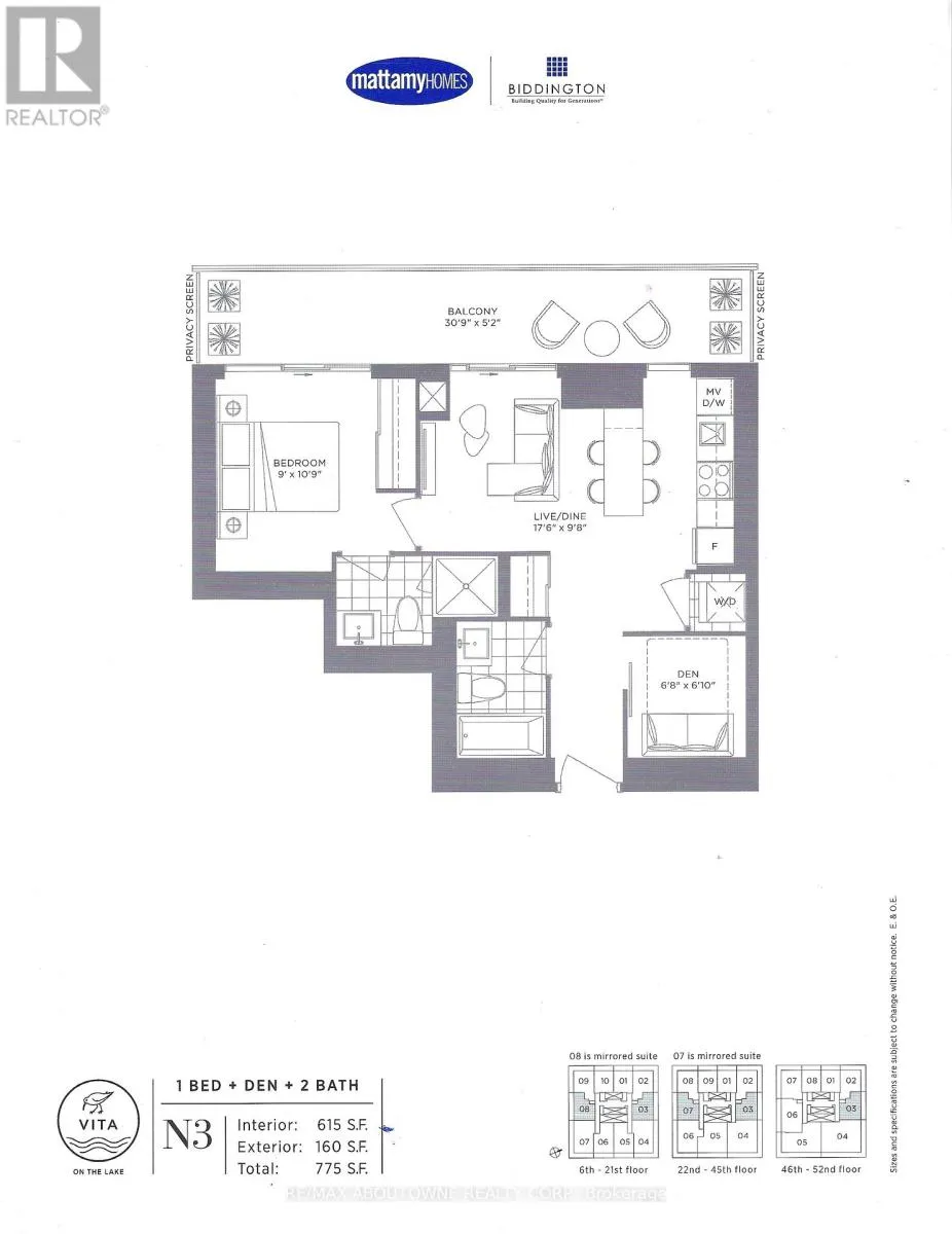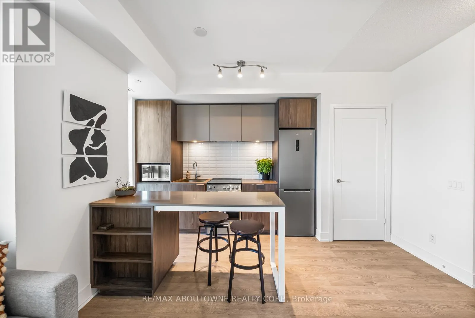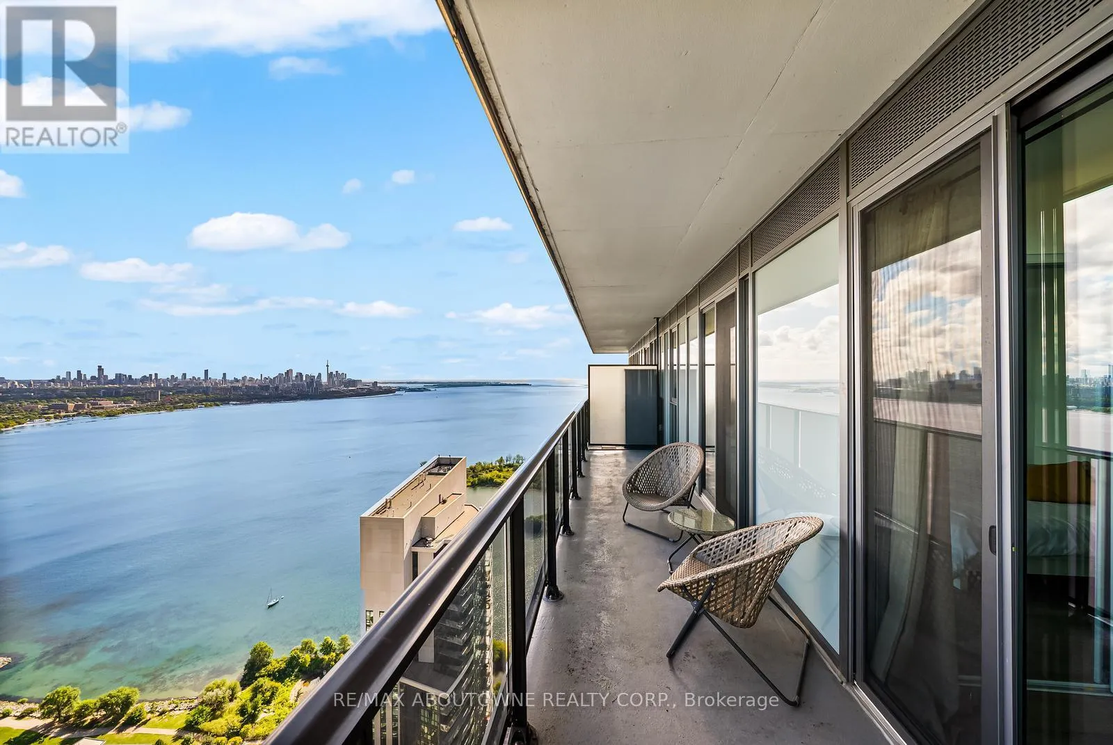 Cross Streets: Lakeshore Rd W & Silver Moon Dr. ** Directions: Park Lawn Rd, Lakeshore Rd W &Silver Moon Dr. Welcome to Vita on the Lake, where luxury living meets an unparalleled waterfront lifestyle. Perched on the 51st floor, this one-bedroom plus den residence offers breathtaking, unobstructed panoramic views that sweep across Lake Ontario, the downtown Toronto skyline, and the Humber Bay shoreline. Every glance out of the floor-to-ceiling windows is a reminder that you are living above it all, surrounded by light, water and sky. With approximately 615 square feet of thoughtfully designed interior space and an oversized 165 sq ft balcony, this suite is perfect for both everyday living and entertaining. The open-concept layout blends a modern kitchen complete with quartz countertops, integrated appliances, and sleek cabinetry with a bright living and dining area. The versatile den provides an ideal space for a home office, nursery, or guest bedroom, and two spa-inspired bathrooms. This unit also includes one parking space and one locker for added convenience. Whether you're relaxing on your balcony watching the sunrise, hosting friends against a glittering skyline backdrop, or enjoying lakeside trails right outside your door, A seamless blend of lakeside calm and downtown energy. Enjoy premium amenities including 24-hour concierge service, an outdoor pool, sauna, fully equipped fitness and yoga studios, elegant party and dining rooms, and comfortable guest suites for visiting friends and family. Located in Toronto's coveted Humber Bay Shores community, you are just steps to waterfront parks, the scenic boardwalk, popular cafés, and convenient shopping. TTC, Metro, and Mimico GO Station are moments away, providing quick connections to downtown, while the Gardiner Expressway and QEW offer effortless access to the rest of the city. (id:27476)