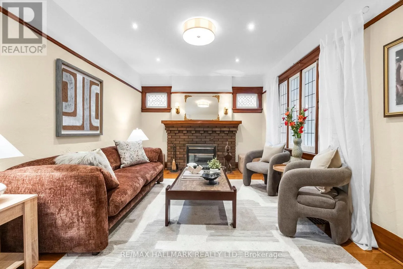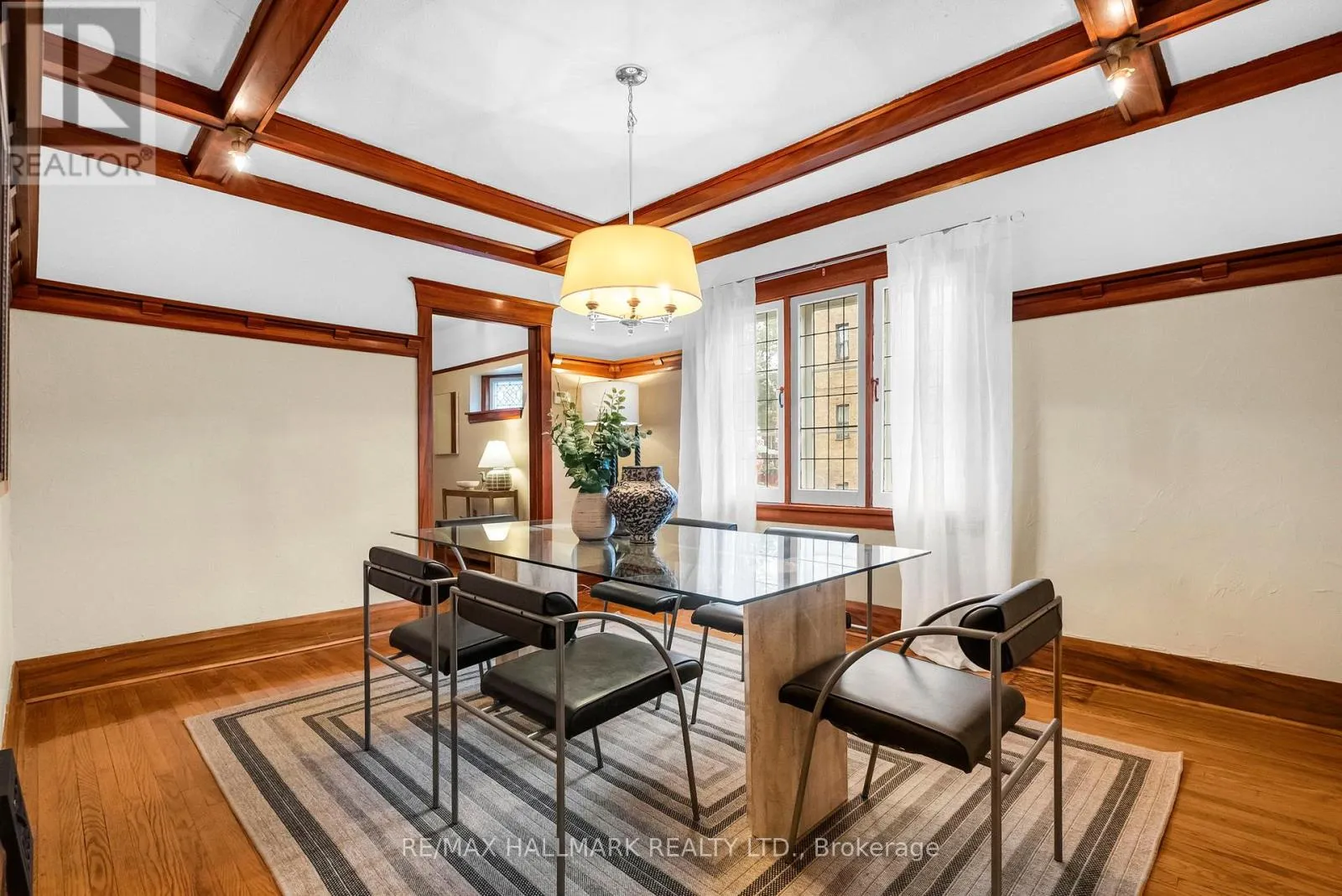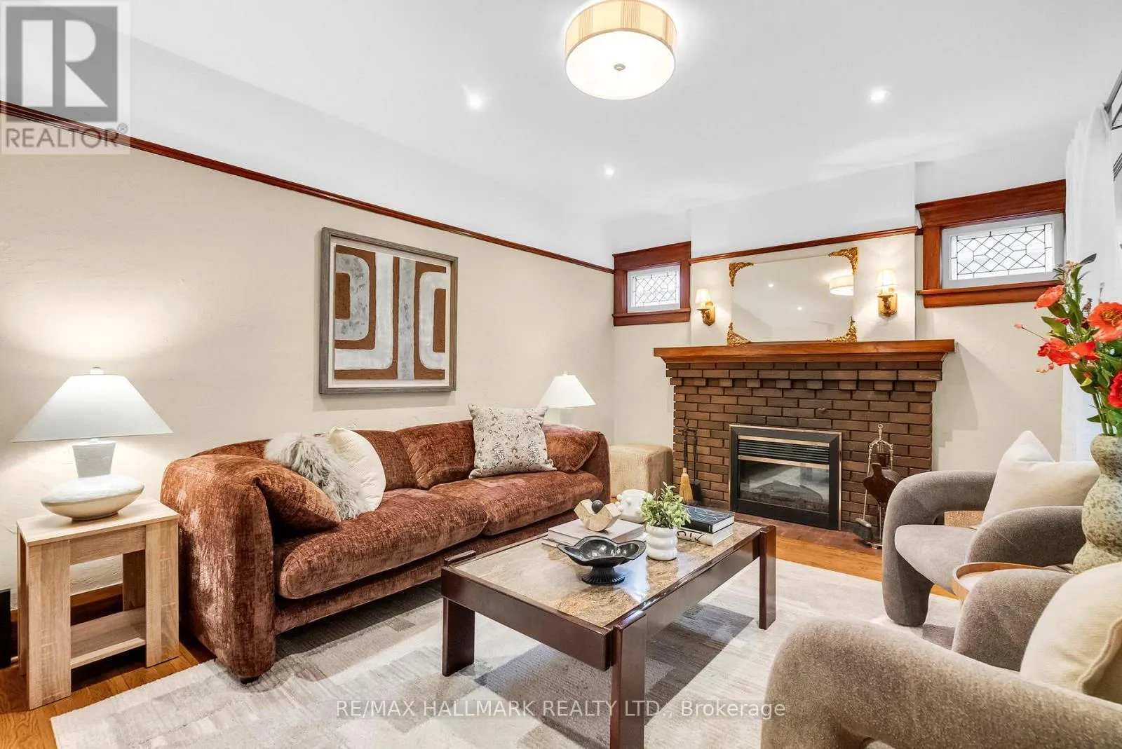 Cross Streets: Gerrard St E & Glenmount Park Rd. ** Directions: West of Main, South Side of Gerrard. They don't make homes like this anymore. This double-brick Arts & Crafts bungalow blends timeless character with modern comfort. From the enclosed front porch to the original wood trim, beams, stained glass, leaded windows, custom built-ins, and solid wood front door, every detail has been lovingly maintained. The living room is anchored by a cozy fireplace, large formal dining room and an impeccably cared for retro kitchen. The main floor features two bedrooms with hardwood floors, while the finished loft boasts refinished original hardwood, perfect as a 3rd bedroom, home office, kids room, or even future top-up potential. Natural light fills every level, including the spacious basement with excellent ceiling height, a newly renovated second bathroom, bonus bedroom or living space, and plenty of room to expand. The south-facing backyard is private and low-maintenance with gardens, a gazebo, and BBQ area ideal for entertaining with potential for a hot tub, sauna, or cold plunge. A detached garage easily fits a car or SUV, plus lot's of space in front of the garage. Backing onto Norwood Park, it feels like an extended backyard with tennis courts, playground, dog park, wading pool, and a winter ice rink. Just steps to cafés, restaurants, and breweries on Main Street, minutes to Queen St E and the Danforth, and walking distance to Danforth GO, Main Station, and the streetcar, this transit-friendly, family-oriented neighbourhood is home to top-rated schools Kimberley Jr PS, Bowmore, and Malvern CI. Move-in ready with income potential, this Arts & Crafts bungalow is a rare find for families, downsizers, or first-time buyers. (id:27476)