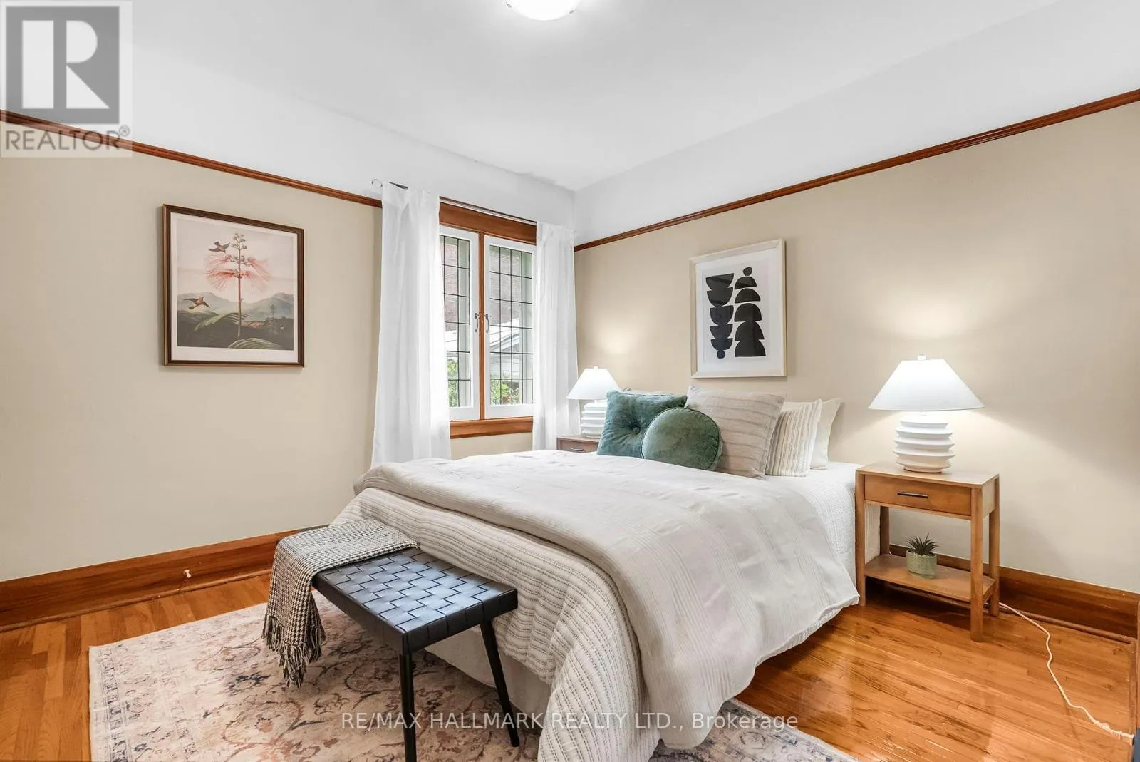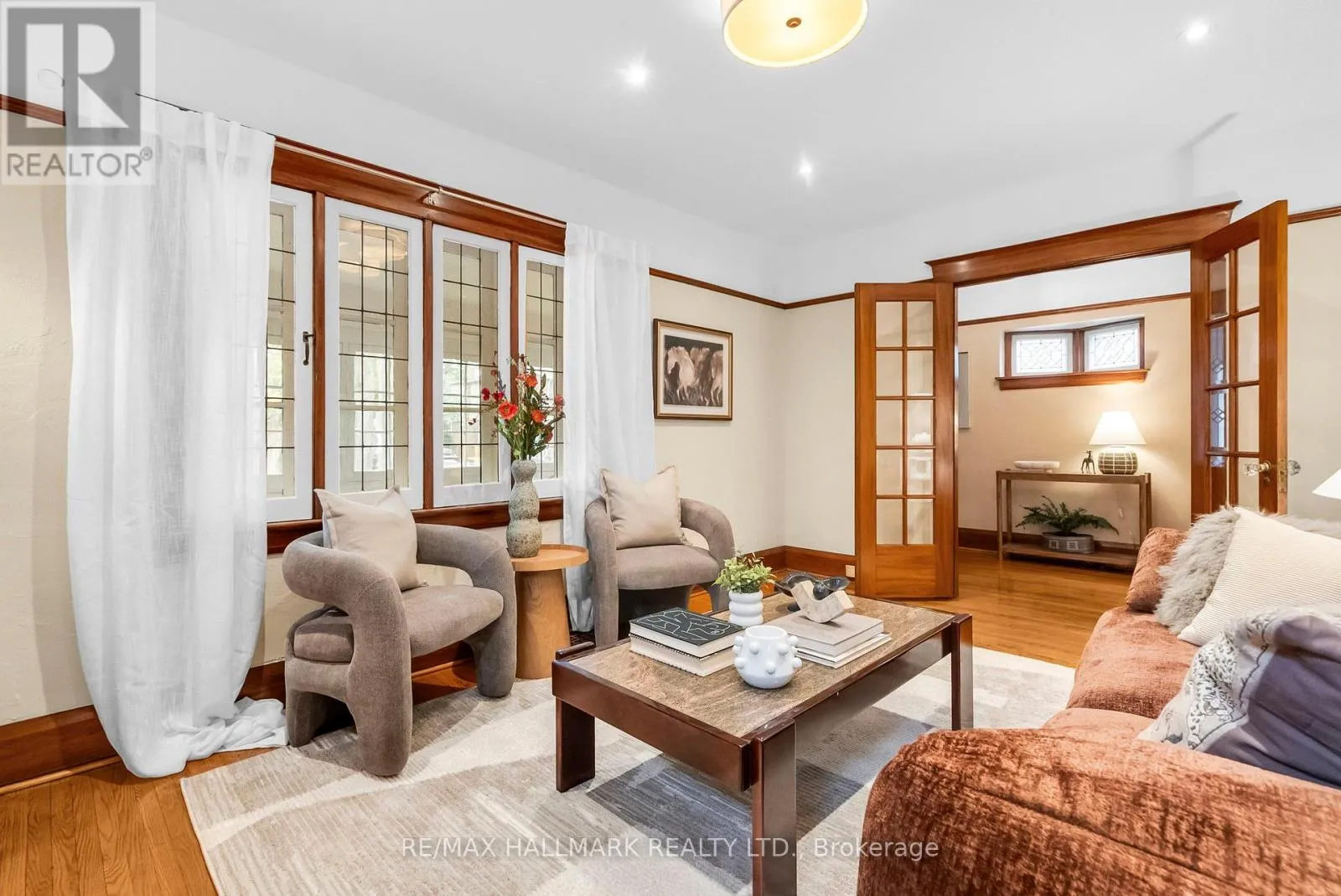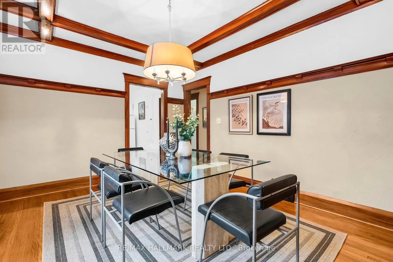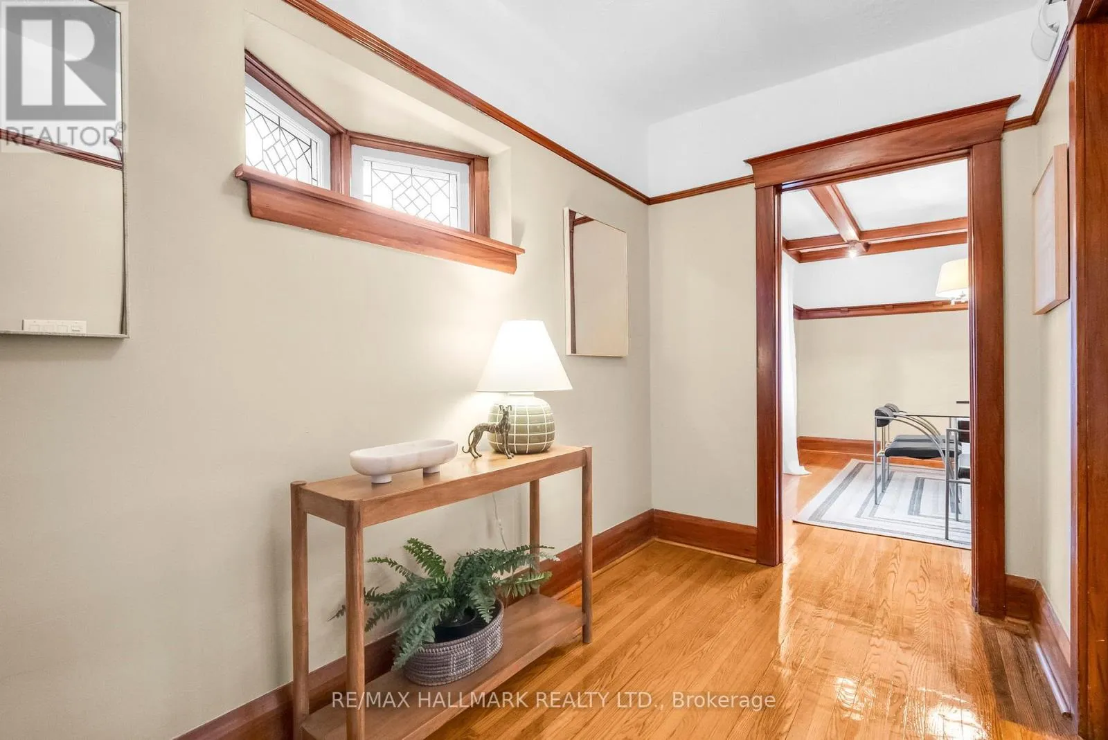 Cross Streets: Gerrard St E & Glenmount Park Rd. ** Directions: West of Main, South Side of Gerrard. They don't make homes like this anymore. This double-brick Arts & Crafts bungalow blends timeless character with modern comfort. From the enclosed front porch to the original wood trim, beams, stained glass, leaded windows, custom built-ins, and solid wood front door, every detail has been lovingly maintained. The living room is anchored by a cozy fireplace, large formal dining room and an impeccably cared for retro kitchen. The main floor features two bedrooms with hardwood floors, while the finished loft boasts refinished original hardwood, perfect as a 3rd bedroom, home office, kids room, or even future top-up potential. Natural light fills every level, including the spacious basement with excellent ceiling height, a newly renovated second bathroom, bonus bedroom or living space, and plenty of room to expand. The south-facing backyard is private and low-maintenance with gardens, a gazebo, and BBQ area ideal for entertaining with potential for a hot tub, sauna, or cold plunge. A detached garage easily fits a car or SUV, plus lot's of space in front of the garage. Backing onto Norwood Park, it feels like an extended backyard with tennis courts, playground, dog park, wading pool, and a winter ice rink. Just steps to cafés, restaurants, and breweries on Main Street, minutes to Queen St E and the Danforth, and walking distance to Danforth GO, Main Station, and the streetcar, this transit-friendly, family-oriented neighbourhood is home to top-rated schools Kimberley Jr PS, Bowmore, and Malvern CI. Move-in ready with income potential, this Arts & Crafts bungalow is a rare find for families, downsizers, or first-time buyers. (id:27476)