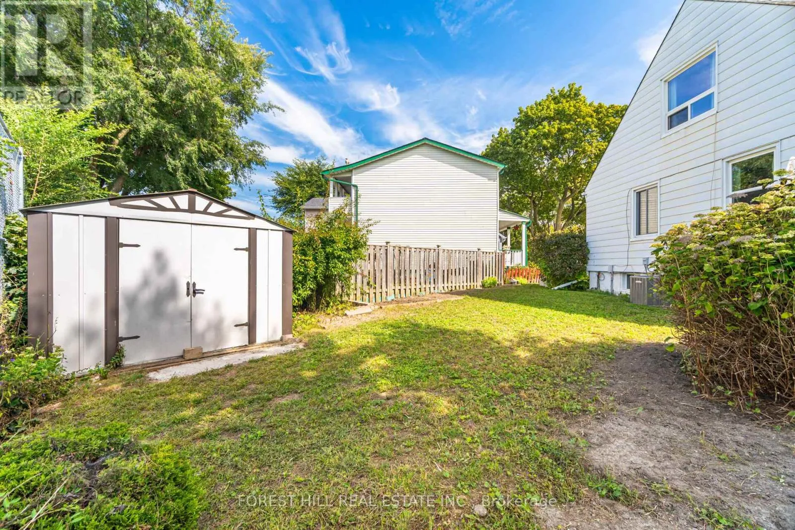 Cross Streets: Tiago Avenue & Topham Road. ** Directions: Tiago to Topham Park. Tucked away at the end of a quiet cul-de-sac and backing directly onto the peaceful greenery of Topham Park, this delightful 1.5-storey home offers the ideal blend of privacy, space, and convenience right in the heart of East York. Set on a generous 5,349 sq. ft. pie-shaped lot, the property enjoys rare park-side access and a deep connection to nature, all while being moments from city amenities. Inside, the home features a spacious and sun-filled living and dining area, perfect for both entertaining and everyday living. With three well-sized bedrooms, all with hardwood floors and abundant natural light, there is plenty of room for growing families, guests, or work-from-home needs. The home includes two full bathrooms and a versatile lower-level great room ideal as a home theatre, playroom, or additional living space. A large detached shed offers excellent storage or potential workshop use, while a mutual driveway leads to a private two-car parking area for added convenience. Move in as-is, renovate, or build your dream home the choice is yours in this highly sought-after neighbourhood. Steps from Topham Parks playgrounds, tennis courts, and sports fields, and just minutes to Taylor Creek Park trails, local shops, cafes, top-rated schools, and transit. Quick access to the DVP and downtown makes commuting a breeze. This is a rare opportunity to own a home where nature meets city living welcome to the best of East York. (id:27476)