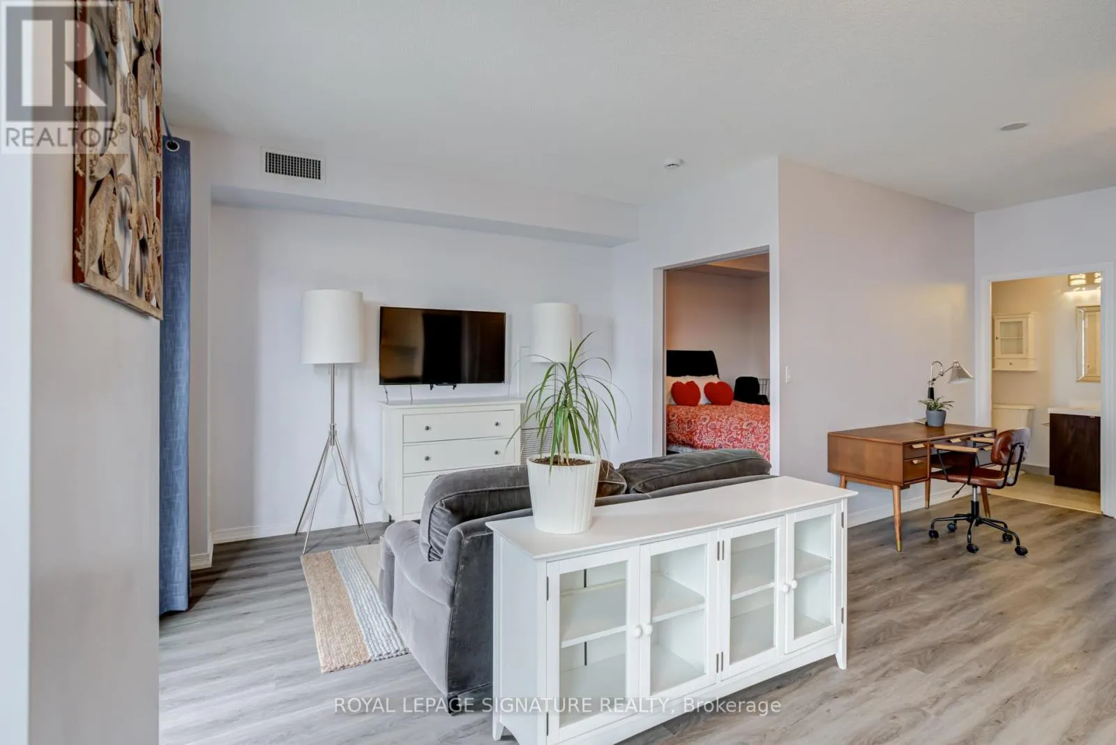 Cross Streets: Front Street West & Spadina Avenue. ** Directions: Fly Condos is located on the northside of Front street West between Blue Jays Way and Spadina Avenue. Whether you're just starting out on your home buying journey or a savvy investor, this spacious, 587 sq ft, 1-bedroom condo, in the heart of the Entertainment District, offers the ease and convenience of downtown living. The open-concept layout is a perfect use of space with a modern kitchen, a comfortable bedroom, and separate living and dining areas or space to work from home. Located on the 21st floor, the floor-to-ceiling windows provide ample natural light and an unobstructed view of the city. Move-in ready, this spotless suite features new flooring (2025) and has been freshly painted. Steps from the Rogers Centre, the best of Toronto is at your doorstep: trendy restaurants, iconic attractions, shopping, the waterfront, and access to the subway, streetcar lines, and the Gardiner. Fly Condos' first-rate amenities include a fitness centre, movie theatre, party room, rooftop terrace with BBQ area, guest suites, and 24-hour concierge. One storage locker is also included. Motivated Seller. (id:27476)
