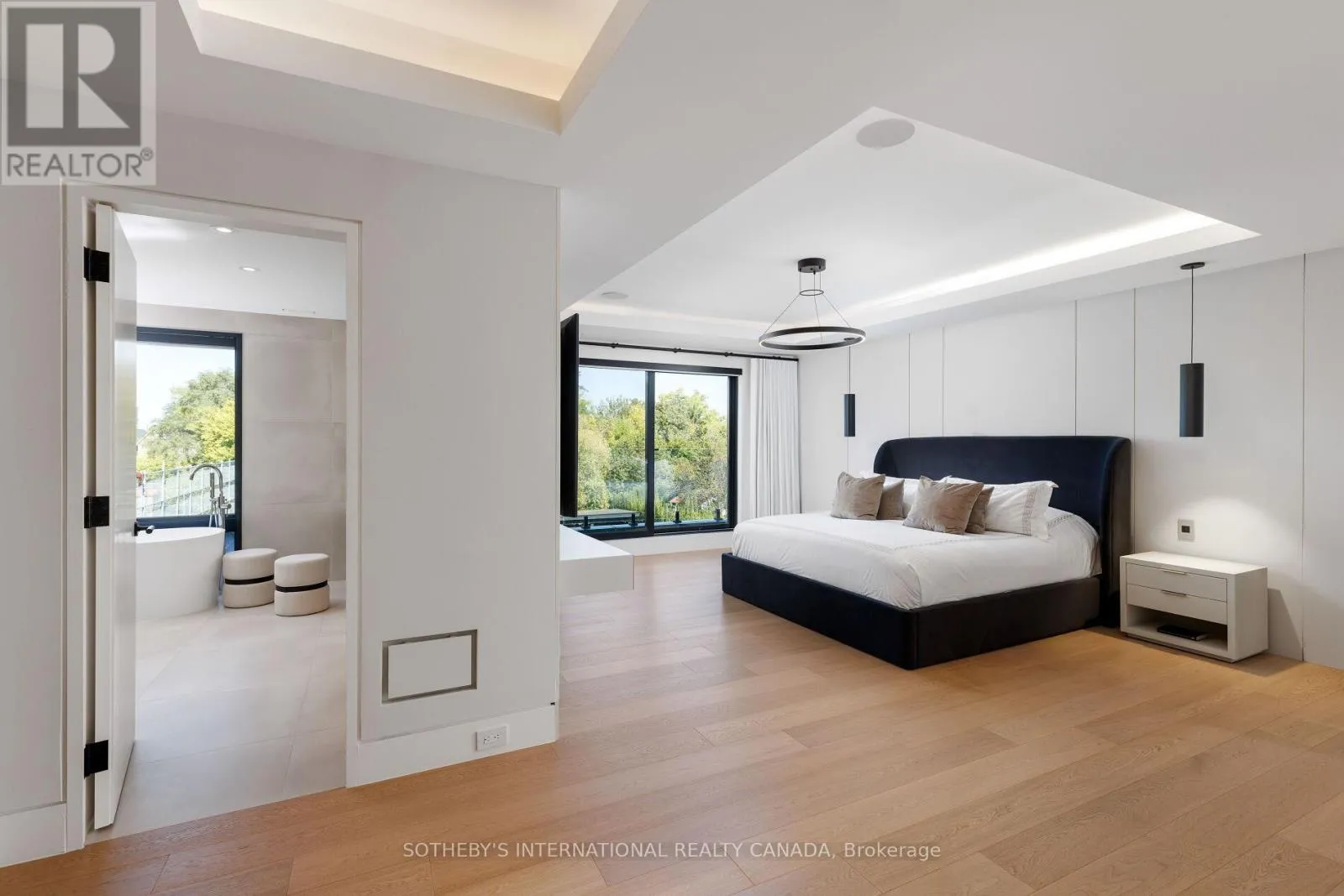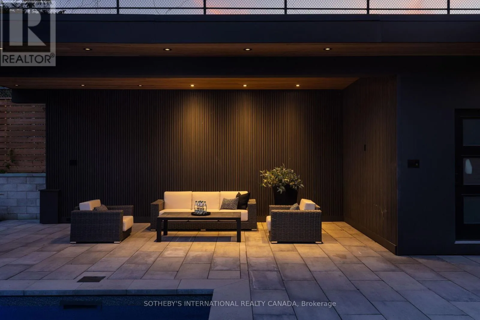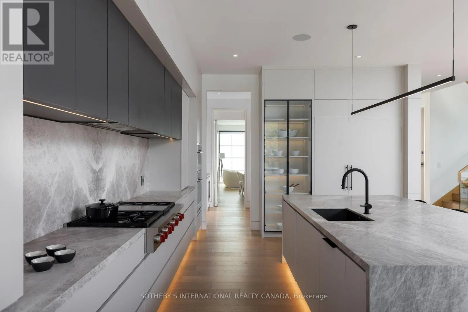 Dundas & Prince Edward Designed by Contempo Studio and built by Saaze Building Group in March 2024, this newly constructed custom residence epitomizes contemporary elegance and timeless sophistication. Its clean architectural lines, floor-to-ceiling windows, and premium finishes define modern design, while meticulous craftsmanship ensures every detail is executed to the highest standard. Nestled in The Kingsway one of Torontos most prestigious neighborhoodsthe home is surrounded by tree-lined streets, grand estate lots, and an architectural landscape rich in Tudor and Georgian influences. Situated on a peaceful, family-friendly cul-de-sac overlooking Lambton Kingsway Park and close to Lambton Kingsway School, the location is truly exceptional. The impressive 215-foot-deep lot creates an urban retreat with a saltwater pool, Jacuzzi, cabana, and lower-level walkout, delivering effortless indoor-outdoor living and entertaining. Boasting over 5,000 sq. ft. of refined living space, the home features Control4 automation, integrated 5.0 surround sound, radiant heated basement and bathroom floors, a steam shower, dual air systems, air purifier, steam humidifier, soft water, and a five-stage reverse osmosis filtration system. The chefs kitchen is outfitted with Wolf and Sub-Zero appliances plus premium hardware. Additional highlights include a home gym, office, laundry on the top floor with basement rough-in, a two-car garage, landscape lighting, and irrigation. Just minutes from Bloor Streets boutiques, cafés, restaurants, top-rated schools, community centres, the Humber River trails, and Home Smith Park, and with easy access to Royal York and Old Mill subway stations as well as major roadways, every convenience is within reach. Experience modern luxury and enduring elegance in a brand-new custom home in one of Torontos most coveted neighbourhoods. (id:27476)