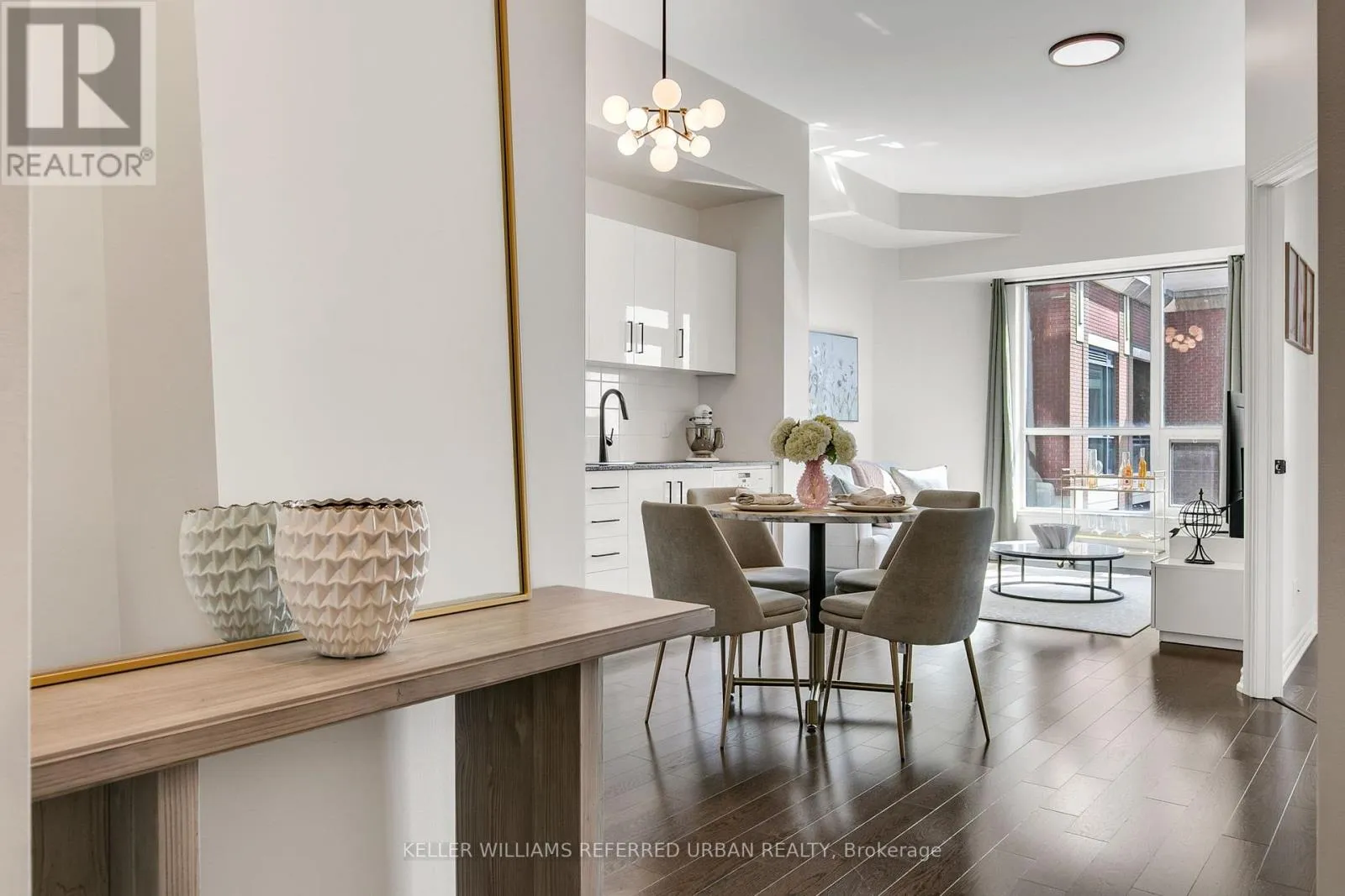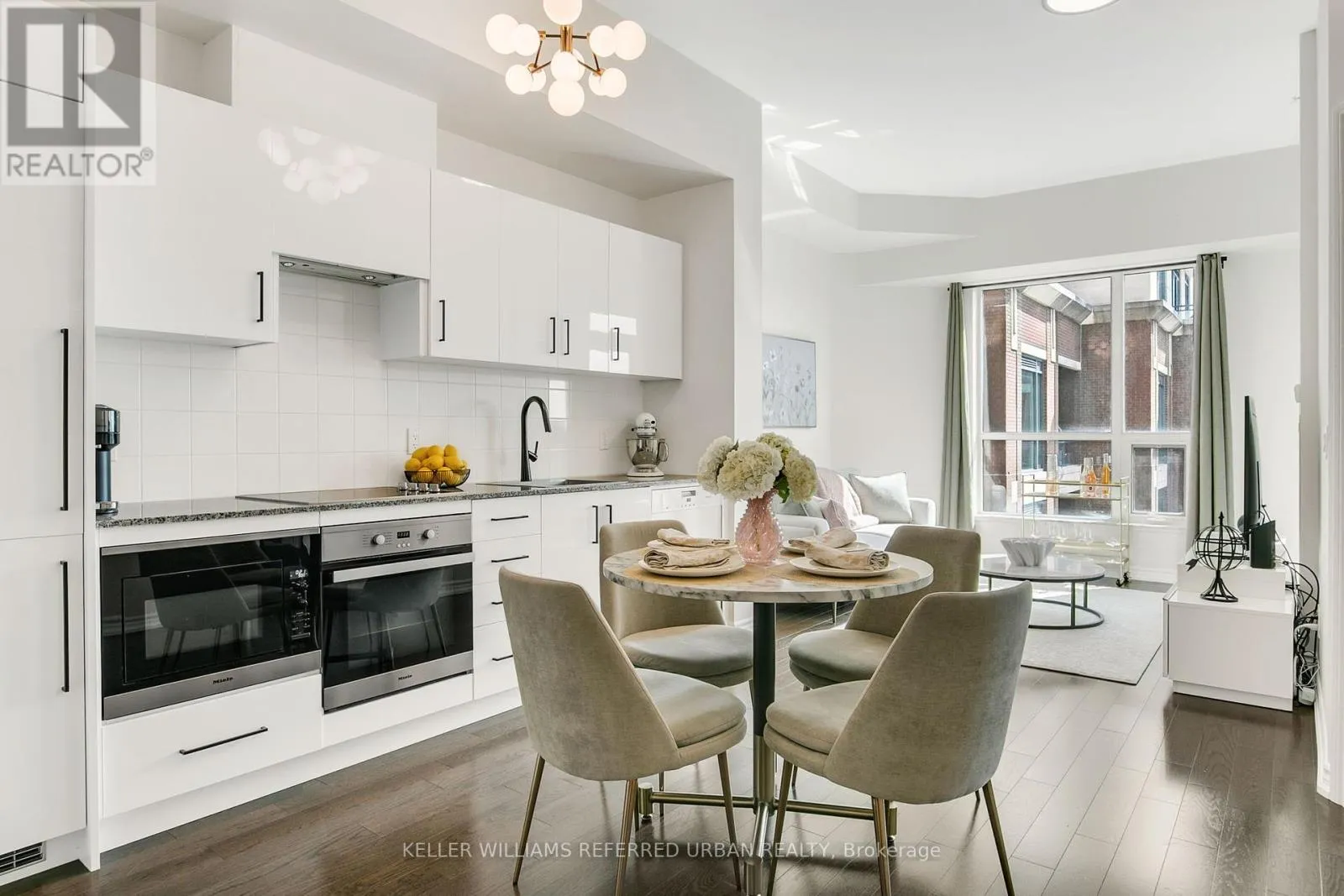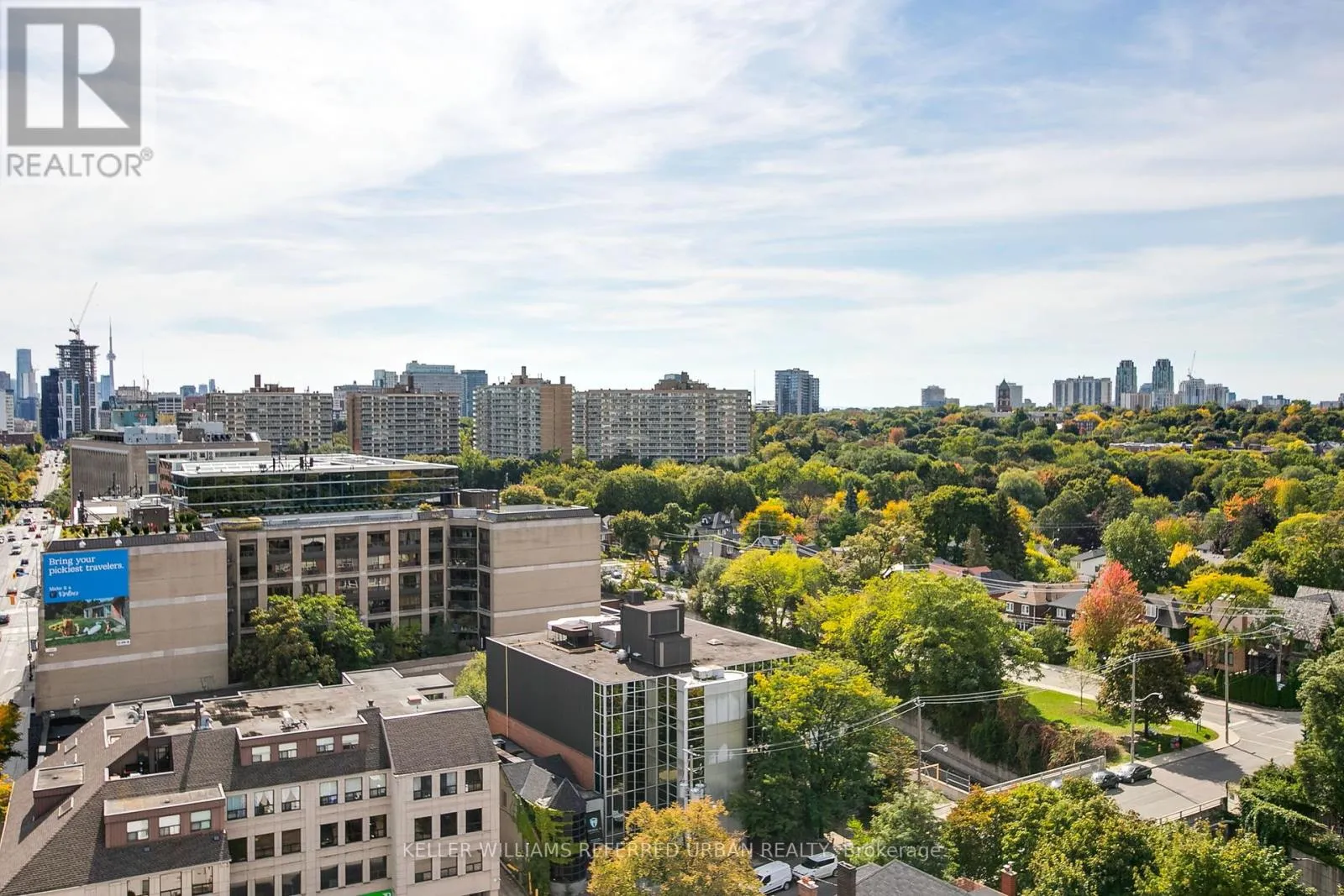 Yonge/Eglington Welcome to Allure Condominiums, where boutique style meets midtown convenience. Suite 725 is a beautifully appointed 2-bedroom, 2-bathroom condo that blends elevated design with effortless comfort, perfect for those who want city energy without sacrificing calm.Suite 725 features 10-foot soaring ceilings, broad-plank hardwood floors, and a bright open-concept layout that flows seamlessly between the kitchen, dining, and living spaces. The condo has been renovated to include thoughtful upgrades such as fully updated kitchen cabinetry, updated bathroom vanities with a custom built-in medicine cabinet in the ensuite, upgraded glass shower doors in both bathrooms, custom floor-to-ceiling closets in the primary bedroom with added storage, and upgraded hardware throughout the entire condo.The modern kitchen is equipped with Miele appliances and granite countertops, combining timeless design with practical sophistication. Enjoy your morning coffee or evening glass of wine on the private balcony, where you can see the CN Tower and the treelined views of Chaplin Estates.Residents love the buildings sense of community, attentive management, and refined amenities, including a rooftop terrace, fitness centre, party lounge, and concierge service. Located just off Yonge & Davisville, you're steps from the subway, popular cafés & restaurants, June Rowlands Park, and the Beltline Trail, a local favourite for a stroll or morning run. Extras include: locker, in-suite laundry, premium finishes throughout, and Miele appliances that tie the space together with seamless sophistication. (id:27476)