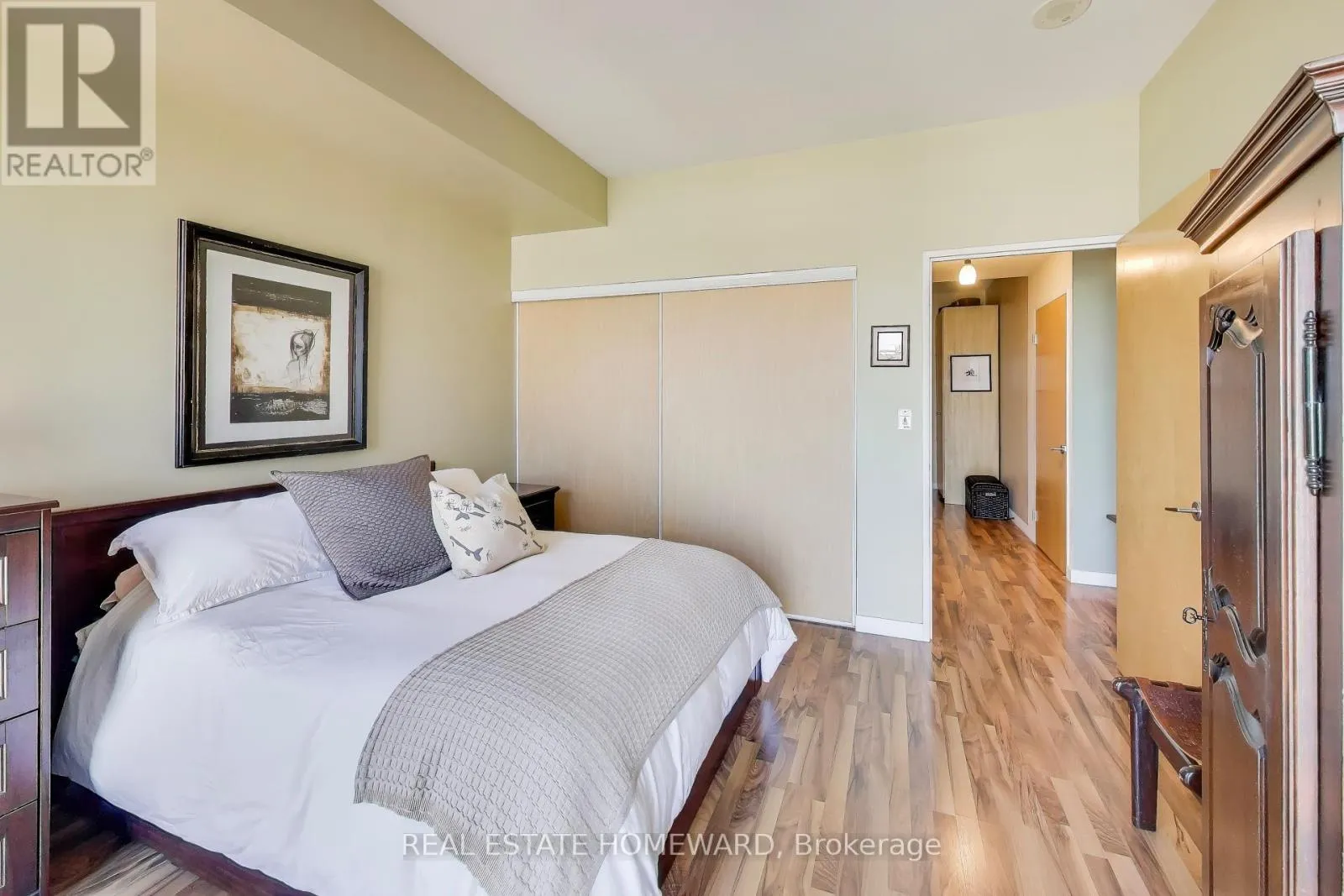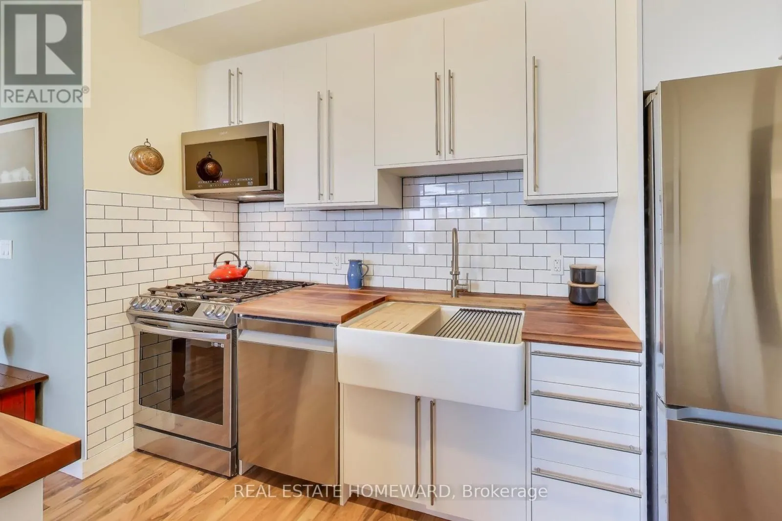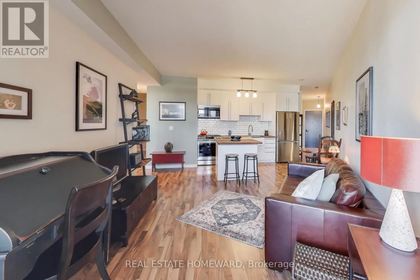 Cross Streets: King & Shaw. ** Directions: one street south of King, corner of Shaw & Douro. Home Sweet Home! Live comfortably in one of Toronto's most sought after neighbourhoods ~ King West Village ~ spacious 1 bed + den (used as second bedroom), smooth 9ft ceilings, 776 sq ft interior + 94 sq ft private balcony with gorgeous city views, parking (w/ 2 bike racks) & locker included. Beautifully upgraded kitchen with all new appliances, walnut kitchen counter & movable island, porcelain farmhouse apron sink with custom fitted rack & cutting board. Floor to ceiling windows allow natural light to spill into the open concept living/dining areas. A beautiful space to get cozy or entertain! Enjoy the cityscape from your generous sized private balcony equipped with bbq gas line & 2 walkouts. Great size primary bedroom with ample closet space and big windows. Den has been converted to a bedroom with solid wood barn style door for privacy. Ensuite Laundry - full sized LG Washer & Dryer w/ built-in intelligence, plenty of storage throughout. A lovingly maintained & updated space to call home. Top notch building amenities include a fully equipped fitness centre, roof top terrace w/BBQs, furniture & hammocks to enjoy unbelievable city views, party room, well maintained building, common areas recently renovated, low maintenance fees + hydro (subject to use), 24hr concierge, visitor parking, 93 Walk Score ~ steps to restaurants, bakeries/cafes, grocery stores, farmers market Trinity Bellwoods, Liberty Village, outdoor trails, parks, lakefront strolls, Ontario Place, transit & so much more! (id:27476)