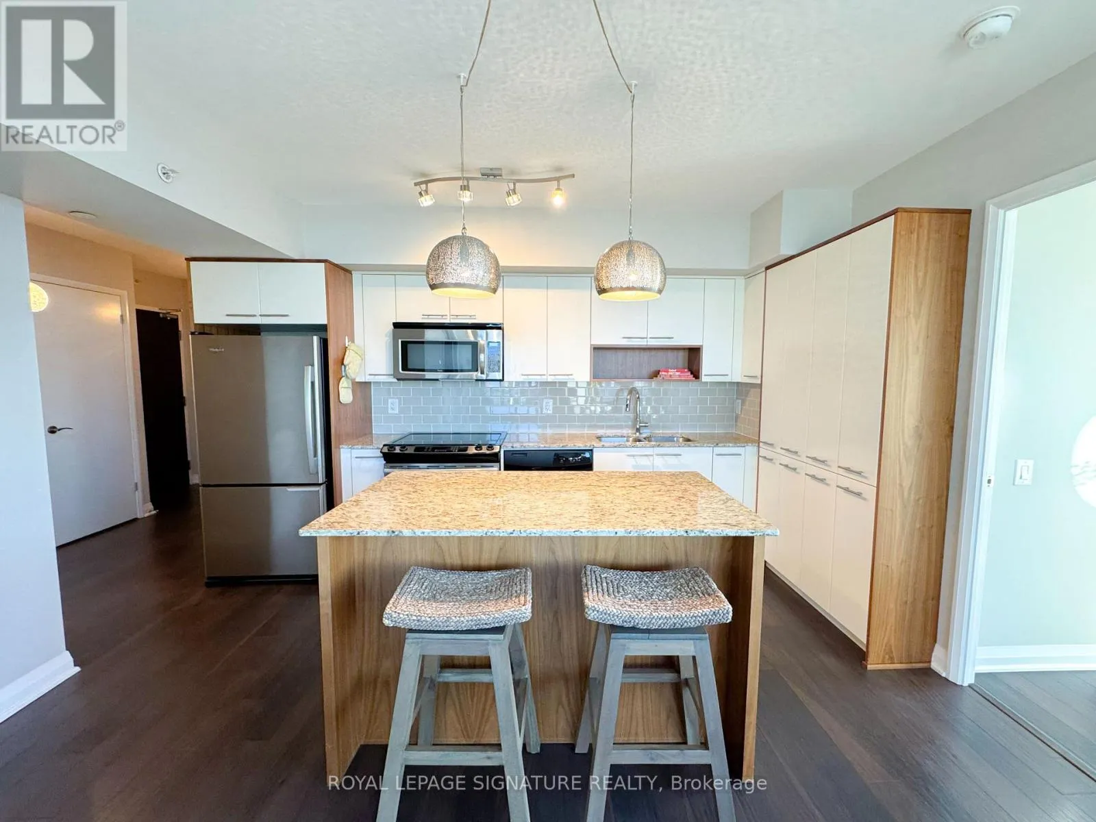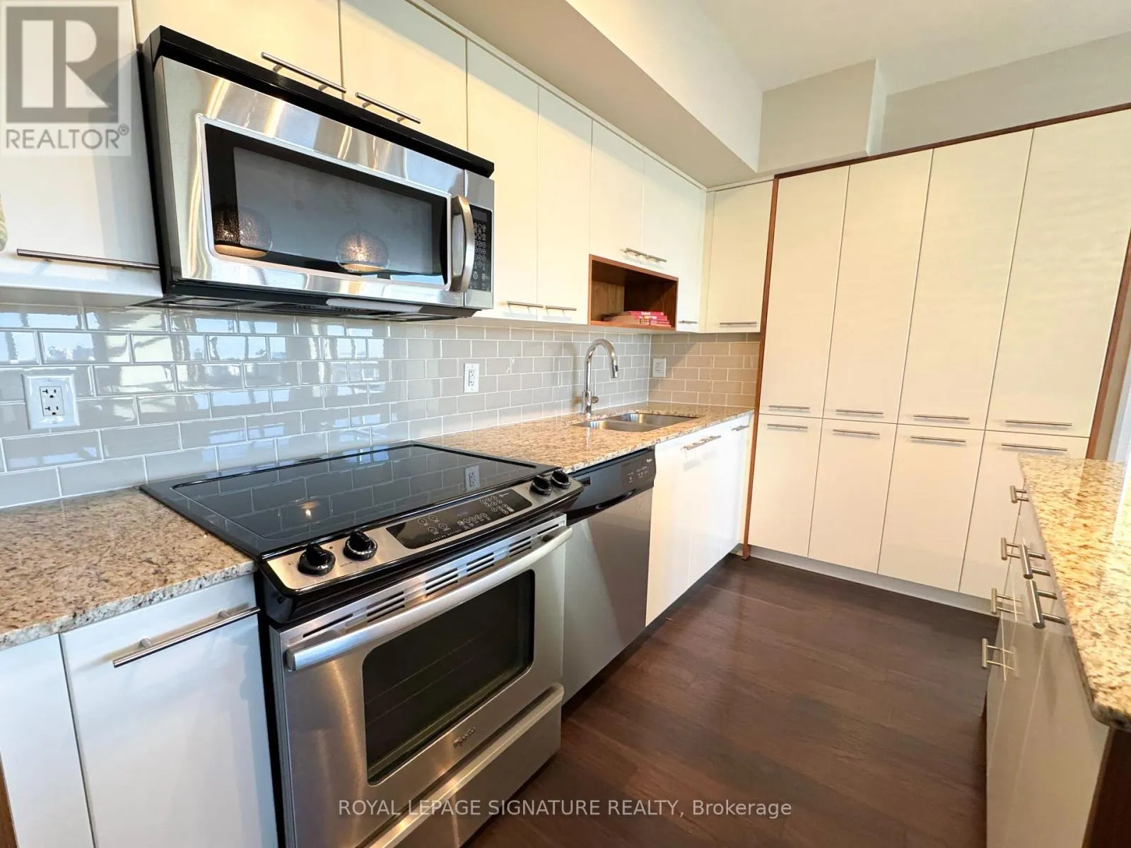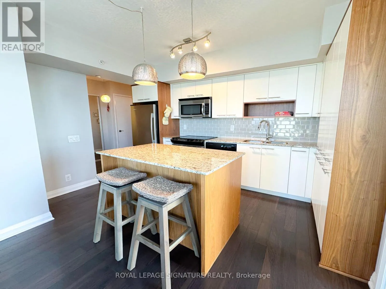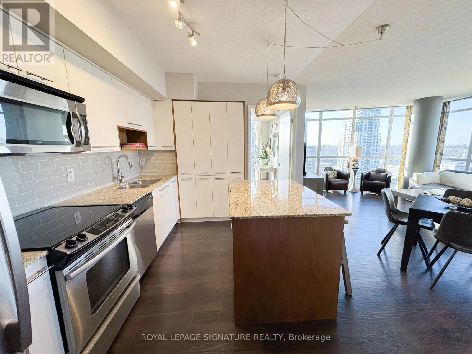 Burnhamthrope & The East Mall Luxurious 2-bedroom, l-bathroom corner suite with stunning floor-to-ceiling windows offering unobstructed panoramic views. This bright and spacious unit features a thoughtfully designed open-concept layout with split bedrooms for added privacy. The modern kitchen boasts sleek granite countertops, stainless steel appliances, a built-in pantry, and ample storage space. The living and dining area flow seamlessly, creating an inviting atmosphere perfect for entertaining. Step out onto the private balcony to enjoy breathtaking cityscapes. Additional features include ensuite laundry, one underground parking space, and a secure locker for extra convenience. Residents enjoy access to state-of-the-art amenities, including an indoor pool, sauna, fully equipped gym, and much more. Conveniently located with easy access to major highways, downtown Toronto, schools, parks, Sherway Gardens, the Airport, Kipling Subway Station, and GO Transit. Experience modern living at its finest! (id:27476)