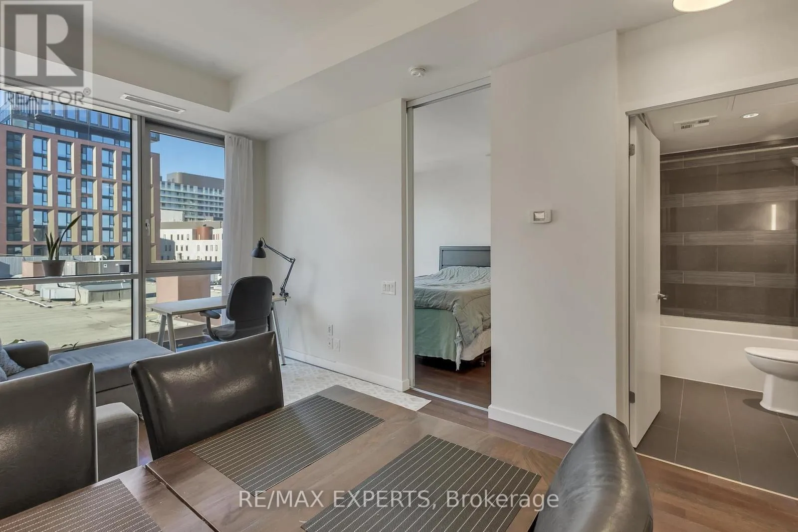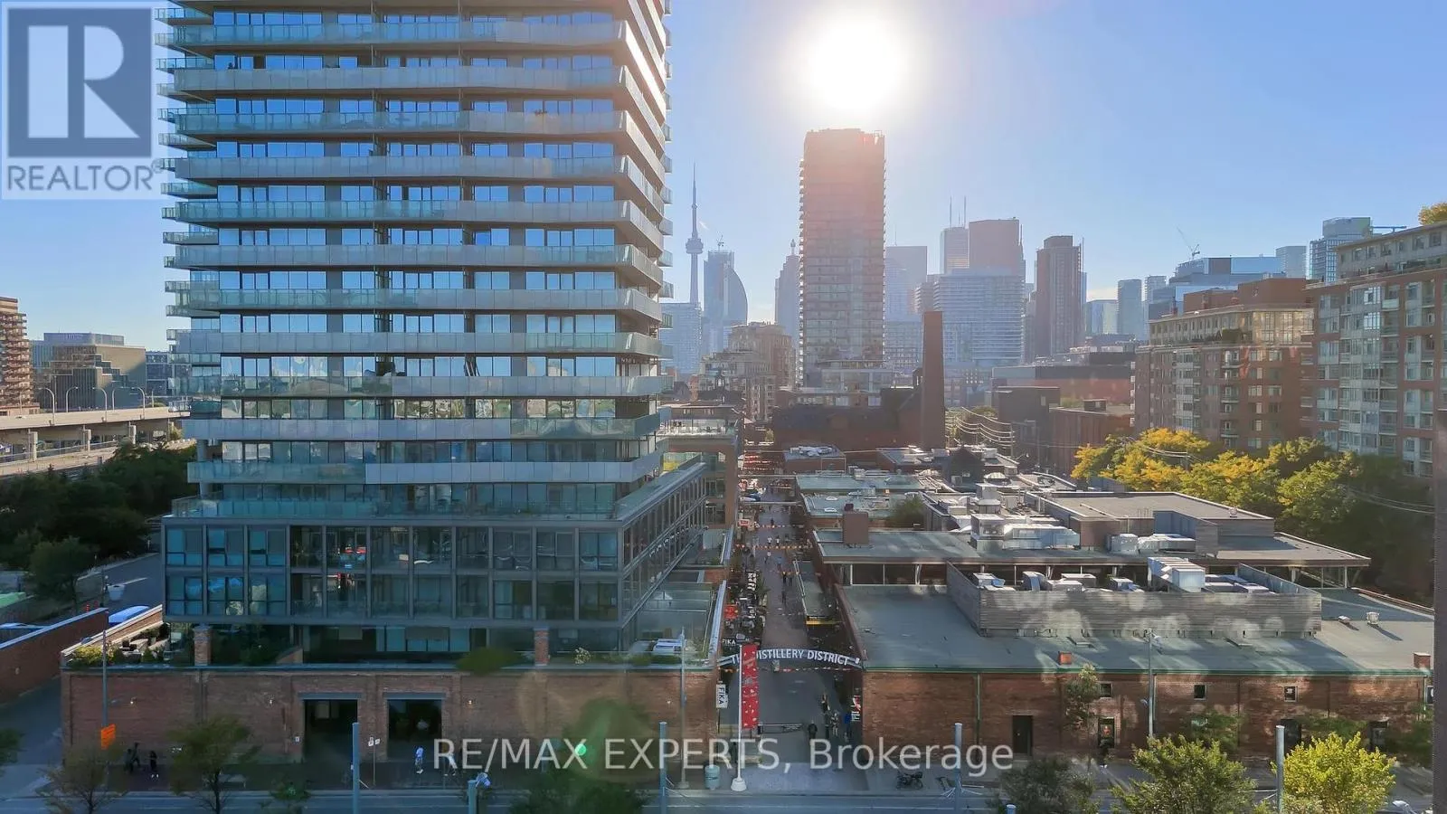 Cherry St / Mill St Live in the heart of Toronto's Historic Distillery District at The Gooderham. This bright, open-concept 1+1 bedroom suite (approx. 595 sq.ft.) features engineered hardwood throughout, floor-to-ceiling windows, and a fantastic distillery view. The functional layout offers seamless living/entertaining, with a versatile den and laundry. Parking and locker included. Lifestyle on your doorstep: cobblestone streets lined with cafés, boutiques, galleries, theatres and year-round cultural events. Walk to St. Lawrence Market, and in just minutes you can be at Cherry Beach for sunrise walks or weekend downtime. Transit, bike lanes, waterfront trails and quick access to the DVP/Gardiner make commuting simple. a compelling opportunity to own in one of the city's most iconic, pedestrian-friendly neighbourhoods. Residents enjoy a full amenity roster: concierge, exercise room, media room, outdoor pool, recreation/party spaces and sauna. Investor friendly: currently tenant-occupied at $2,370/mo with the lease in place until Jan 26, 2026; the tenant is willing to stay. (id:27476)