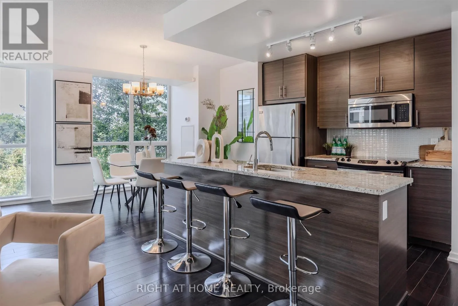 Cross Streets: Don Mills Rd & Sheppard Ave E. ** Directions: South of Sheppard Ave E. *Don Mills Station At Your Doorstep* Welcome to an exquisite luxury condo, nestled in the prestigious Emerald City Community. This stylish residence offers more than 1000 square feet of living space, and blends modern sophistication with timeless charm, creating a truly elevated living experience. Upon entry, you're welcomed into a freshly painted interior featuring a sun-filled open-concept living and dining area with gleaming floors, soaring 9 foot ceilings, elegant light fixtures, and floor to ceiling windows. The chef-inspired kitchen is equipped with premium stainless steel appliances, granite countertops, a custom backsplash, generous cabinetry, and a convenient centre island. The expansive primary bedroom offers a walk in closet and a four piece ensuite. Enjoy a spacious 177 square foot balcony overlooking the serene courtyard and plush greenery, plus the convenience of one parking space and one locker. At Emerald City, residents benefit from an array of upscale amenities including a cutting-edge fitness center, swimming pool, hot tub, party room, games room, and 24-hour concierge service. Move right in and start enjoying the lifestyle you deserve! The home is conveniently located next to shops, dining, great schools, highways 401 and 404/DVP, and public transportation including Don Mills Subway Station at your doorstep, providing the ultimate in urban living. (id:27476)