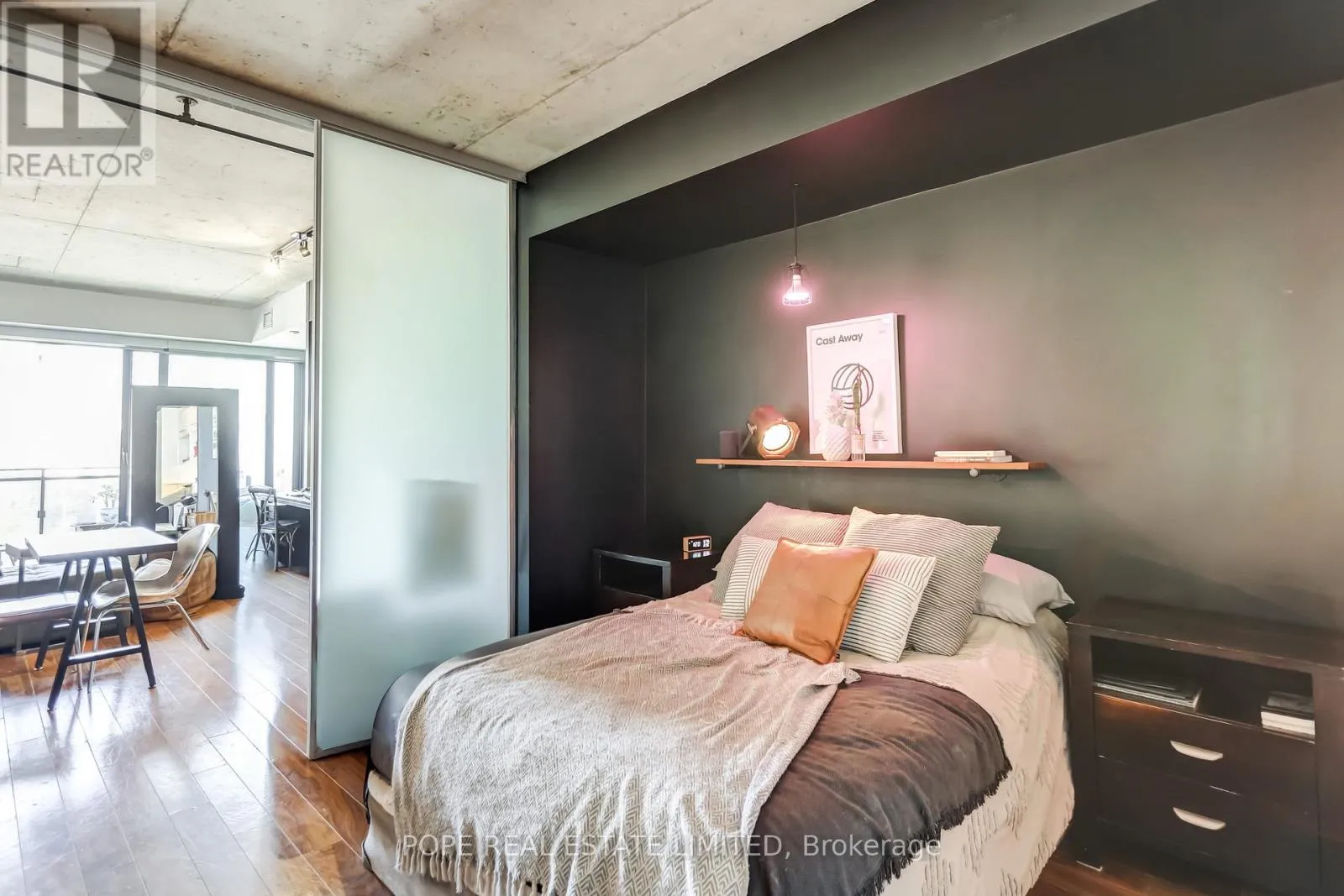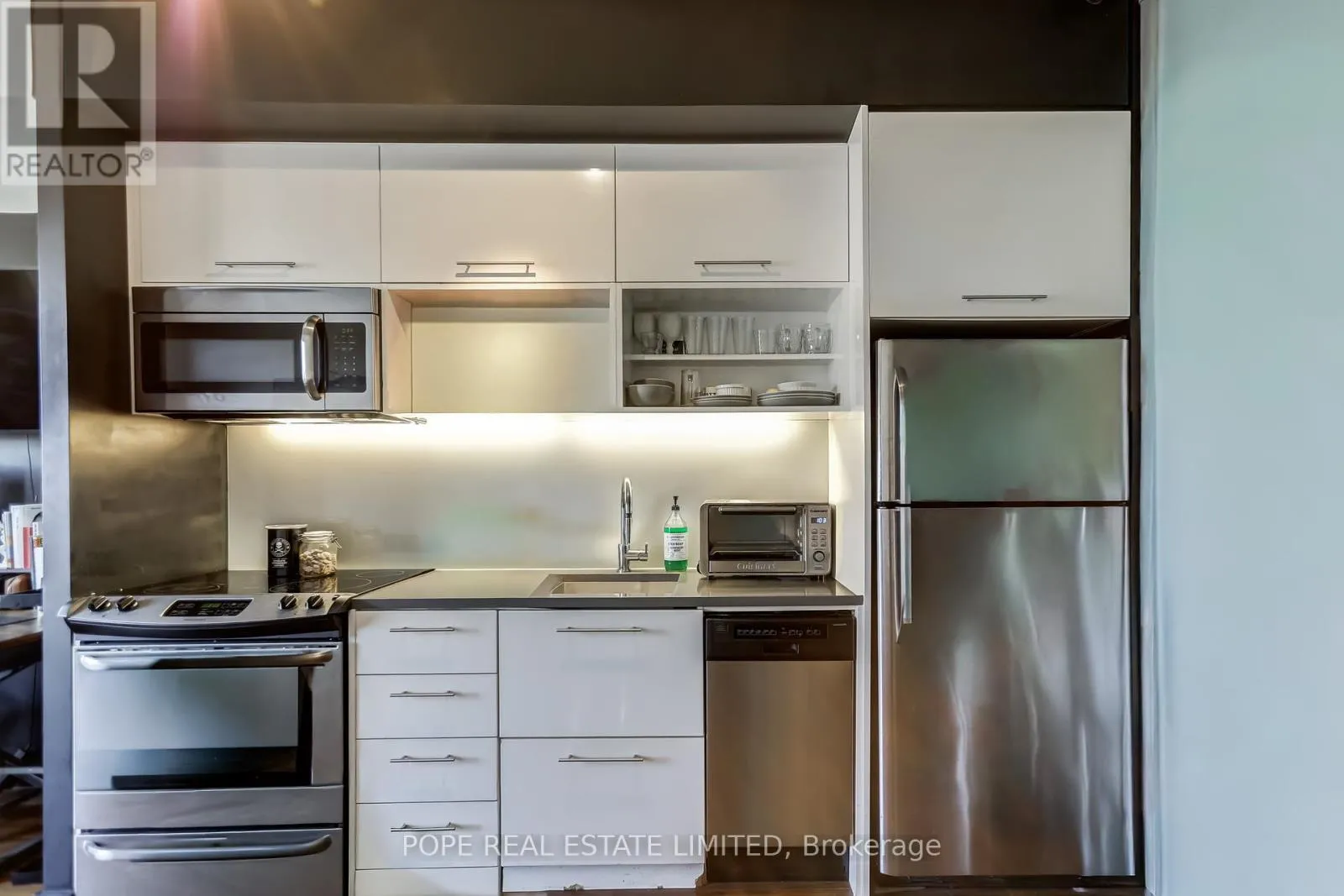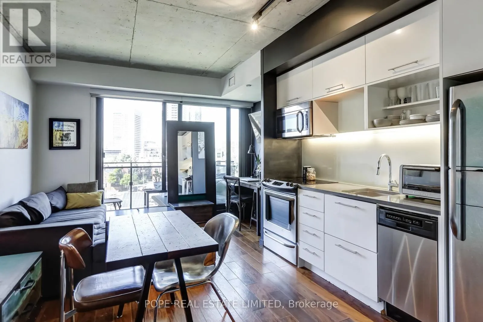 King St E & Lower River St An architectural triumph by Acclaimed Saucier + Perotte Architectes, Urban Capital & Waterfront Toronto. Completed in 2013. River City Phase 1 is situated on the lower eastern edge of downtown in the desirable Corktown & the West Donlands neighborhoods. Very well connected to Riverside, Leslieville, Distillery District, St. Lawrence Market, Corktown Commons Park, Don River Valley Park & Toronto's Waterfront Trail System & the DVP. TTC 504 streetcar practically at your front door. A modern loft style apartment showcasing approximately 523 sf of very usable interior space & a large 54 sf northwest facing balcony overlooking a small park, King Street & the city,1 bedroom, 1 Bath, 9 ft exposed concrete ceilings, galvanized spiral duct, stylish walnut flooring throughout, modern white kitchen featuring stainless steel appliance & grey quartz counter, fully tiled spa inspired bath featuring soaker tub, large vanity, vanity mirror & laundry closet. The building features 24hr concierge,a well equipped gym, 2 large party rooms featuring lounge, bar, kitchen, dining Area, billiards table, comfortable guest suite, outdoor pool great for morning laps, sun deck for lounging & a BBQ grilling area. 1 storage locker and 2 bike racks included. (id:27476)