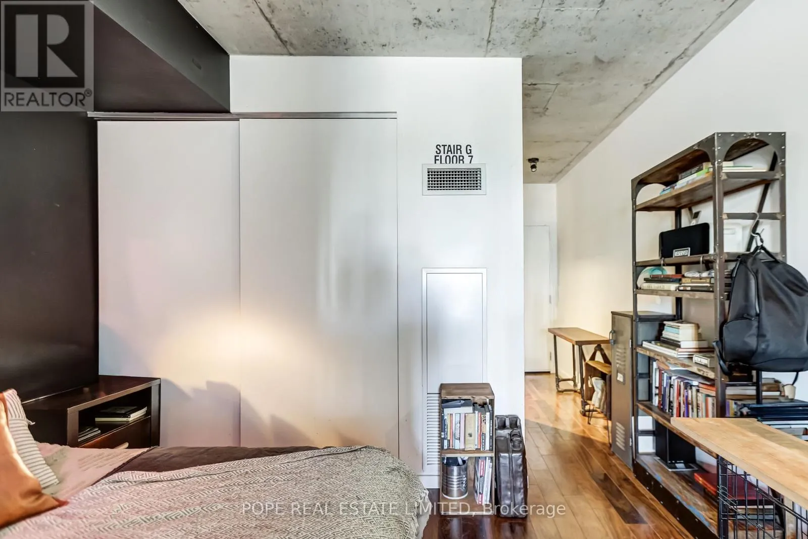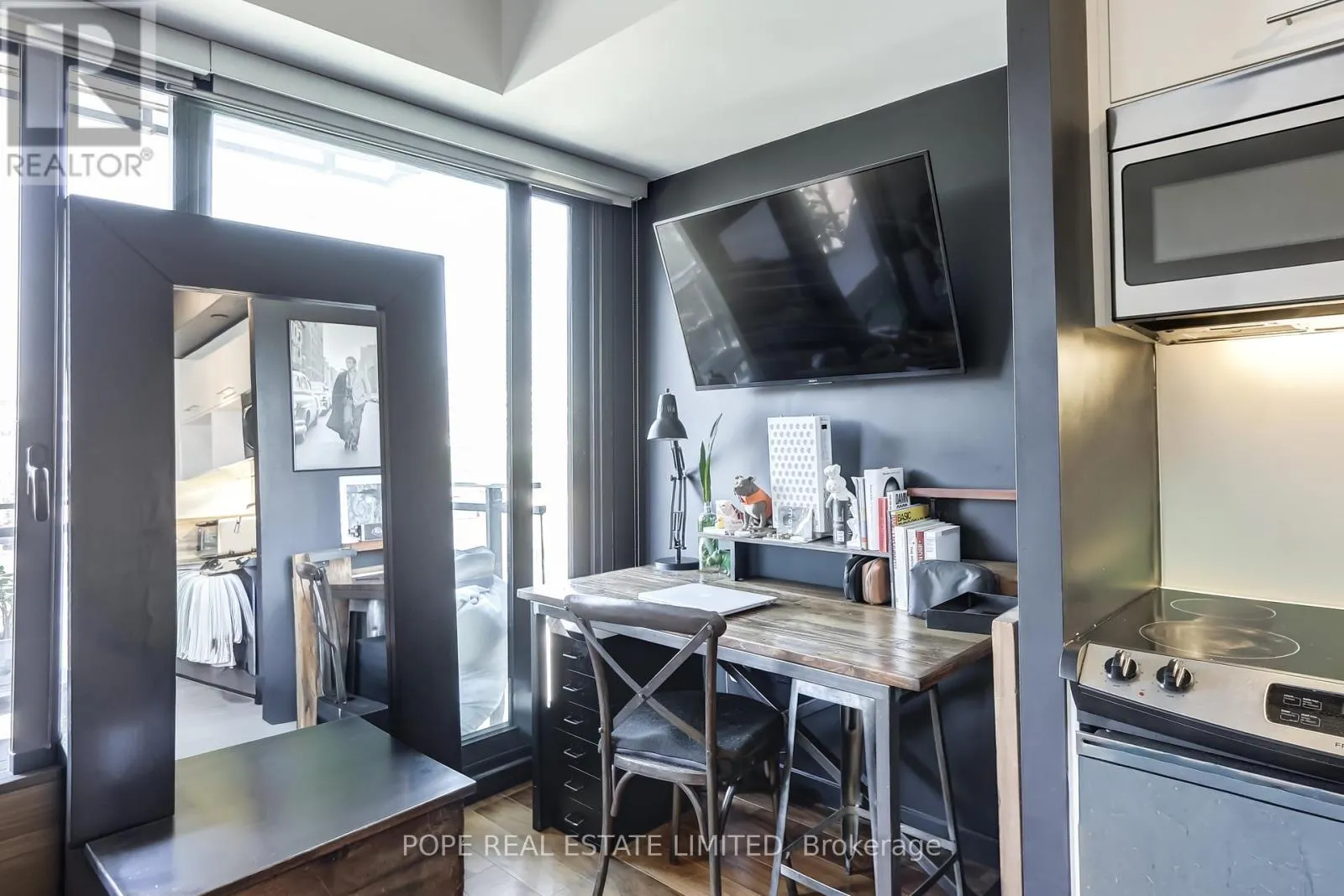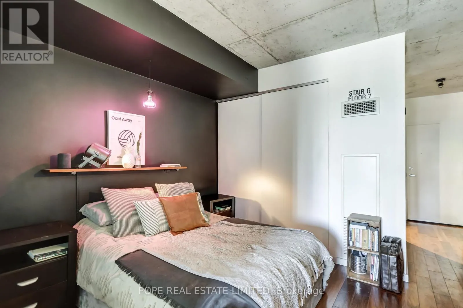 King St E & Lower River St An architectural triumph by Acclaimed Saucier + Perotte Architectes, Urban Capital & Waterfront Toronto. Completed in 2013. River City Phase 1 is situated on the lower eastern edge of downtown in the desirable Corktown & the West Donlands neighborhoods. Very well connected to Riverside, Leslieville, Distillery District, St. Lawrence Market, Corktown Commons Park, Don River Valley Park & Toronto's Waterfront Trail System & the DVP. TTC 504 streetcar practically at your front door. A modern loft style apartment showcasing approximately 523 sf of very usable interior space & a large 54 sf northwest facing balcony overlooking a small park, King Street & the city,1 bedroom, 1 Bath, 9 ft exposed concrete ceilings, galvanized spiral duct, stylish walnut flooring throughout, modern white kitchen featuring stainless steel appliance & grey quartz counter, fully tiled spa inspired bath featuring soaker tub, large vanity, vanity mirror & laundry closet. The building features 24hr concierge,a well equipped gym, 2 large party rooms featuring lounge, bar, kitchen, dining Area, billiards table, comfortable guest suite, outdoor pool great for morning laps, sun deck for lounging & a BBQ grilling area. 1 storage locker and 2 bike racks included. (id:27476)