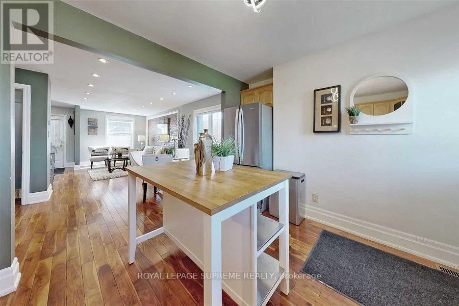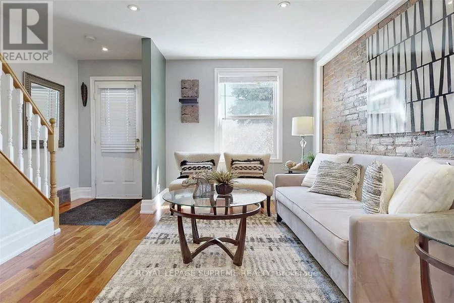 Cross Streets: Old Weston & St.Clair Ave W. ** Directions: Silverthorn & Turnberry. This well-maintained and updated home offers a bright and inviting open-concept main floor, complete with beautiful hardwood flooring, pot lights, a stylish brick accent wall, and plenty of natural light. The kitchen walks out to a spacious backyard, perfect for relaxing or entertaining. Upstairs, you'll find two generous bedrooms, each with ample closet space. Located in a family-friendly neighbourhood, you're steps from schools, parks, the St. Clair streetcar, Stockyards shopping, and an array of shops and restaurants along St. Clair. The utility split is 50% water & waste, 70% hydro and gas. *Photos previously taken.* (id:27476)