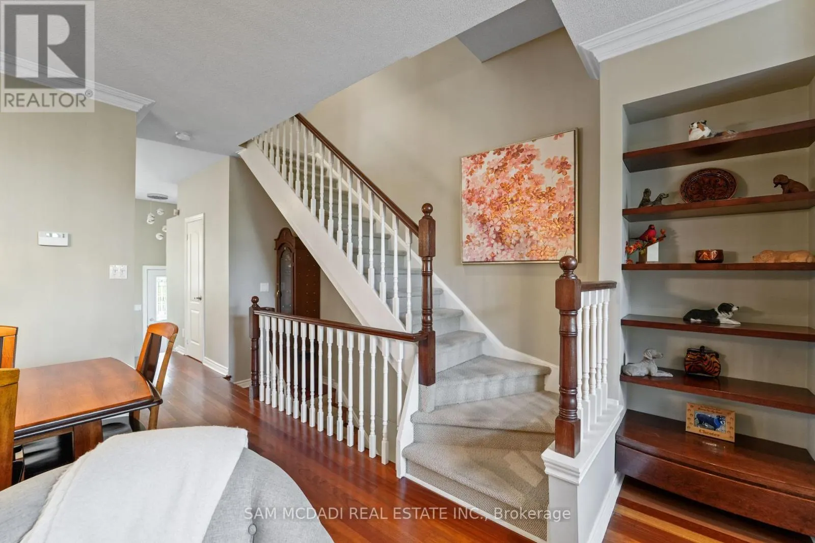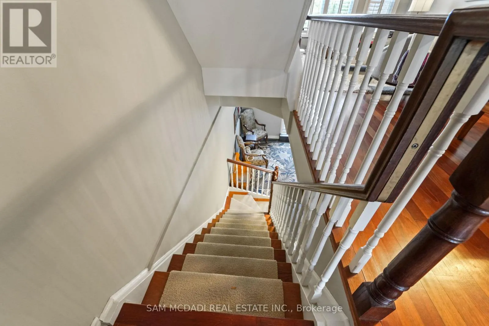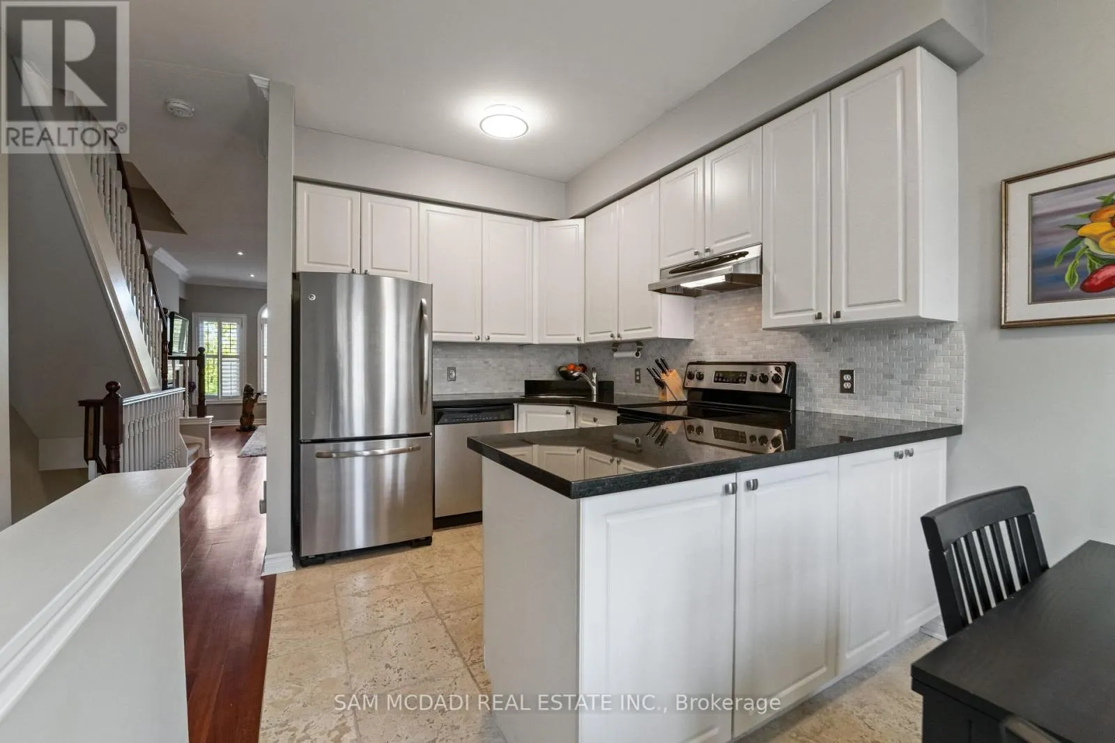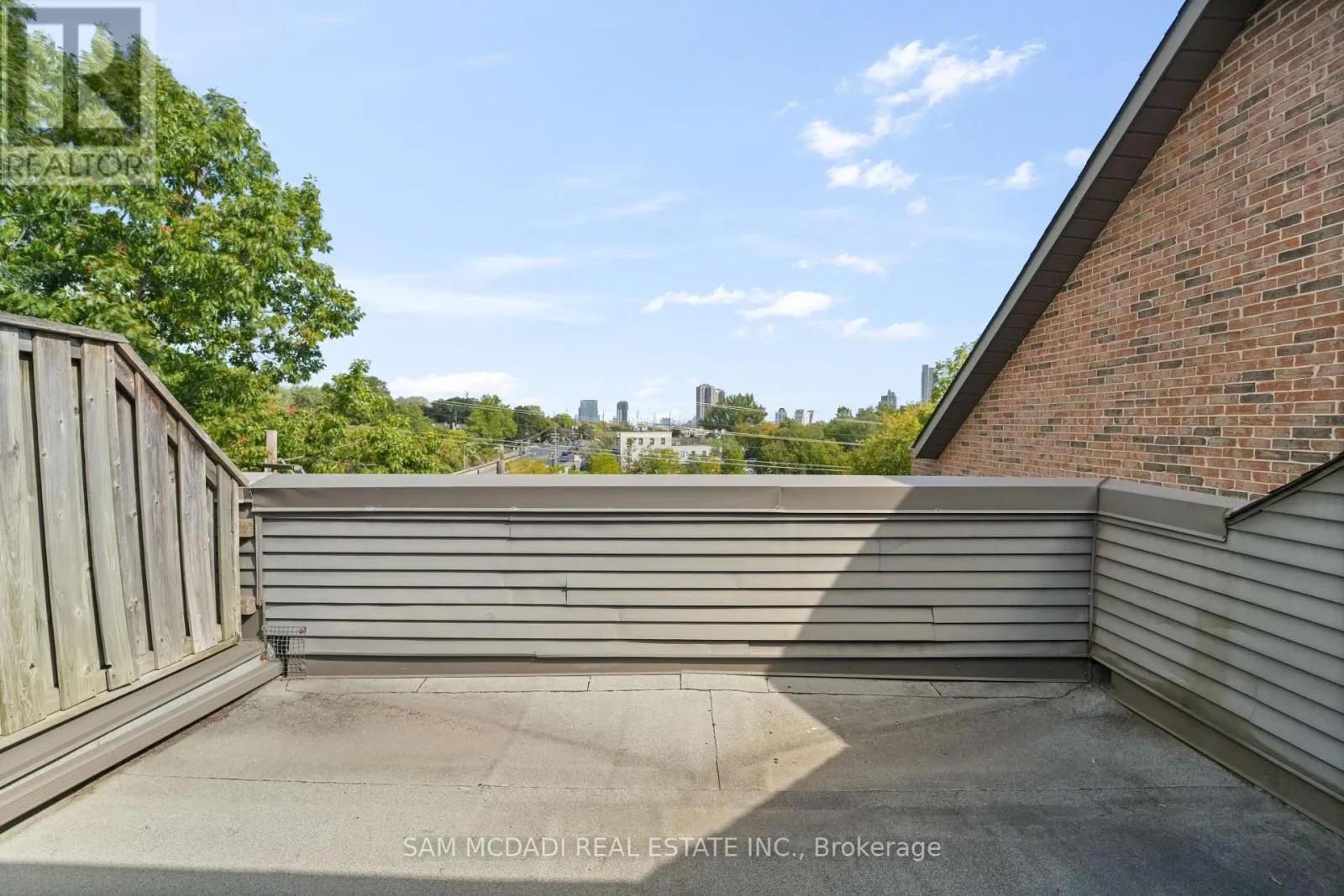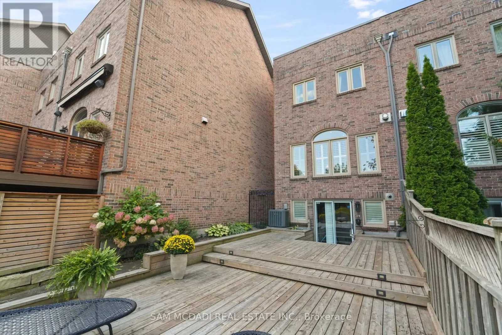 Cross Streets: Grand Avenue/Queensway. ** Directions: Queensway West of Park Lawn to Grand Ave. Located just minutes from downtown Toronto, High Park, The Kingsway, and the vibrant Bloor West Village, this impeccably maintained executive end-unit townhome is tucked away on a rare and expansive ravine lot, offering exceptional privacy and tranquil views. The highly sought-after 16-foot-wide model features a sleek, contemporary design paired with a warm and inviting atmosphere, all within a bright, open-concept layout. Inside, you'll find soaring 9-foot ceilings, gleaming hardwood floors, and generously sized principal rooms. The walkout basement adds functional living space, while the top-floor sundeck provides the perfect setting for a private bedroom retreat or home office complete with rough-in plumbing for added flexibility. On the main level, the sun-filled eat-in kitchen boasts granite countertops, a stylish backsplash, and stainless steel appliances. The open-concept layout flows seamlessly into the living and dining areas, making it ideal for both everyday living and entertaining. Step outside to the beautifully landscaped, ravine-backed backyard, a serene, private space divided into two thoughtfully designed zones. The newer deck flooring, ambient lighting, and natural surroundings create an ideal spot for summer evenings and quiet relaxation. This impressive home effortlessly combines urban convenience with the peaceful charm of nature, a rare gem not to be missed. (id:27476)