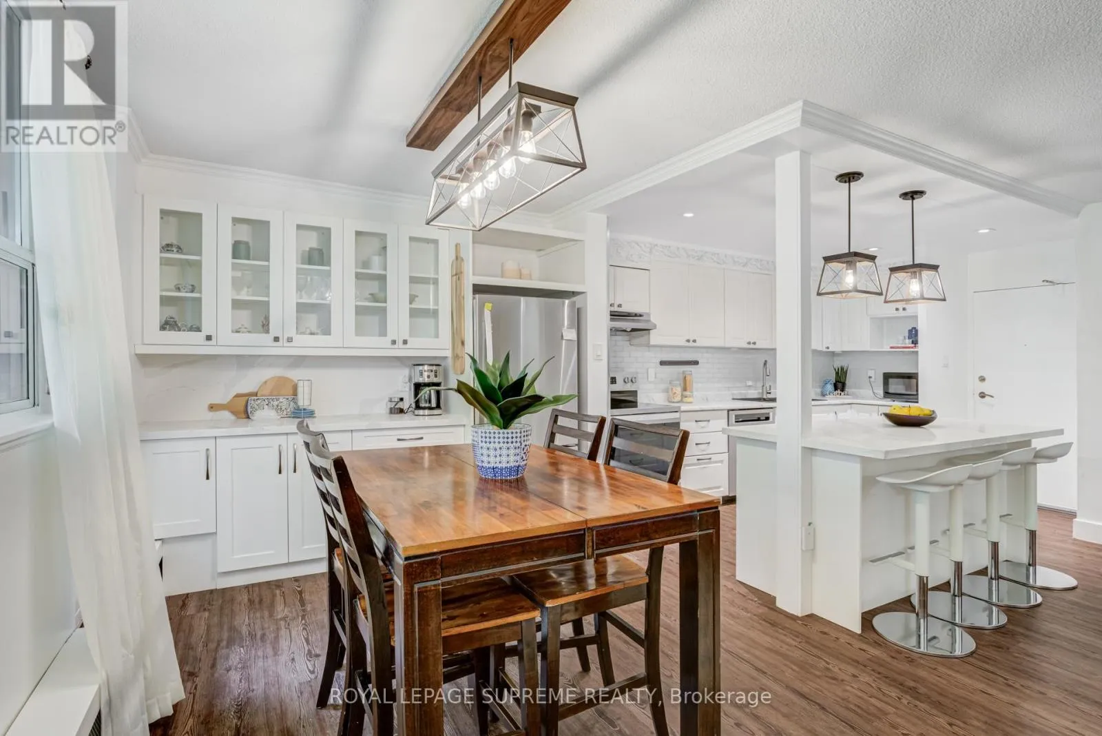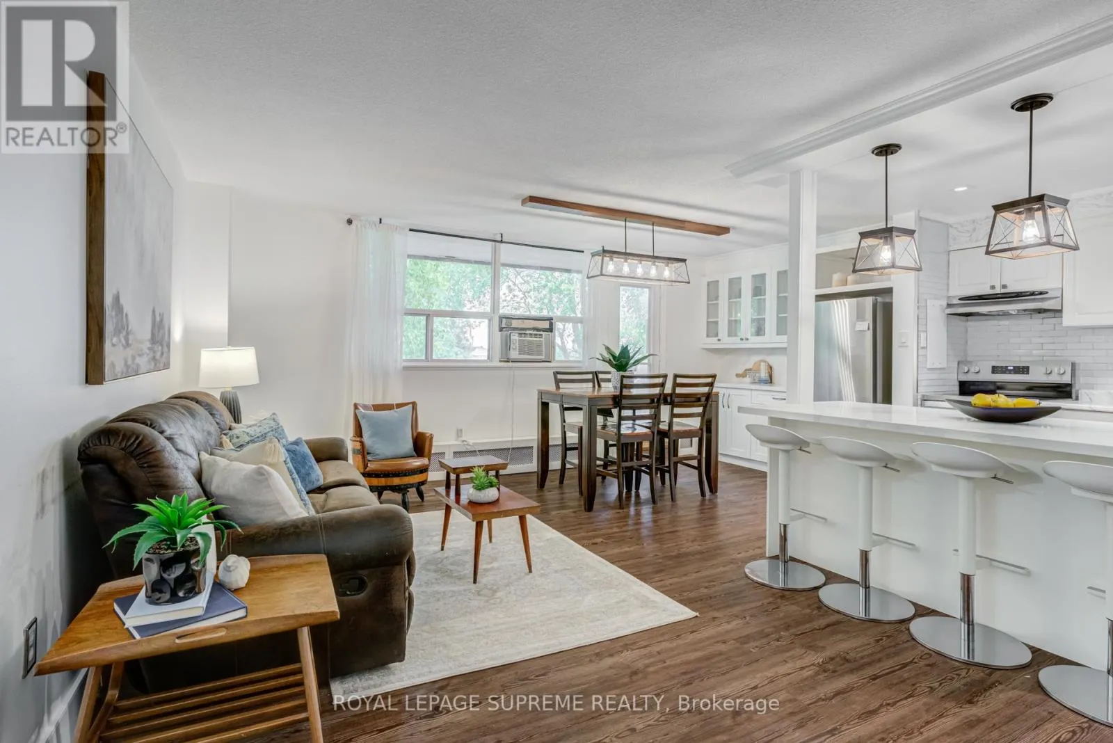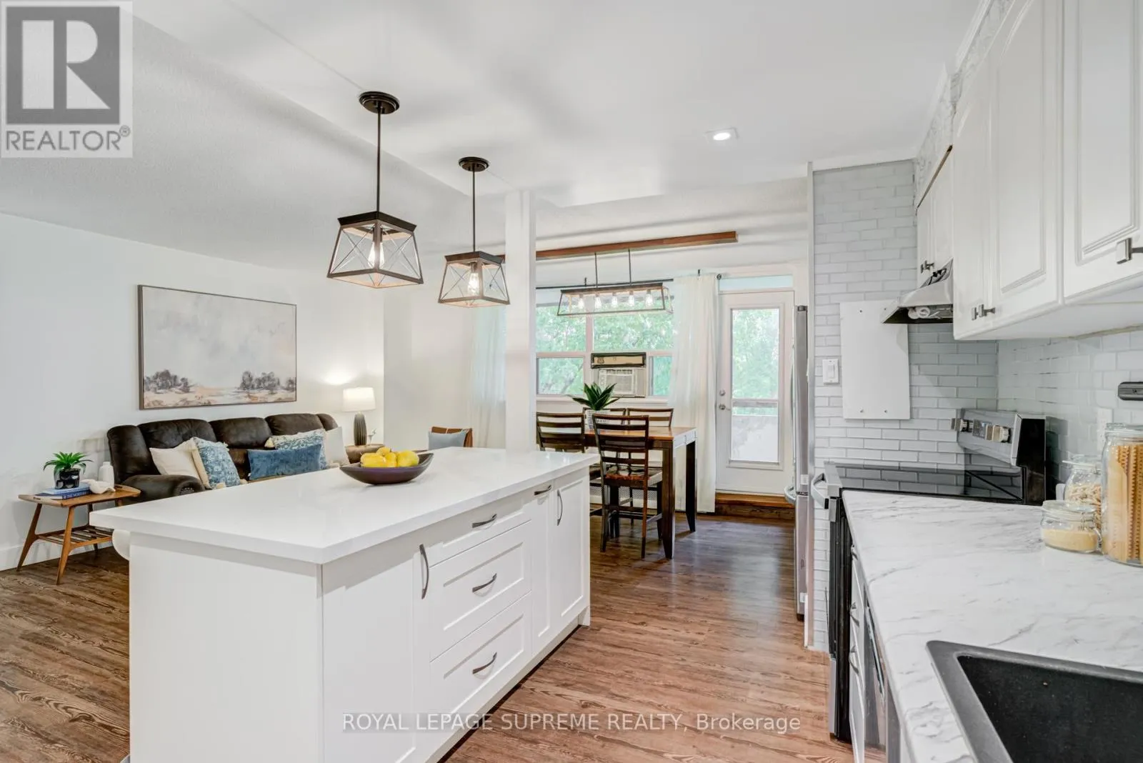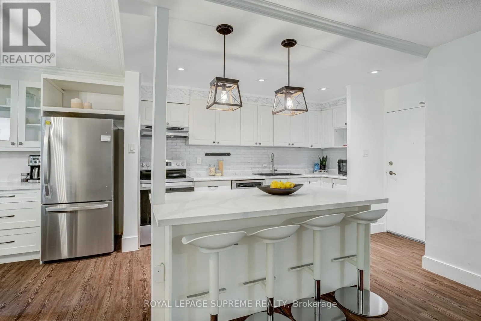 Cross Streets: Eglinton and Blackthorn. ** Directions: South of Eglinton Avenue. Whether you're taking your first step into homeownership or simplifying life without sacrificing space, this updated 2-bedroom condo delivers the perfect blend of style, comfort, and unbeatable value. Bright, open concept, and move-in ready! It features a modern kitchen with a large island, quartz counters and tons of storage for the chef. Enjoy your south facing balcony overlooking green space and views of the pool, your daily retreat from city hustle. At Blackthorn Manor, every detail is designed for effortless living. All-inclusive maintenance fees give you clarity, freedom, and control. Enjoy an outdoor pool and barbeque area, tennis court, and more, all within a welcoming community. With the new Eglinton Crosstown LRT steps away, downtown, or mid town, is closer than ever. This isn't just a condo, it's your chance to live smarter, lighter, and on your terms. (id:27476)