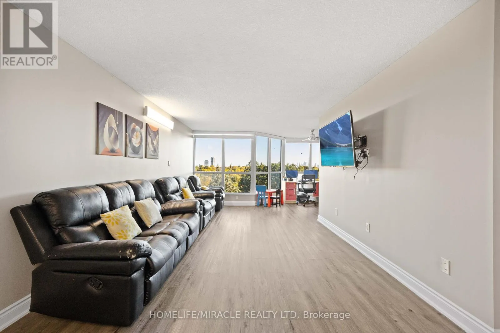 Kipling/Steeles Welcome to this bright and spacious 2-bedroom, 2-bathroom condo on the 3rd floor, where natural light, modern finishes, and thoughtful design come together to create an exceptional home. From the moment you enter, the open-concept layout and freshly painted walls set the tone for a warm, inviting space perfect for everyday living. The large living and dining area offers comfort and flexibility, ideal for relaxing after a long day or entertaining family and friends. Upgraded laminate flooring runs throughout the unit, giving it a clean, modern look that is stylish, durable, and easy to maintain. The kitchen is a standout, designed with both function and beauty in mind. Featuring stainless steel appliances, a contemporary tiled floor, and a sleek backsplash, its a space where cooking and entertaining feel effortless. The primary suite is generously sized, offering a private retreat with a large walk-in closet and a beautifully updated 4-piece ensuite that makes every day feel like a spa day. The second bedroom is equally spacious and versatile, making it perfect for children, guests, or even a home office. Both bedrooms are enhanced by floor-to-ceiling windows that flood the rooms with natural light, creating bright, cheerful spaces all day long. The second bathroom has been thoughtfully upgraded with modern fixtures and a luxurious rainfall shower set, adding style and comfort your family will appreciate. One of the highlights of this condo is the expansive covered balcony, a true extension of your living space where you can enjoy morning coffee, unwind in the evening, or entertain year-round, rain or shine. This family-friendly building also offers an impressive list of amenities including a gym, sauna, squash court, tennis courts, and swimming pool, giving you endless options for fitness and recreation without leaving home. With schools, parks, shopping, and transit just steps away, this condo delivers the perfect balance of lifestyle, convenience, and community. (id:27476)