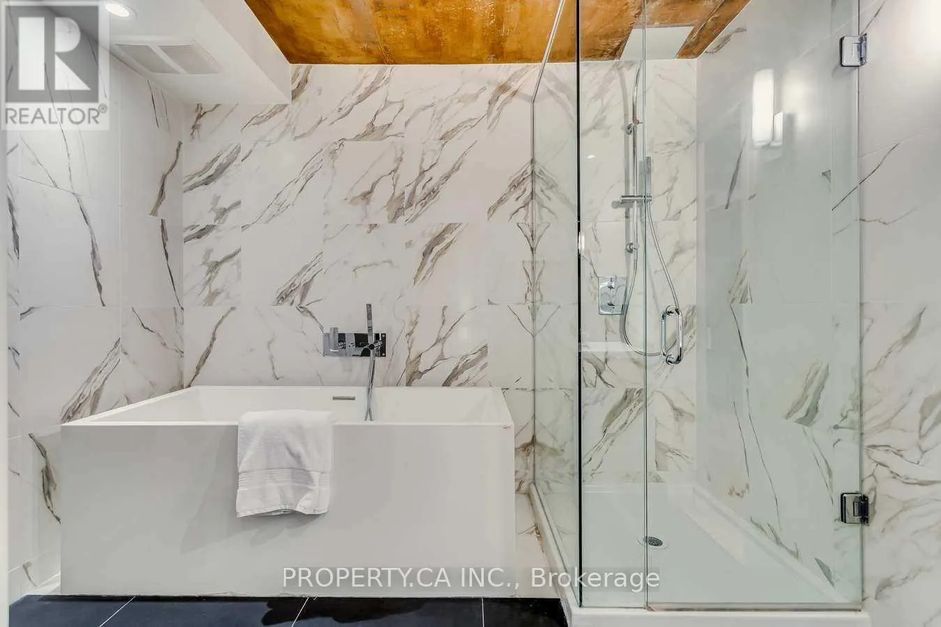 Walmer/St Clair/ Spadina Welcome to Suite 403 at Winston Place - This spacious, multi-level suite spans over 2,100 square feet of beautifully designed living space. The open-concept main floor offers distinct areas for living, dining, and family gatherings, all enhanced by hardwood flooring, custom millwork, and glass accents. The updated kitchen features built-in appliances, a breakfast bar, and plenty of prep space - ideal for entertaining or quiet evenings at home. The upper level isa true retreat. The expansive primary bedroom includes a walk-in closet, a five-piece ensuite with spa-like finishes, and a full-sized home office - perfect for remote work or creative pursuits. A second bedroom and additional bathroom offer flexibility for guests or family.Winston Place is known for its quiet, community feel with only a handful of suites per floor. Amenities include a fitness center, sauna, concierge service, and secure underground parking with visitor spots. Located steps from the green serenity of Nordheimer Ravine and just a short walk to Forest Hill village, transit, and top schools, this suite offers an exceptional blend of natural beauty and city convenience. (id:27476)