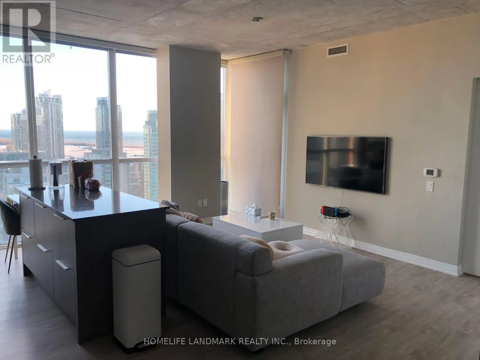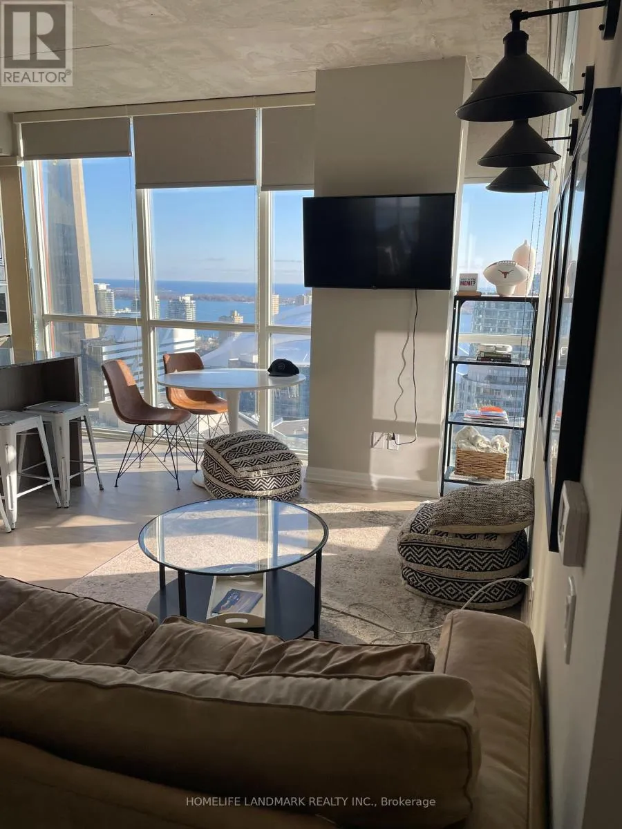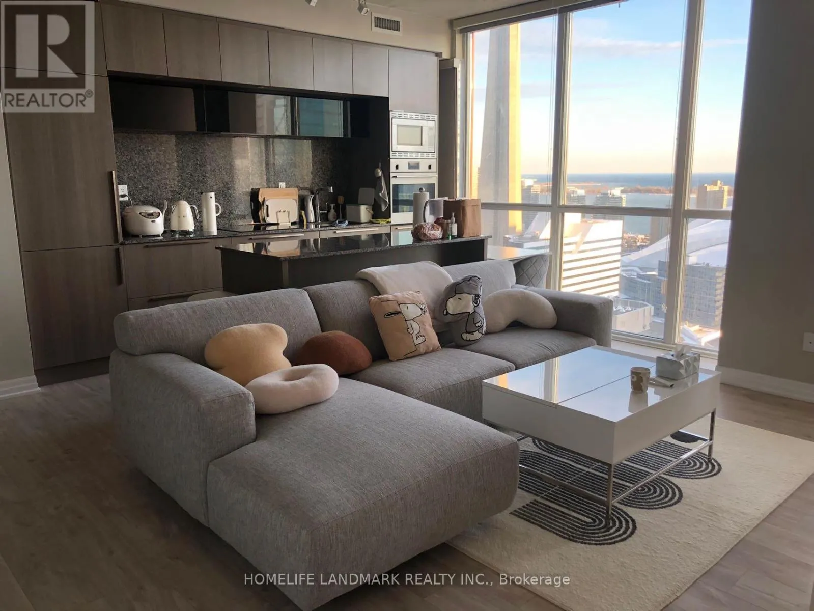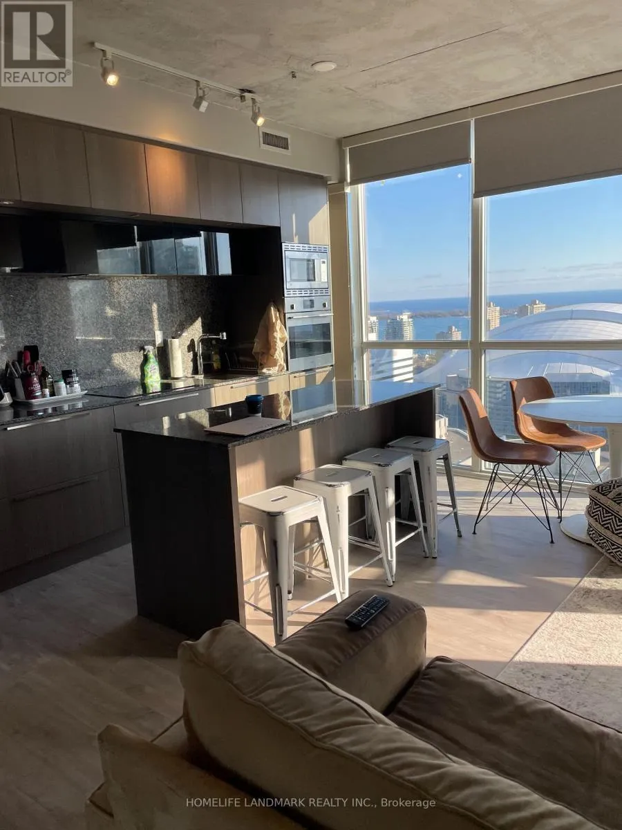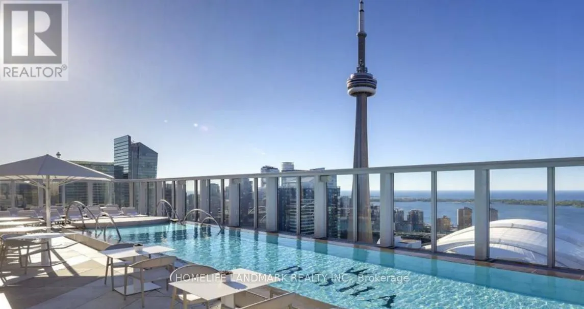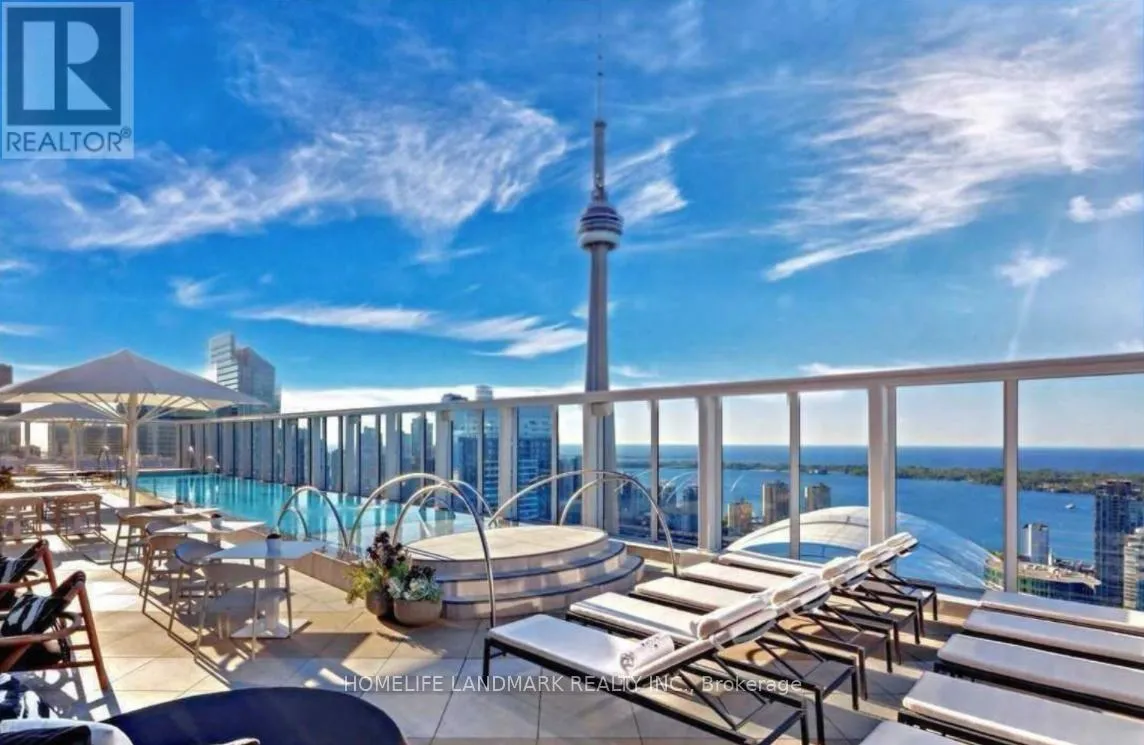 Cross Streets: King St W/Blue Jays Way. ** Directions: Gardiner Expy to Spadina Ave to Front St or King St W to Blue Jays Way. Toronto Downtown Prestigious Address, Bisha Hotel & Residences, One Bedroom+Den+One Bathroom+One Parking+One Locker For Sale! Fully Sunshine Unit With Breathtaking Unobstructed South Waterfront Lake View, Enjoy Sunrise And Sunset. Bisha Flagship Giselle Layout, Open Concept, 9' Exposed Concrete Ceiling , Floor To Ceiling Windows. Bright, Spacious & Luxury, Designer Cabinetry By Munge Leung With Granite Counter-Top In Both The Kitchen & Bathroom, Engineered Hardwood, Marble Bathroom Floor. Large Den Using As 2nd Bedroom, And Parking Spot Is Close To Elevator Entrance. 24 Hr Concierge, Enjoy Hotel Amenities Rooftop Lounge/Infinity Pool, Gym, Balliard Room, Party/Meeting Room, Bike Storage, Bar And Restos. Bisha Hotel Offers Everything Right At Your Front Door, Theaters & Shops As Well As Prestigious Tiff Festival. (id:27476)