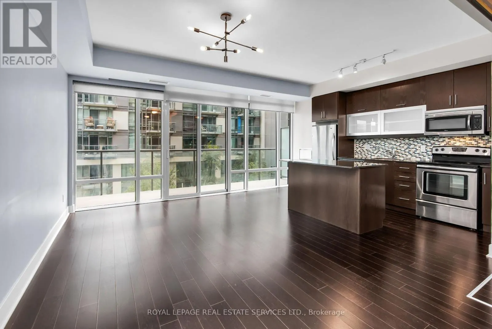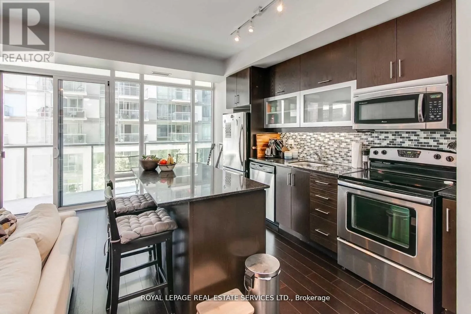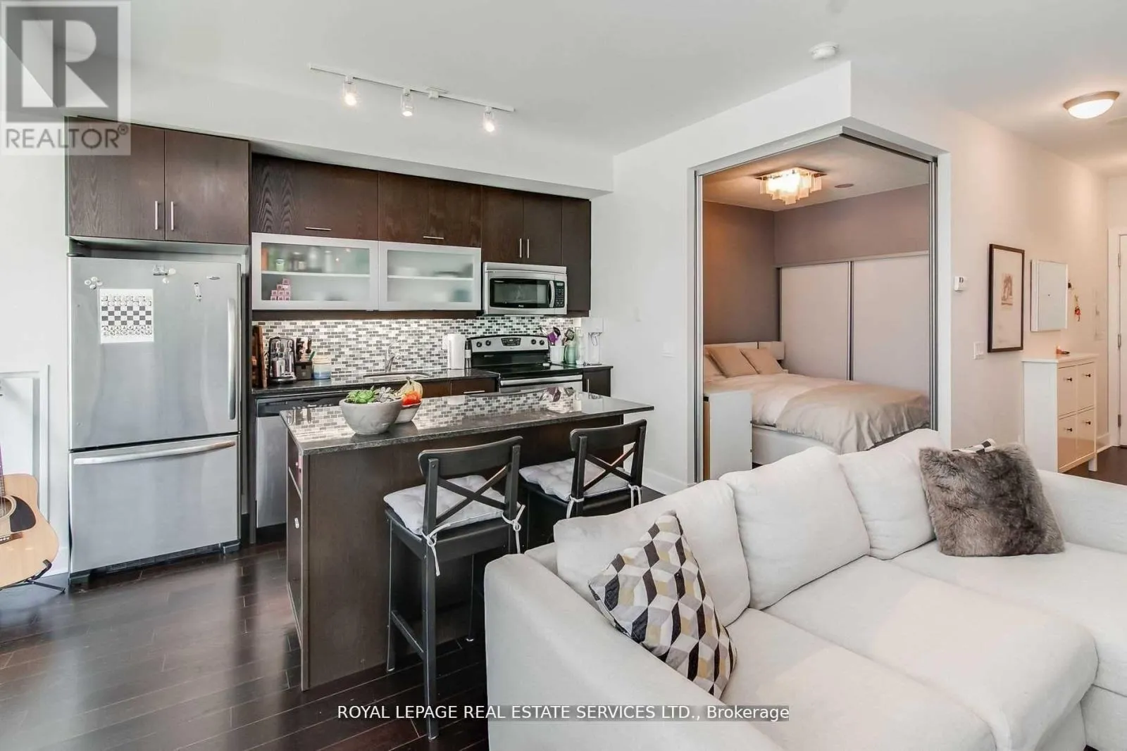 Cross Streets: Bathurst St & Lakeshore Blvd W. ** Directions: GPS. Welcome to 90 Stadium Road, also known as Quay West at Tip Top a boutique, design-forward residence perfectly situated along Toronto's scenic waterfront. This beautifully appointed open-concept suite offers a seamless blend of modern finishes and thoughtful design. The kitchen is equipped with stainless steel appliances, granite countertops, an undermount sink, custom backsplash, under-cabinet lighting, and a large centre island with a breakfast bar. Floor-to-ceiling windows in the combined living and dining area flood the space with natural light and provide a walk-out to a private balcony that overlooks a tranquil Zen garden. The primary bedroom features sliding frosted privacy doors, a triple closet, and a sleek ensuite with a glass-door shower, custom tub surround, and elegant tile flooring. Built by Monarch Group and designed by the award-winning Architects Alliance, Quay West at Tip Top is a 23-storey luxury condominium that offers a boutique living experience. Residents enjoy an impressive array of amenities, including a 24-hour concierge, fully furnished guest suites, a car wash bay, a spa with sauna, whirlpool, and rinsing showers, a state-of-the-art fitness centre with an aerobic area, a cyber cafe with fireplace, billiards room, theatre, party room with catering kitchen, and a beautifully landscaped courtyard. The building is located in the Fort York neighbourhood, steps from the lake, the Martin Goodman Trail, yacht clubs, parks, and marinas. With the TTC and Porter Airport nearby, and easy access to groceries, shops, cafes, and some of the city's best restaurants, 90 Stadium Road offers the perfect balance of peaceful waterfront living and vibrant urban convenience. (id:27476)