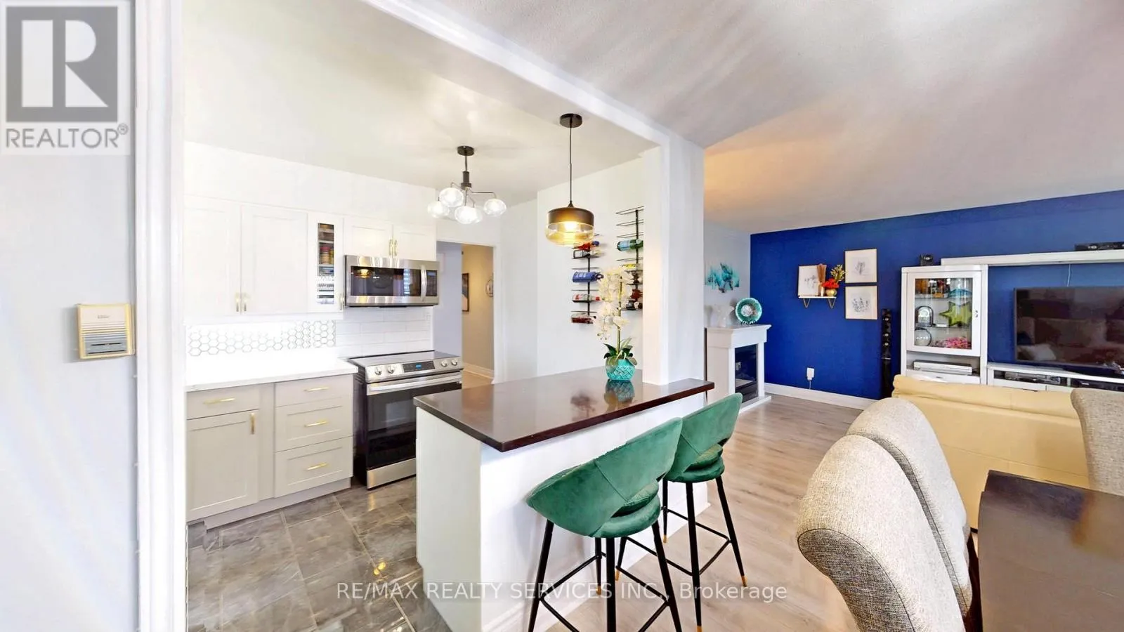 Rathburn Rd/The West Mall/ Burnhamthorpe Rd Welcome to Suite 1219! This beautifully renovated & freshly painted 3-bedroom, 2-bathroom corner suite offers an impressive 1,328 sq. ft. of modern, open-concept living with 1 underground parking space included. Featuring neutral wide-plank laminate floors throughout, this bright & airy suite is filled with lots of large windows that flood the living & dining area with natural light perfect for entertaining or relaxing in style. The updated eat-in kitchen features white cabinetry with under-cabinet lighting, a stylish backsplash, quartz countertops, stainless steel appliances, and a convenient breakfast bar. All three bedrooms are generously sized with consistent flooring, while the primary suite offers a double-door closet & private 2-piece ensuite. Additional highlights include side-by-side laundry, a large in-unit storage room, and spacious foyer & hallways. Step onto your private balcony and enjoy north/east views. Maintenance fees include Bell cable/internet, water, heat, hydro, A/C, and access to excellent building amenities- outdoor pool, tennis court, gym, sauna, party room, visitor parking, and underground car wash. Ideally located with easy access to transit, highways, shopping, schools, medical centers, the airport, Centennial Park, and more. A must-see corner suite offering abundant natural light, comfort, convenience & incredible value! (id:27476)