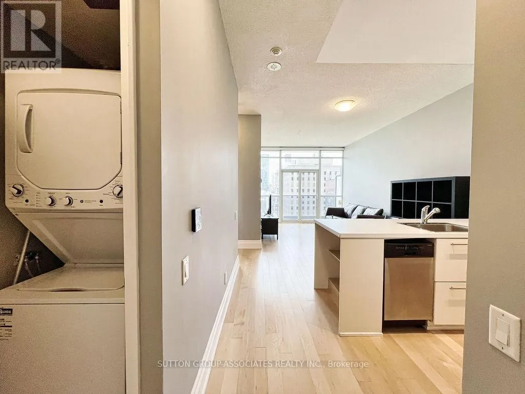 Yonge/Carlton This bright and beautifully maintained south-facing 1-bedroom + den condo offers 613 sq.ft. of thoughtfully designed living space, plus a 62.5 sq.ft. balcony with stunning panoramic views of the lake and city skyline. Located on the only floor in the building with high ceilings, this rare unit is filled with natural light through floor-to-ceiling windows and features recent upgrades including engineered hardwood floors and a renovated bathroom. The modern kitchen is equipped with stainless steel appliances, while the spacious den easily functions as a home office. Situated in a highly sought-after building at Yonge & Carlton, residents enjoy premium amenities including a 24-hour concierge, indoor pool, sauna, gym, rooftop terrace with BBQs, internet lounge, and visitor parking. Steps from College Station, streetcars, U of T, TMU, hospitals, shops, cafes, and restaurants, this is a fantastic opportunity for first-time buyers or investors looking for a stylish, move-in-ready home in the vibrant heart of downtown Toronto. (id:27476)