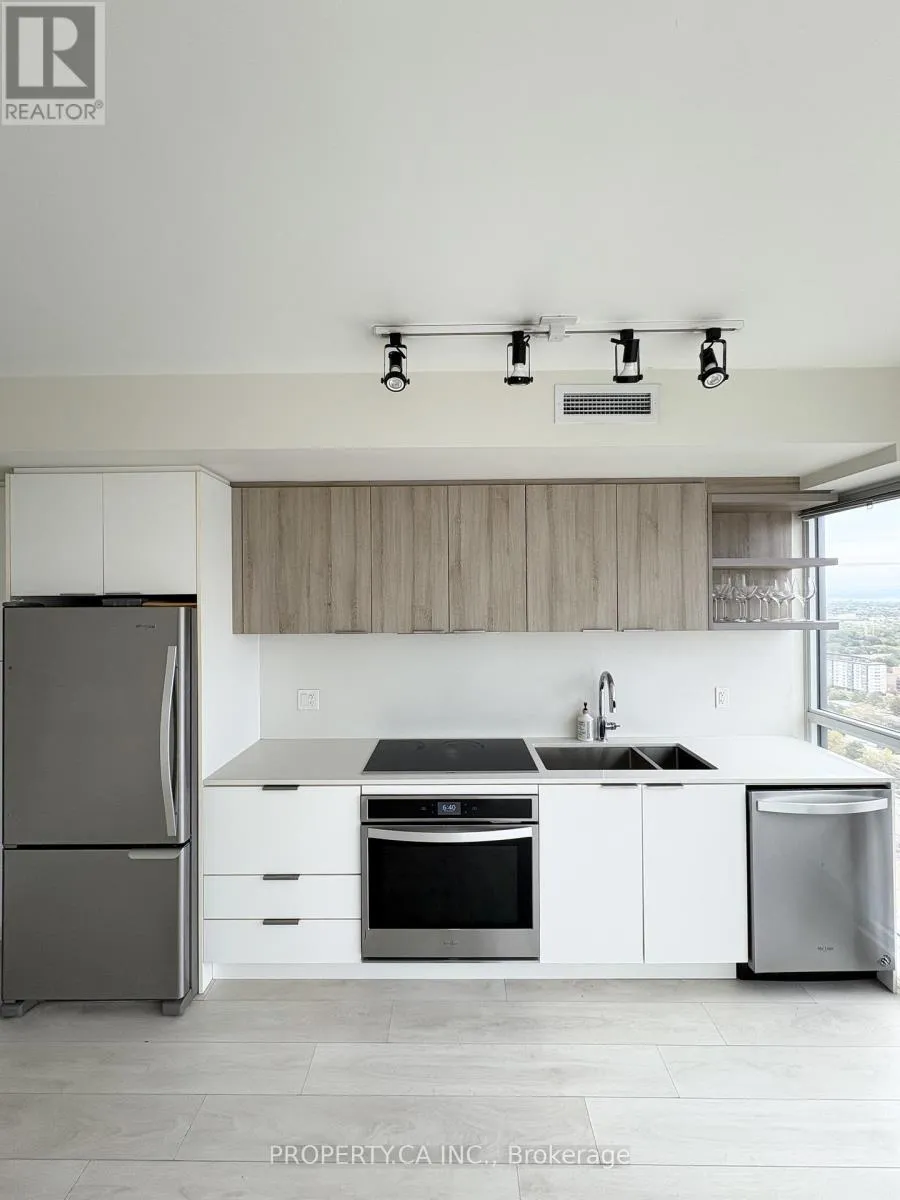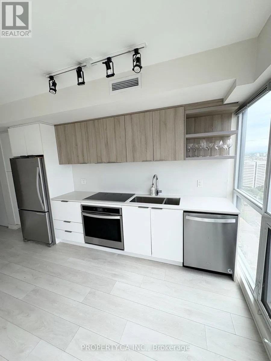 Don Mills & Eglinton Welcome to this bright, southwest-facing corner unit at Sonic Condos. Boasting 2 spacious bedrooms, 2 full bathrooms, and a well-laid-out 737 sq ft interior, this home is filled with natural light all day long. Enjoy stunning sunset views through floor-to-ceiling windows, a private balcony, and the comfort of included parking and locker. Located in an ultra-convenient area, just steps to the LRT and TTC, and minutes from Shops at Don Mills, Costco, Real Canadian Superstore, restaurants, and more. This is a fantastic opportunity for end-users and investors alike. Don't miss your chance to own this rare gem. (id:27476)