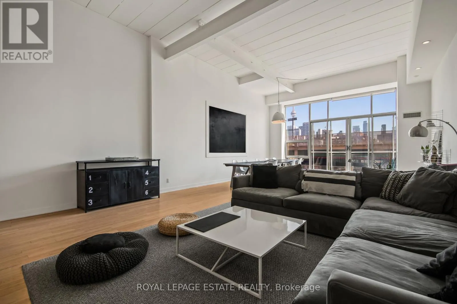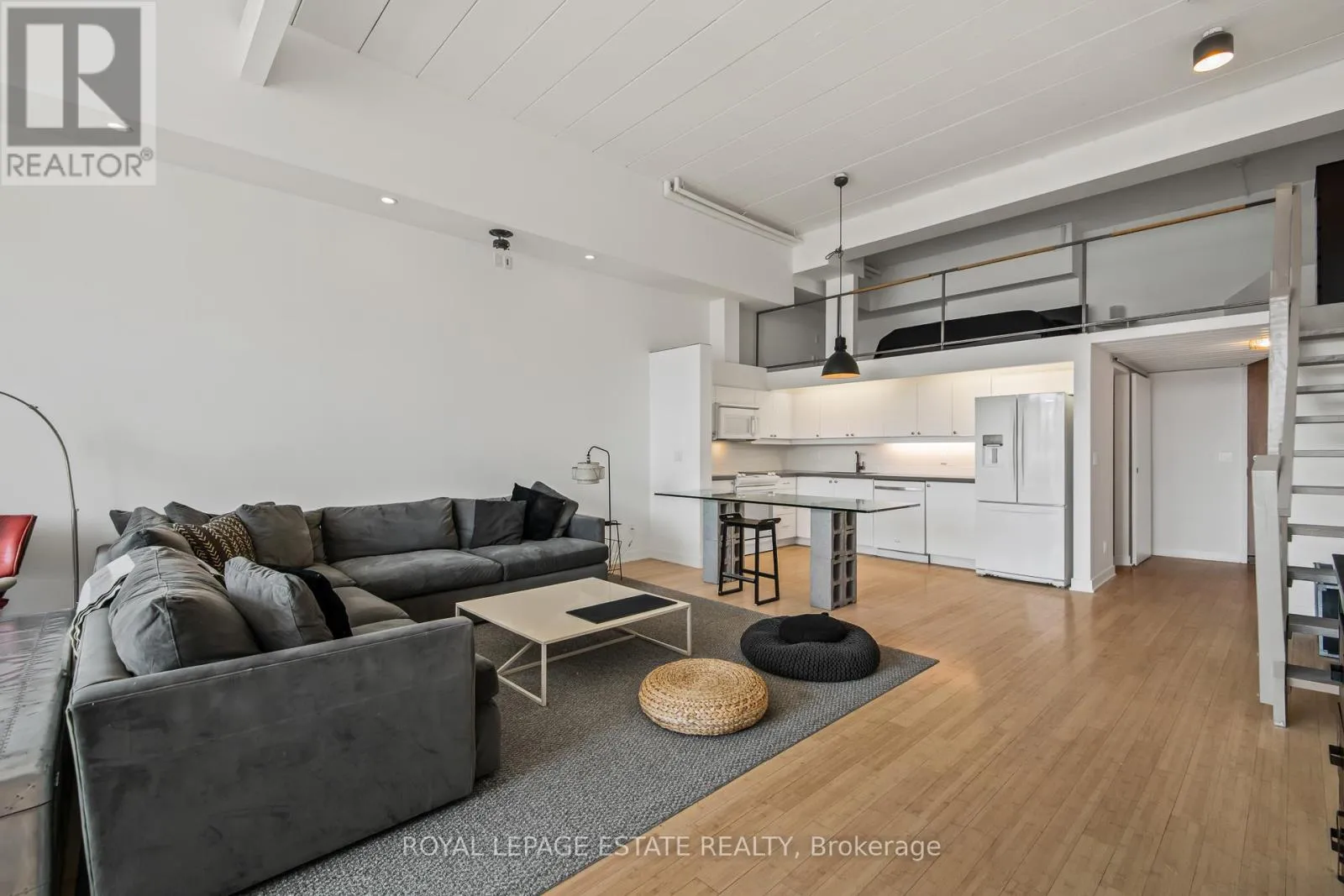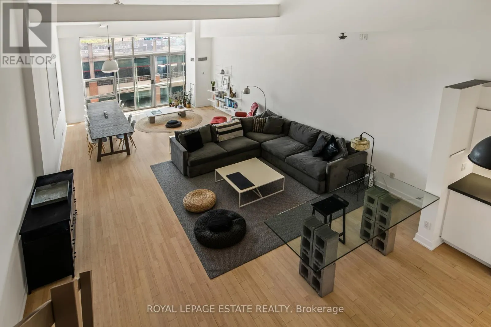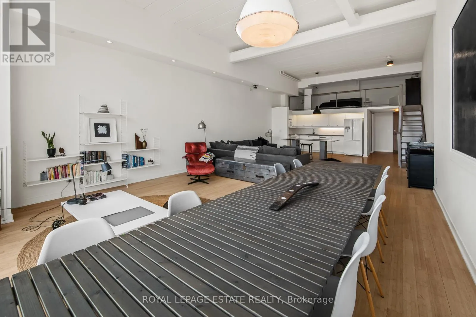 Spadina & College Welcome to Kensington Market Live/Work Lofts. Suite 301 is a magnificent south facing authentic 2 storey hard loft with unparalleled aesthetic grandeur. Possessing more than 1000 square feet, sprawling 13' + ceilings, dramatic wall to wall windows and Juliette balcony. Features include an open concept kitchen with ample storage, spa-like bath with ensuite laundry, hardwood floors throughout and a generous bedroom mezzanine level that spans entire width of the unit. The space is awash in sunlight, has cityscape views and has been meticulously curated. This genuinely expansive canvas is rarely found and hypnotising upon entry; personal design possibilities are limitless. The size and scale of the space are truly awe inspiring allowing for bold choices and endless configurations. This is a rare opportunity to fully realise your creative vision in a low turnover 7 storey boutique building in the true heart of Kensington market. The neighbourhood is vibrant, alive with a deep rooted sense of community. Every conceivable resource and amenity are steps away; shops, restaurants, TTC, schools, museums. Walk and Bike score of 100, no need to be hassled by driving. Building amenities include a lovely courtyard with picnic area and large party room. This space is dreamy and not to be missed. parking avail to rent in building and monthly permitted parking available at Green P across the street at discounted rate. (id:27476)