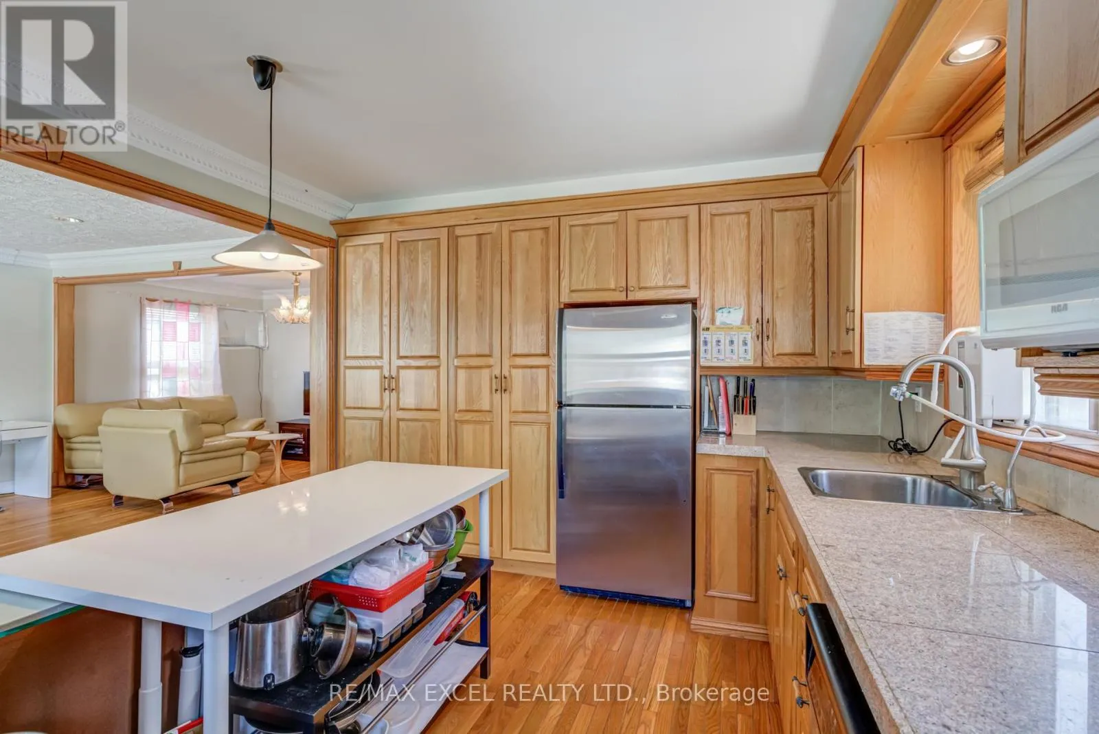 Islington / The Queens Way Welcome to this beautifully renovated bungalow offering 1,450 sq. ft. of thoughtfully designed main floor space plus a fully finished basement. Originally a 3-bedroom home, the layout has been reimagined into two oversized bedrooms and an extended, modern kitchen creating a bright, open, and functional flow ideal for everyday living. The entire basement features heated floors and includes two separate entrances, a second kitchen, two bathrooms, and a large open area. With this flexible design, the basement can easily be divided into two separate units, maximizing rental income potential or serving as in-law accommodations. Set on a wide lot in a rapidly growing Etobicoke neighbourhood, this versatile property is located just minutes from Humber College, major transit routes, Hwy 427/QEW, Sherway Gardens, and top schools. Whether you're looking to move in, invest, or rebuild, this home offers flexible options and exceptional redevelopment potential. (id:27476)