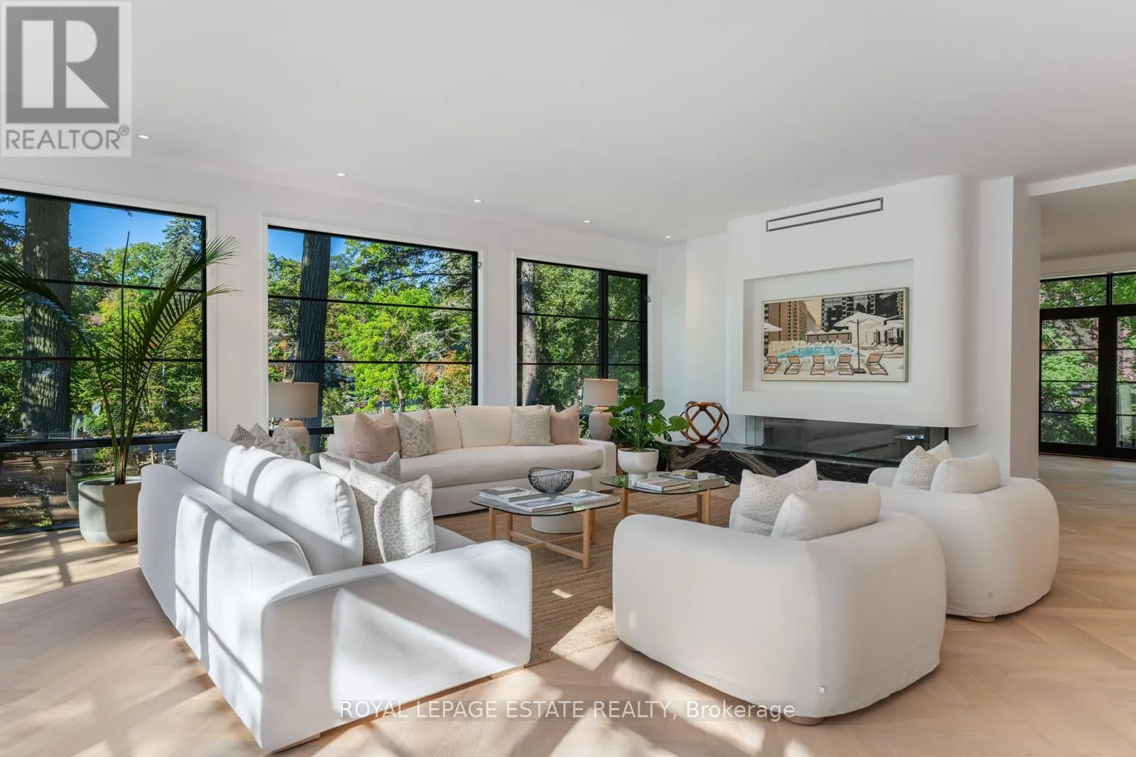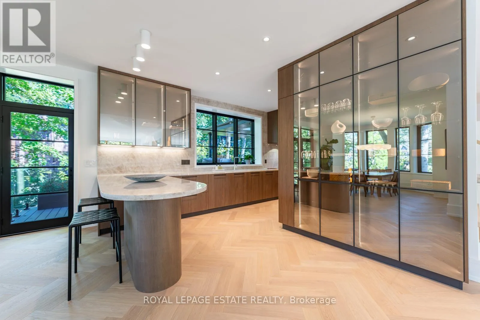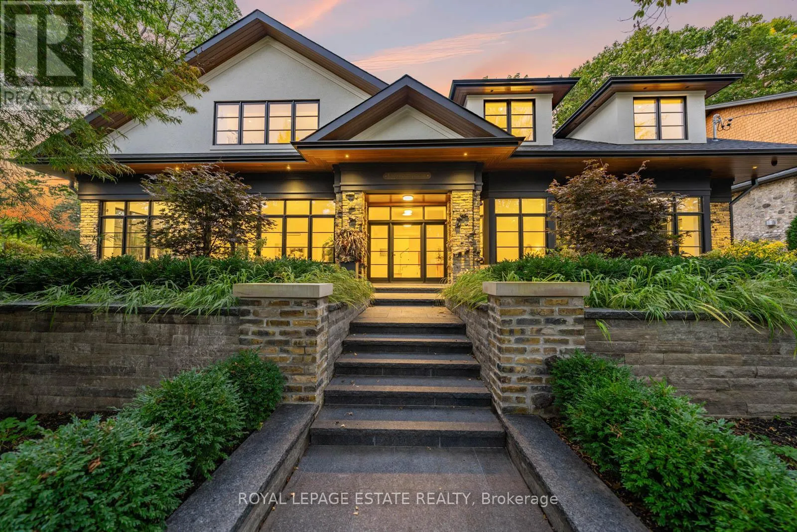 Cross Streets: Queen St E & Glen Manor Dr. ** Directions: Just north of Queen St E, and east of Ivan Forrest Gardens. Completely restored and reimagined, Longwood House is a landmark estate in a coveted, private pocket of The Beach. Once the summer retreat of a 19th-century lumber baron, this iconic residence now stands as a masterful blend of historic grandeur and art-deco sophistication. Commanding nearly half an acre across two lots, 8 Crown Park Road sits privately perched at the end of a quiet cul-de-sac, surrounded by the lush beauty of Ivan Forrest Gardens and overlooking Glen Manor Drive and the Glen Stewart Ravine. Inside, the scale is breathtaking with three full levels, seven walkouts, and over 8,000 sq. ft. of living space (Main: 2,871 sq. ft. | 2nd: 2,425 sq. ft. | Lower: 3,074 sq. ft.). Every inch has been meticulously rebuilt with timeless craftsmanship and curated materials sourced from around the world: imported tile from Spain and South America, alabaster lighting in the living room, pantry, and bar, and three custom gas fireplaces wrapped in bespoke marble. The grounds are a private oasis. Over $1M in landscaping includes restored original brick (including rare clinker brick), solid wood soffits, a hydronic heated driveway, walkway, entry, and garage floor, a full-property irrigation system, Ebel stone retaining walls with granite caps, and an expansive rear terrace finished in black granite. Elegant, versatile spaces throughout offer both light and warmth from the stately foyer, sunlit dining room, and Scavolini millwork home office, to the gym, games' room, two wet bars, wine cellar, and in-law suite potential. With wall-to-wall windows framing lush ravine and garden views from every angle, Longwood House truly is The Crown of the Beach, your own private park in the heart of the city. (id:27476)