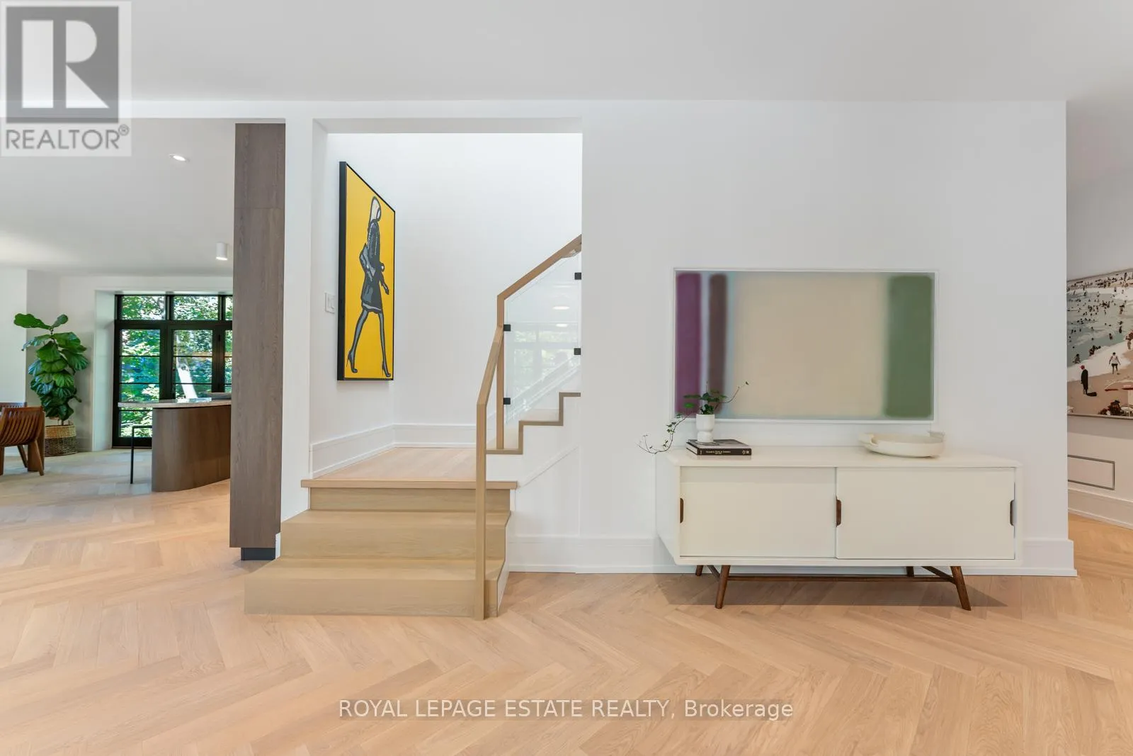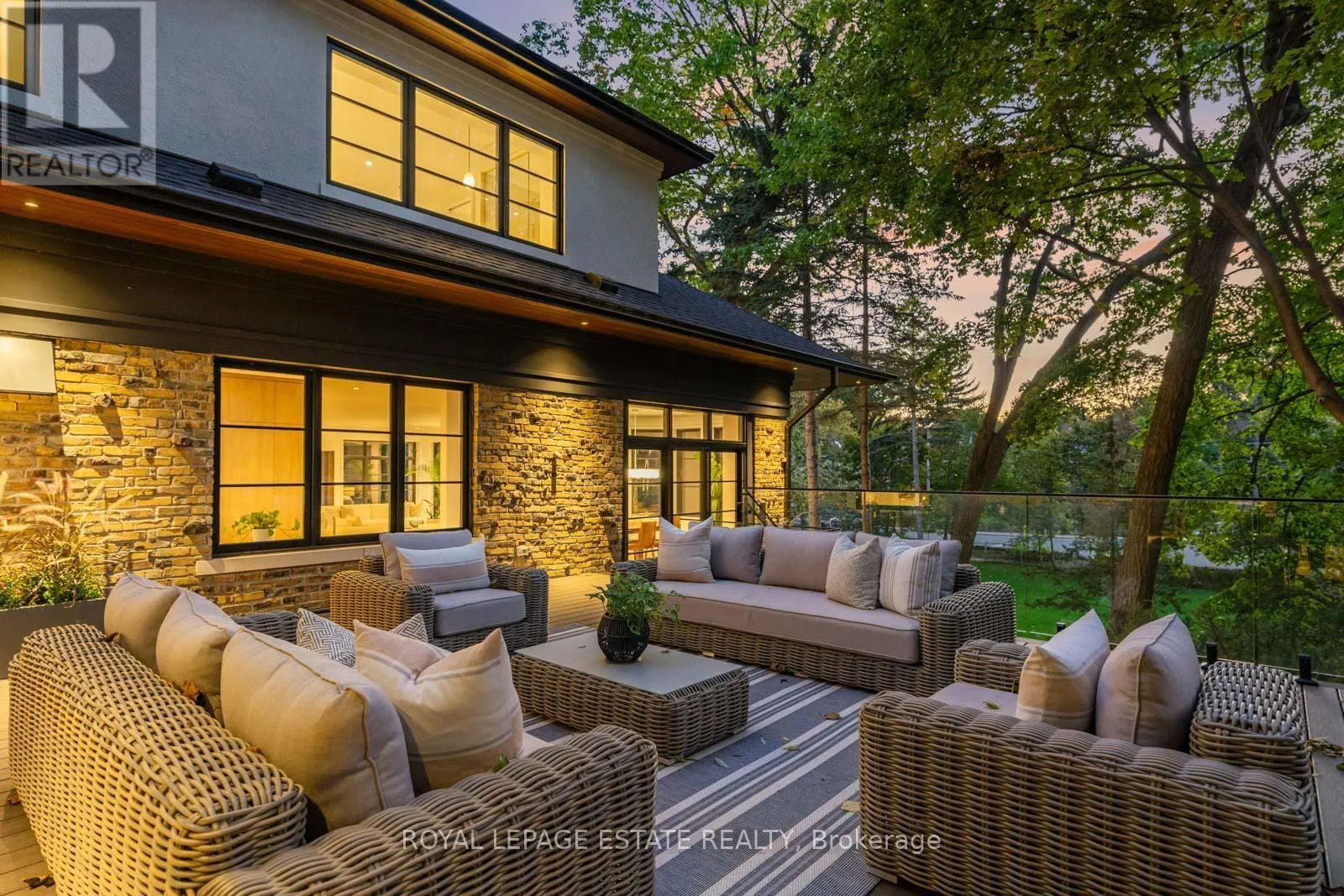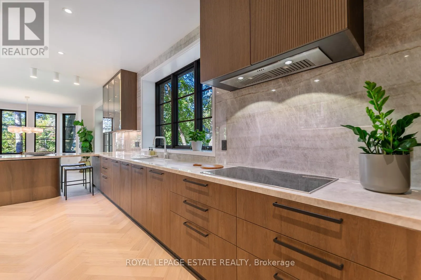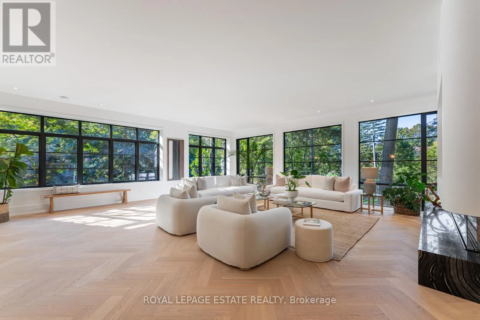 Cross Streets: Queen St E & Glen Manor Dr. ** Directions: Just north of Queen St E, and east of Ivan Forrest Gardens. Completely restored and reimagined, Longwood House is a landmark estate in a coveted, private pocket of The Beach. Once the summer retreat of a 19th-century lumber baron, this iconic residence now stands as a masterful blend of historic grandeur and art-deco sophistication. Commanding nearly half an acre across two lots, 8 Crown Park Road sits privately perched at the end of a quiet cul-de-sac, surrounded by the lush beauty of Ivan Forrest Gardens and overlooking Glen Manor Drive and the Glen Stewart Ravine. Inside, the scale is breathtaking with three full levels, seven walkouts, and over 8,000 sq. ft. of living space (Main: 2,871 sq. ft. | 2nd: 2,425 sq. ft. | Lower: 3,074 sq. ft.). Every inch has been meticulously rebuilt with timeless craftsmanship and curated materials sourced from around the world: imported tile from Spain and South America, alabaster lighting in the living room, pantry, and bar, and three custom gas fireplaces wrapped in bespoke marble. The grounds are a private oasis. Over $1M in landscaping includes restored original brick (including rare clinker brick), solid wood soffits, a hydronic heated driveway, walkway, entry, and garage floor, a full-property irrigation system, Ebel stone retaining walls with granite caps, and an expansive rear terrace finished in black granite. Elegant, versatile spaces throughout offer both light and warmth from the stately foyer, sunlit dining room, and Scavolini millwork home office, to the gym, games' room, two wet bars, wine cellar, and in-law suite potential. With wall-to-wall windows framing lush ravine and garden views from every angle, Longwood House truly is The Crown of the Beach, your own private park in the heart of the city. (id:27476)