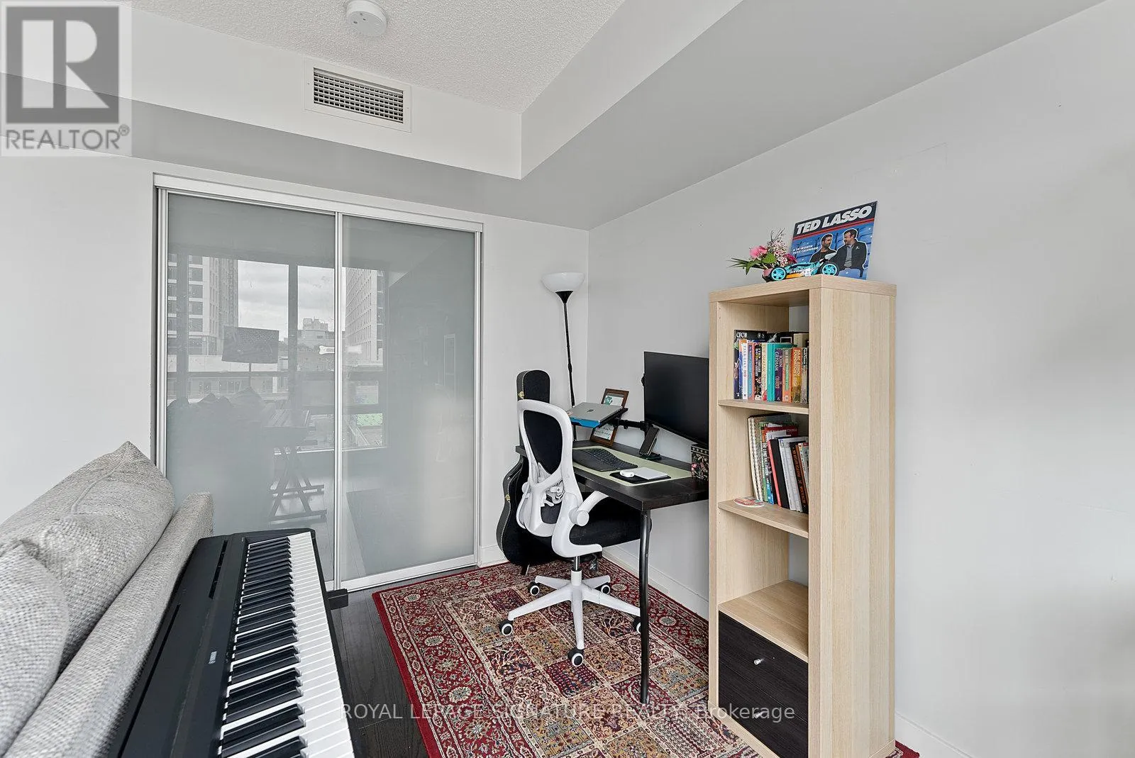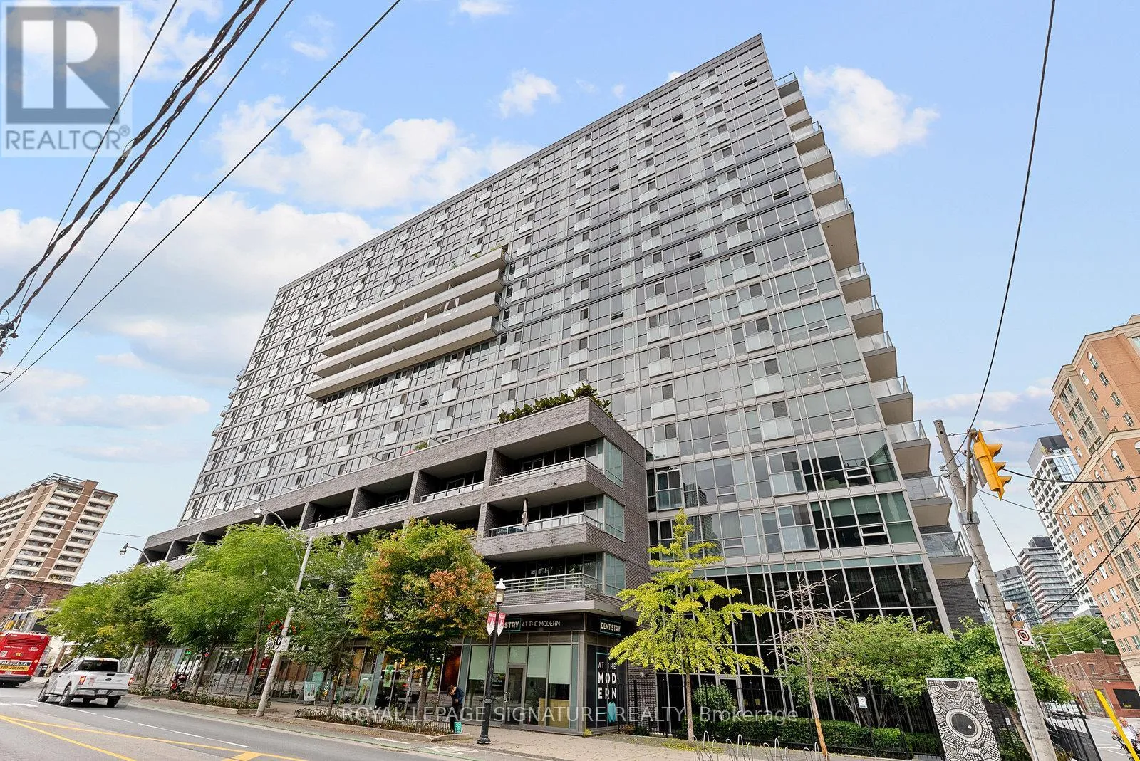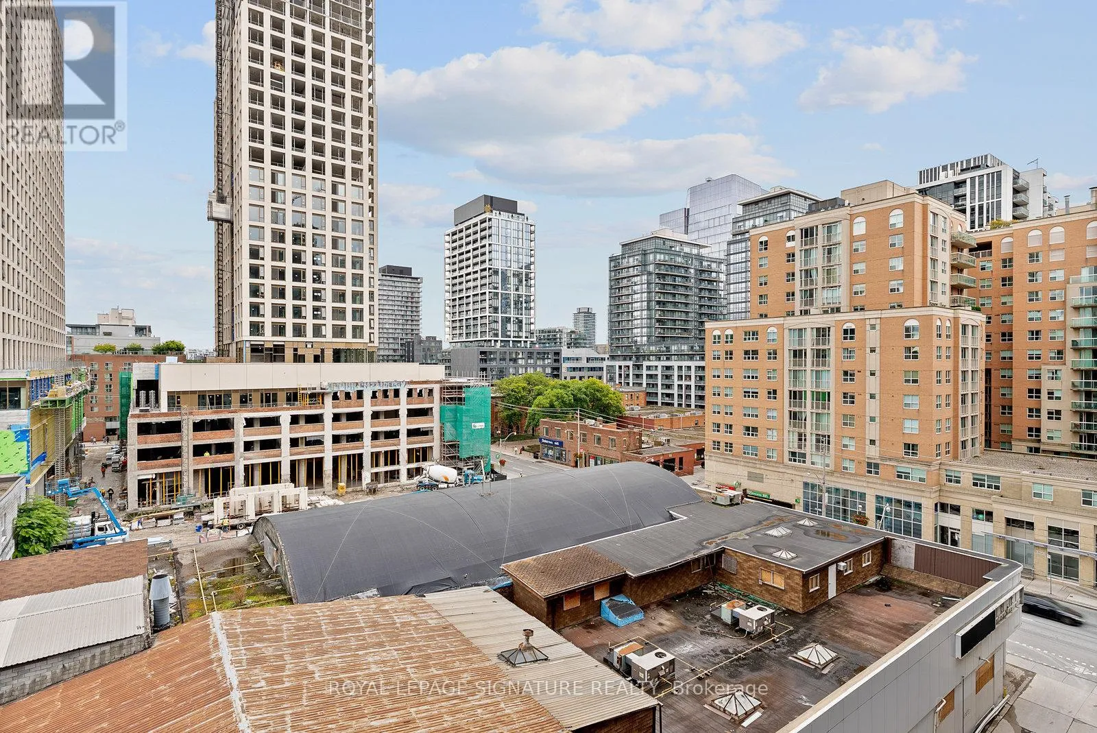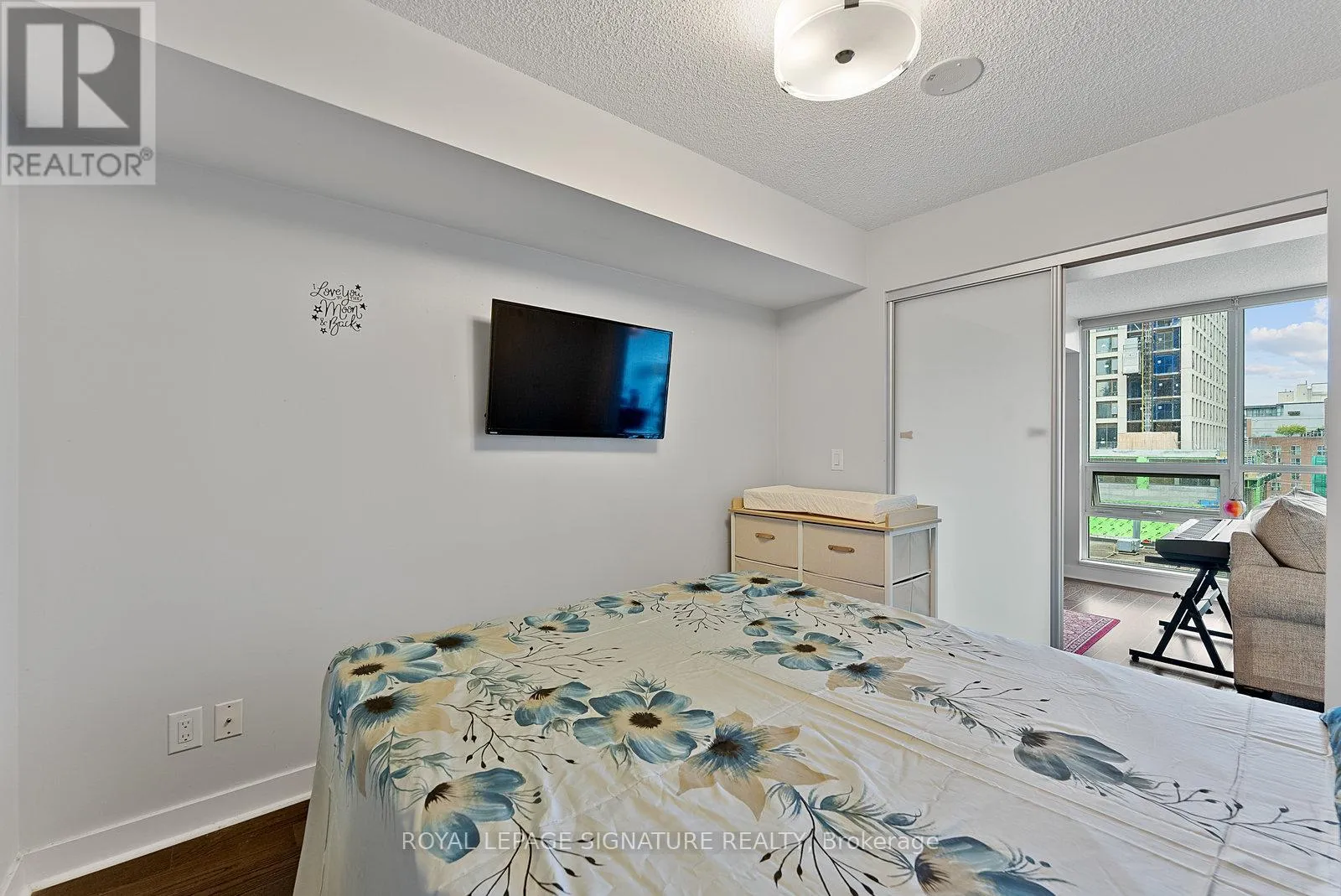 Richmond St / Sherbourne Welcome to Suite 718 at The Modern. Step into a bright and functional 1+den layout featuring a galley kitchen with stainless steel appliances overlooking the open-concept living area. The spacious living room is framed by floor-to-ceiling windows and a Juliette balcony, filling the space with natural light. The bedroom sits just off the living room with sliding glass doors and closet. Enjoy world-class building amenities including a rooftop garden with BBQ area, two plunge pools with cabanas, a party room, bar and billiards, fitness centre, yoga studio, steam room, 24-hour concierge, and visitor parking. Conveniently located with TTC at your doorstep and just a short walk to St. Lawrence Market and the Distillery District. (id:27476)