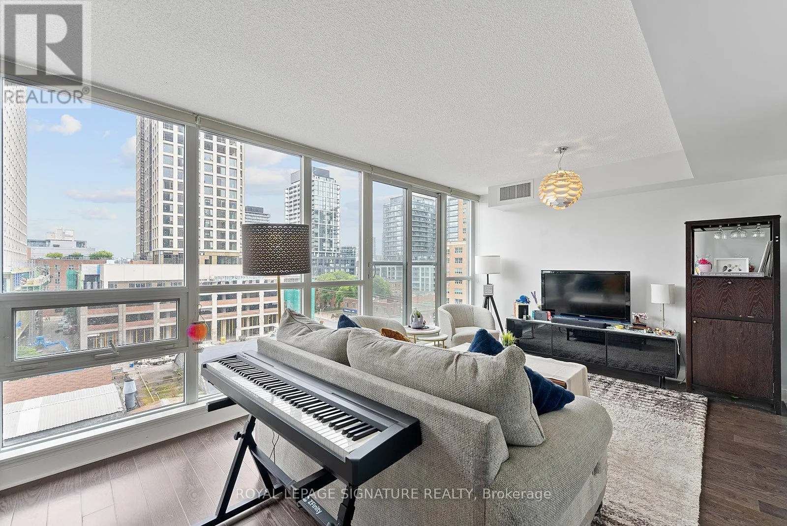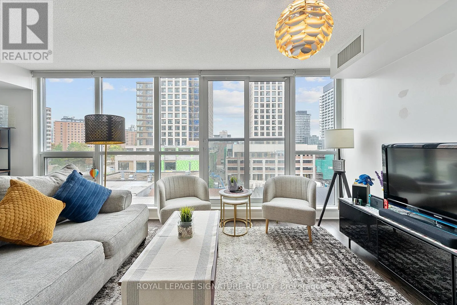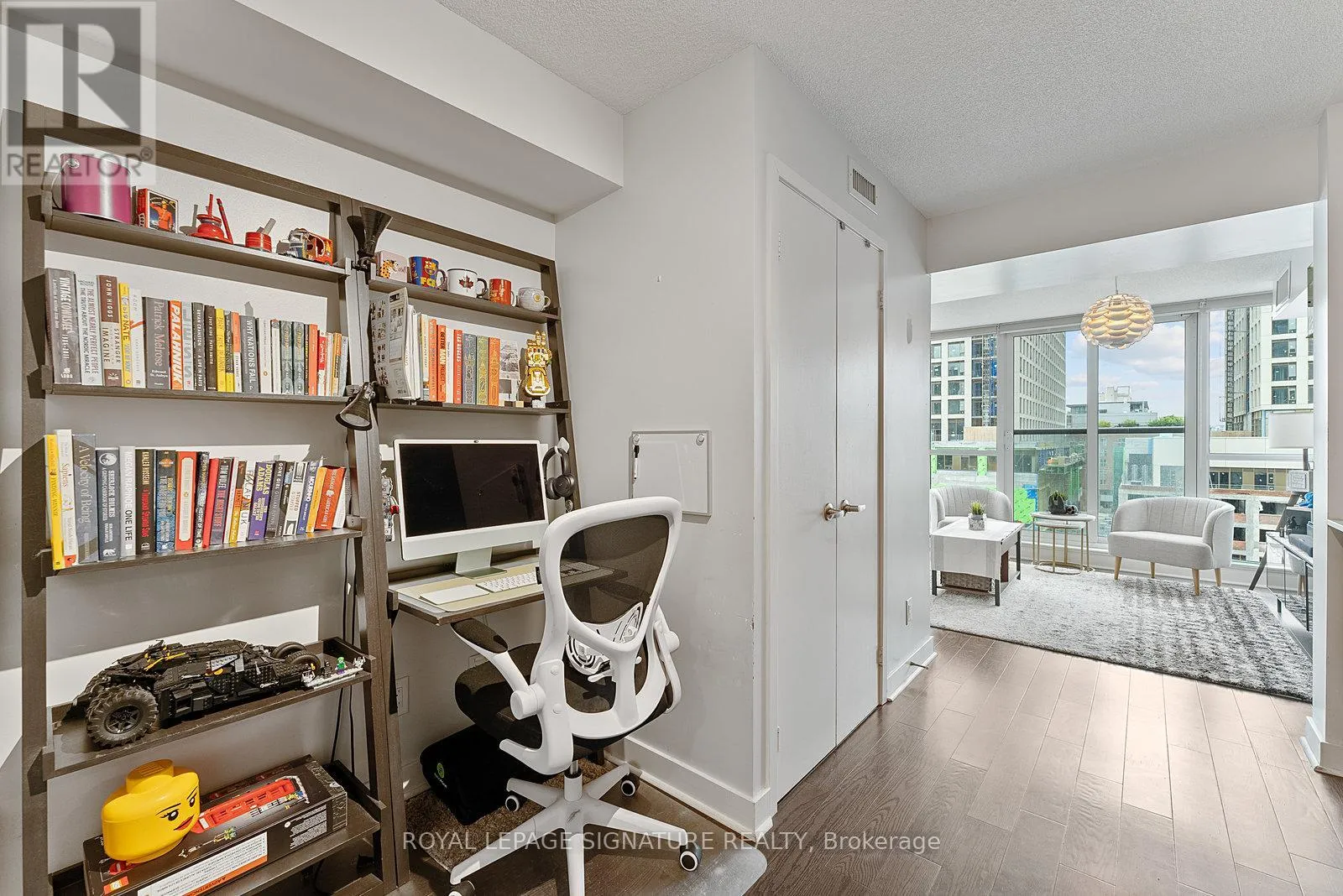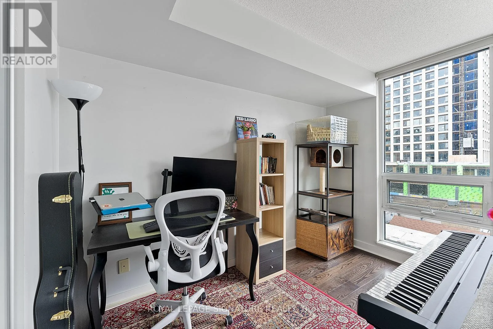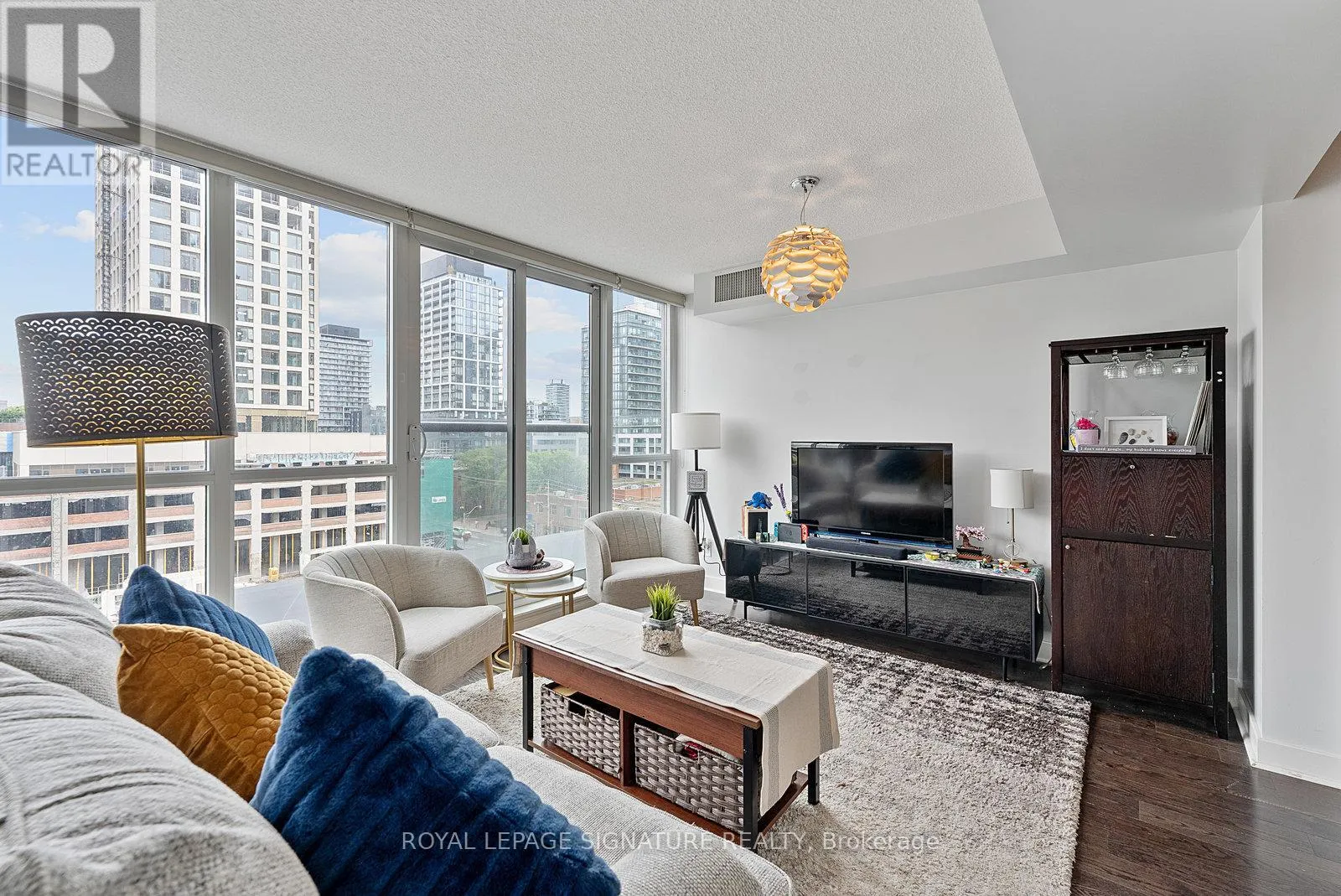 Richmond St / Sherbourne Welcome to Suite 718 at The Modern. Step into a bright and functional 1+den layout featuring a galley kitchen with stainless steel appliances overlooking the open-concept living area. The spacious living room is framed by floor-to-ceiling windows and a Juliette balcony, filling the space with natural light. The bedroom sits just off the living room with sliding glass doors and closet. Enjoy world-class building amenities including a rooftop garden with BBQ area, two plunge pools with cabanas, a party room, bar and billiards, fitness centre, yoga studio, steam room, 24-hour concierge, and visitor parking. Conveniently located with TTC at your doorstep and just a short walk to St. Lawrence Market and the Distillery District. (id:27476)