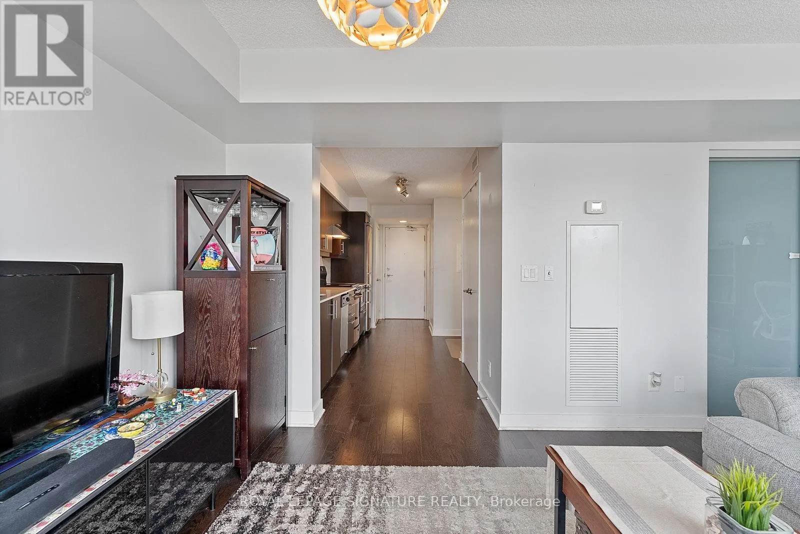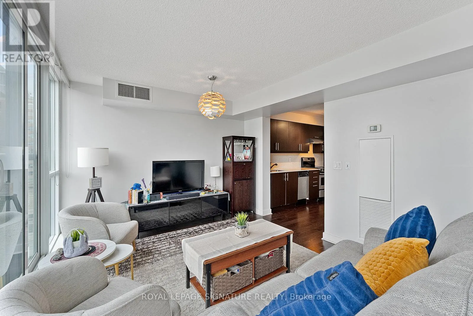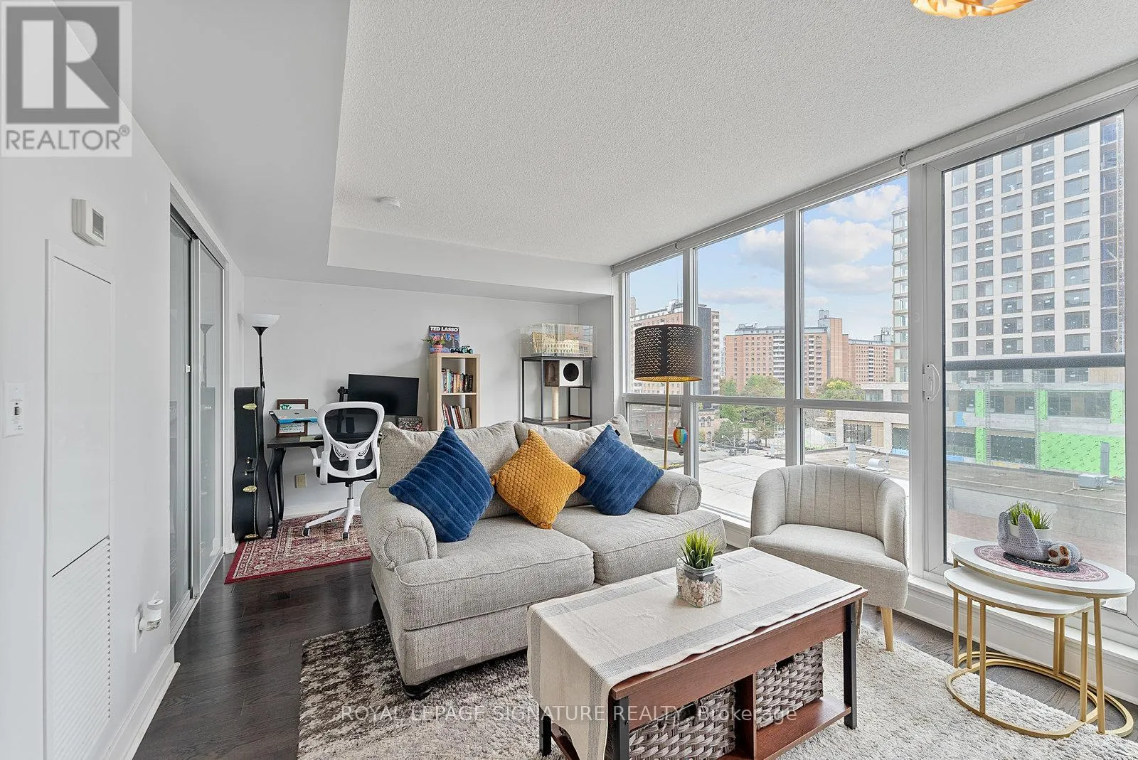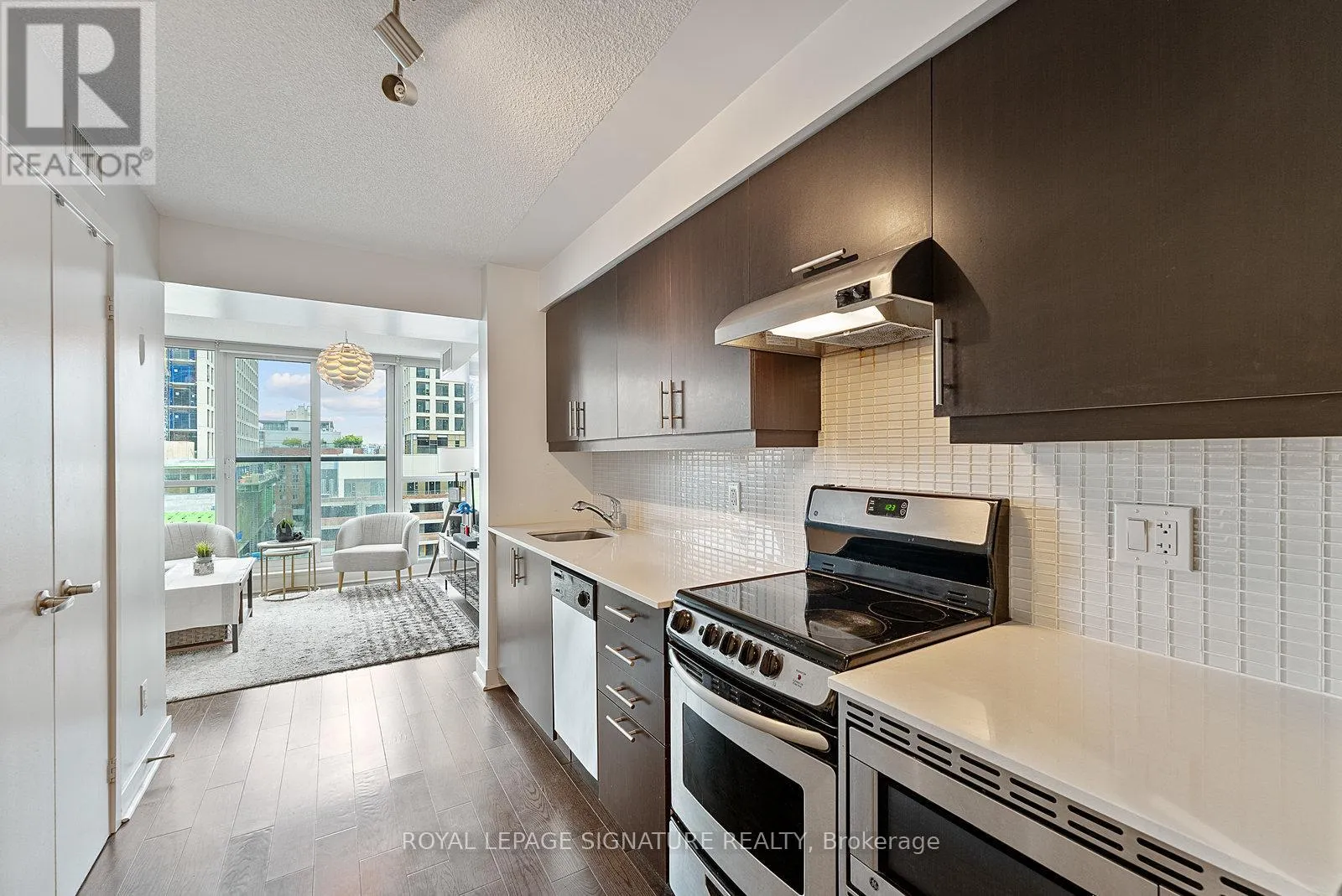 Richmond St / Sherbourne Welcome to Suite 718 at The Modern. Step into a bright and functional 1+den layout featuring a galley kitchen with stainless steel appliances overlooking the open-concept living area. The spacious living room is framed by floor-to-ceiling windows and a Juliette balcony, filling the space with natural light. The bedroom sits just off the living room with sliding glass doors and closet. Enjoy world-class building amenities including a rooftop garden with BBQ area, two plunge pools with cabanas, a party room, bar and billiards, fitness centre, yoga studio, steam room, 24-hour concierge, and visitor parking. Conveniently located with TTC at your doorstep and just a short walk to St. Lawrence Market and the Distillery District. (id:27476)