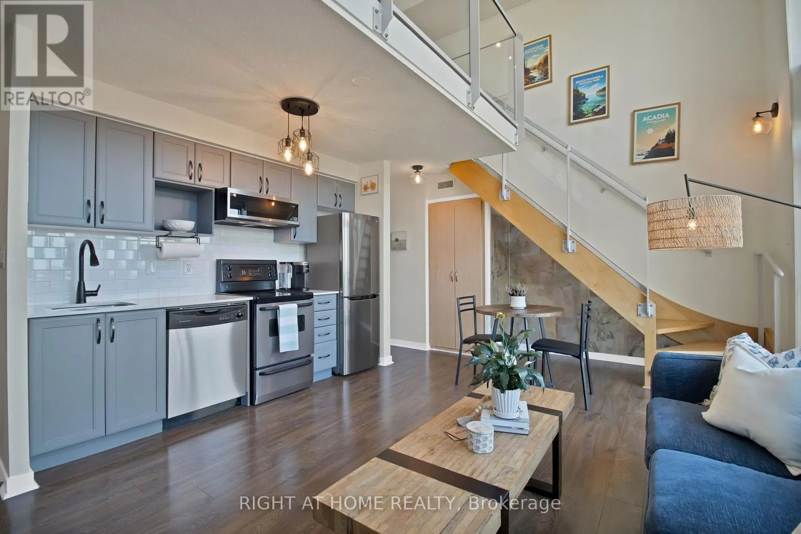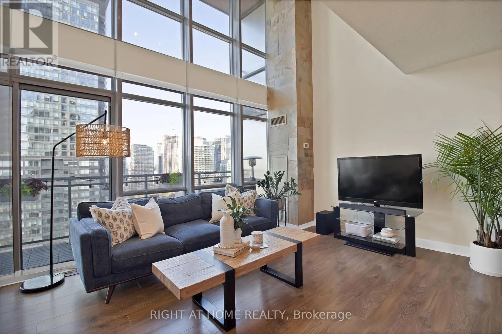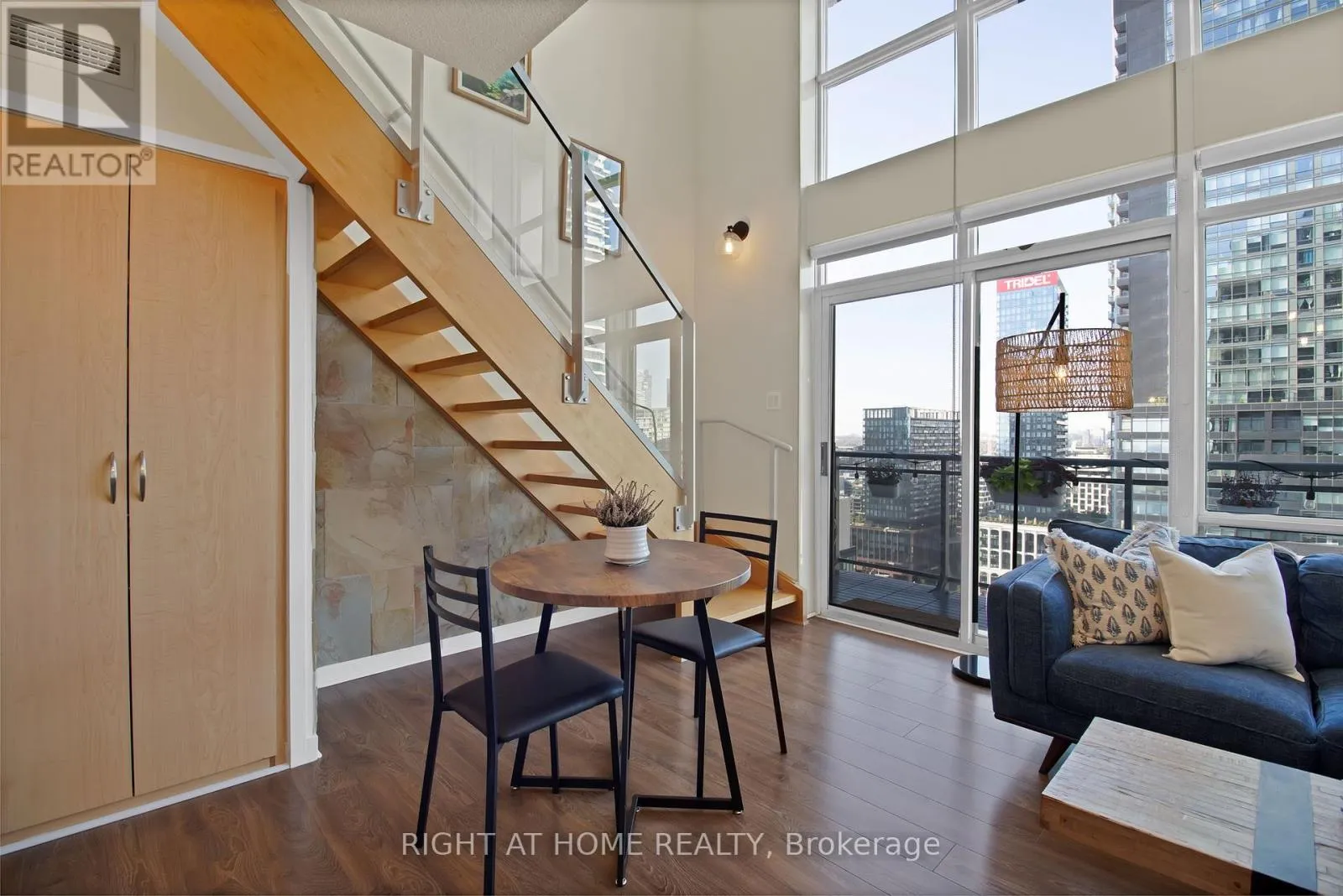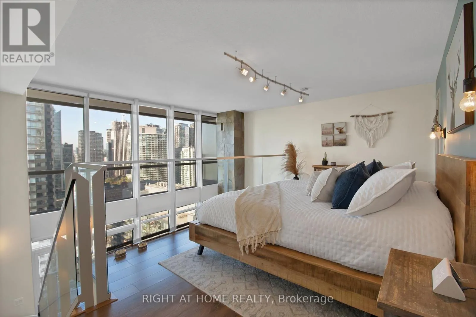 Cross Streets: Fort York Blvd/Spadina Ave. ** Directions: From Fort York, Turn into Brunel Ct. Entrance available at Fort York or Brunel. This upgraded, designer-inspired 2 bedroom with 2 bathroom urban 2 storey loft in the Waterfront Communities in Downtown Toronto is ideal for young professionals and small families seeking modern comfort, flexibility, and connection. Step inside to soaring double-height ceilings, a floating glass staircase, and floor-to-ceiling windows framing breathtaking city skyline and CN Tower views. The open-concept layout floods the space with light and creates a seamless flow from living to dining.The modern chefs kitchen features premium finishes and upgraded appliances part of the tens of thousands of dollars in updates that make this loft truly move-in ready. Enjoy morning coffee or an evening glass of wine on your private balcony overlooking the city. Upstairs, the loft-style primary suite is a bright, tranquil retreat with panoramic views, a walk-in closet, and in-suite laundry. The second bedroom is perfect for a child, guest, or dedicated home office. With top tier managers that keeps maintenance fees low for this building, you will also enjoy resort-style amenities including a fully equipped gym, indoor pool, hot tub, sauna, basketball court, games room, outdoor BBQ terrace, and a 27th-floor party lounge with skyline views. The on-site business centre gives you the perfect SECOND OFFICE ideal for meetings, calls, or quiet productivity away from home. A children's PLAYROOM allows for extra space for your children to enjoy and concierge service add even more security. LOCKER and SECOND PARKING rental option is available. Located steps to Sobeys, The Well, Financial District, King West Dining, Entertainment District, Rogers Centre, Waterfront trails, Canoe Landing Recreation Centre, Playground, Parks, Lake Ontario, and Union Station, with streetcar access at your door. Includes one owned parking space.Tens of thousands in upgrades. Flexible live/work design. Unmatched amenities.If you've been waiting for a downtown home that fits your lifestyle this is THE ONE for you! (id:27476)