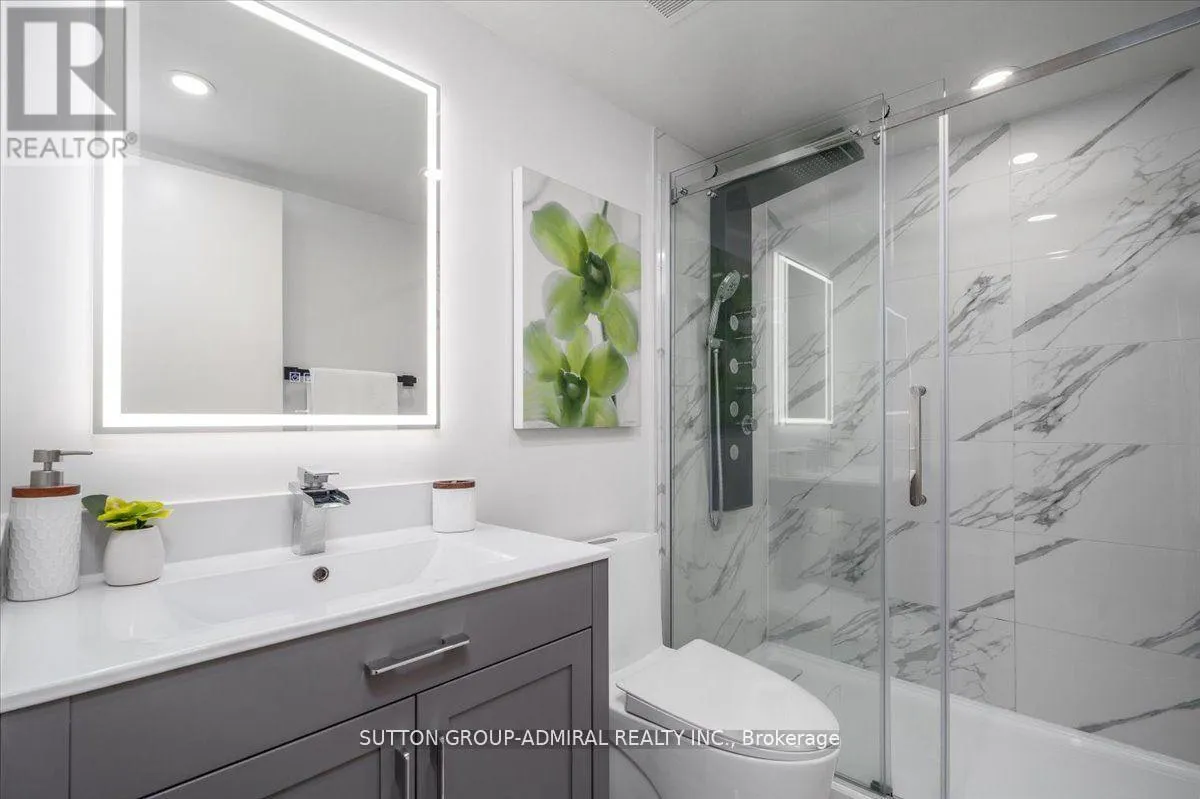 Bathurst Street and Steeles Avenue West (Torresdale Avenue) Step into elegance with this exquisite, fully renovated 2-bedroom + den, 2-bathroom condo in the prestigious North York community. Nestled amidst the lush, serene landscapes of G. Ross Lord Park, this meticulously upgraded 1,060 sq. ft. residence offers an unparalleled blend of sophistication and modern comfort. Designed with a seamless open-concept layout, the space is bathed in natural light, accentuating the rich vinyl flooring and carefully curated finishes.The gourmet kitchen is a chef's dream, featuring stunning quartz countertops, and backsplash,and top-of-the-line appliances (only 3 years new). The versatile den serves as the perfect home office, an inviting third bedroom, or a charming playroom. Indulge in the convenience of an en-suite locker, providing ample storage without compromising on style. Every detail has been thoughtfully designed to offer the perfect balance of luxury and functionality. The building offers excellent amenities including a gym, pool, sauna, ping pong and billiards room, with a bus stop to finch station commuting and outdoor activities are effortless plus the highly anticipated new Centennial library set to open in 2025. Combining pace, comfort and convenience this condo is a fantastic place to call home! (id:27476)