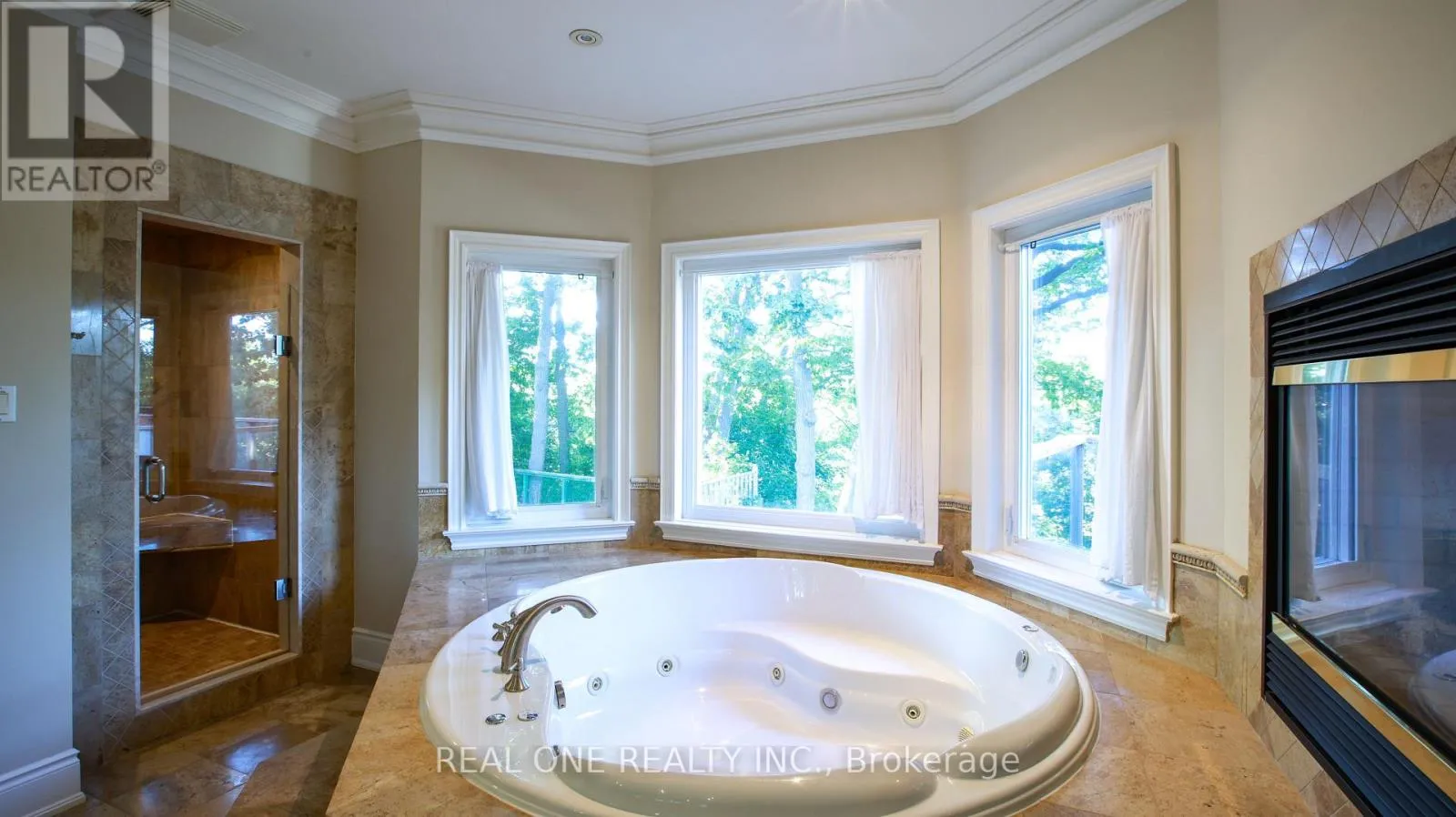Berry/Parklawn Experience Muskoka living in the heart of Toronto! This exceptional custom home backs directly onto the Humber River, offering rare privacy and tranquility surrounded by lush greenbelt views-just minutes from downtown.Designed with elegance and comfort in mind, the home showcases 11-ft ceilings, skylights, coffered details, pot lighting, hardwood floors, tumbled marble, and natural stone finishes throughout. The chef-inspired Italian kitchen features premium KitchenAid appliances and granite countertops.Enjoy versatile living spaces, including a main-floor office, a secondary family room, and a fully finished basement with an additional bedroom. Each bedroom offers its own ensuite, while the luxurious primary suite features a spa-style bath with a corner Jacuzzi overlooking the river and a private fireplace.Walkouts to three balconies provide stunning year-round views. Nestled on a quiet cul-de-sac with easy access to highways, transit, shopping, and the city core, this one-of-a-kind property combines luxury, seclusion, and a true cottage-like atmosphere-all within Toronto. EV charger included. (id:27476)