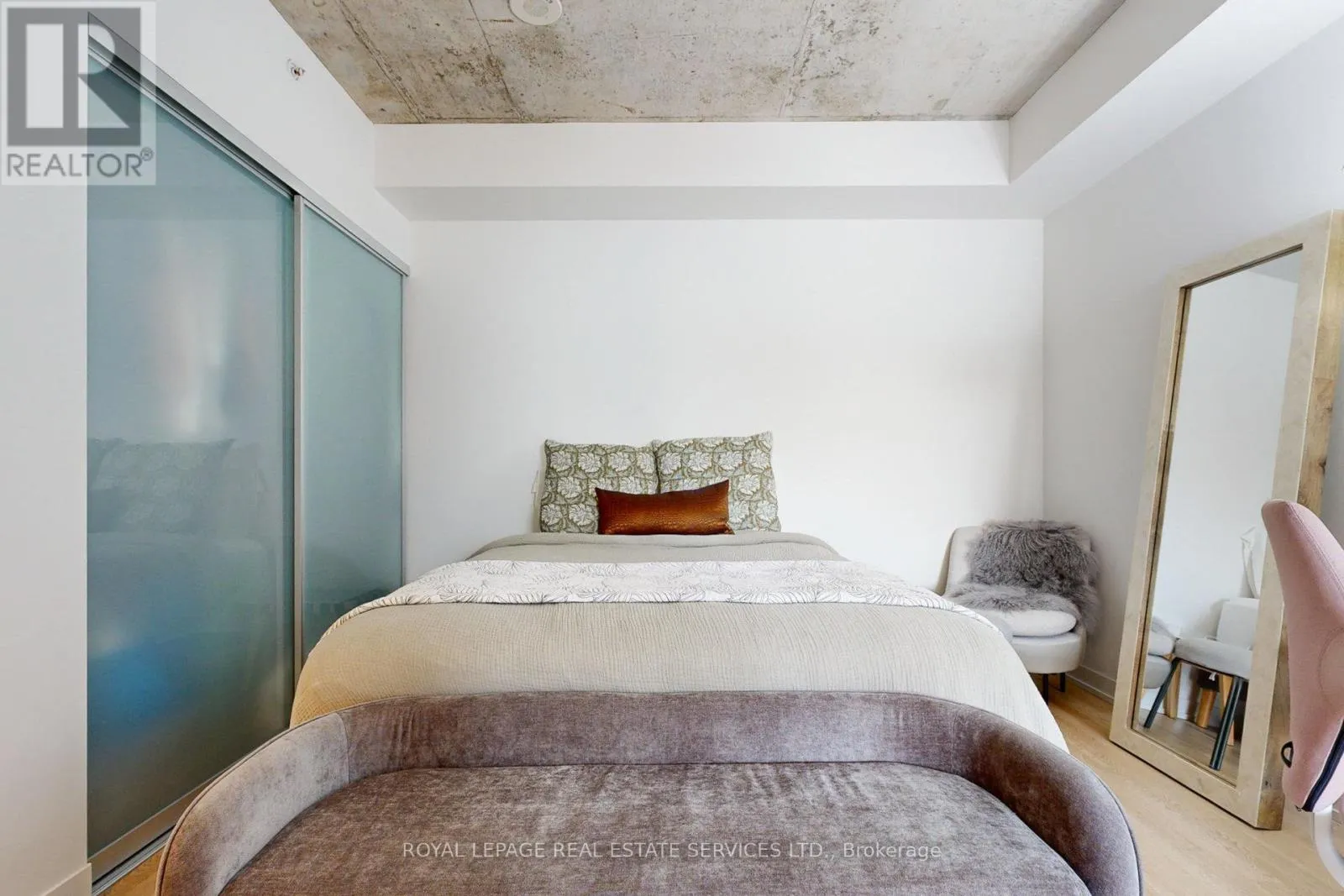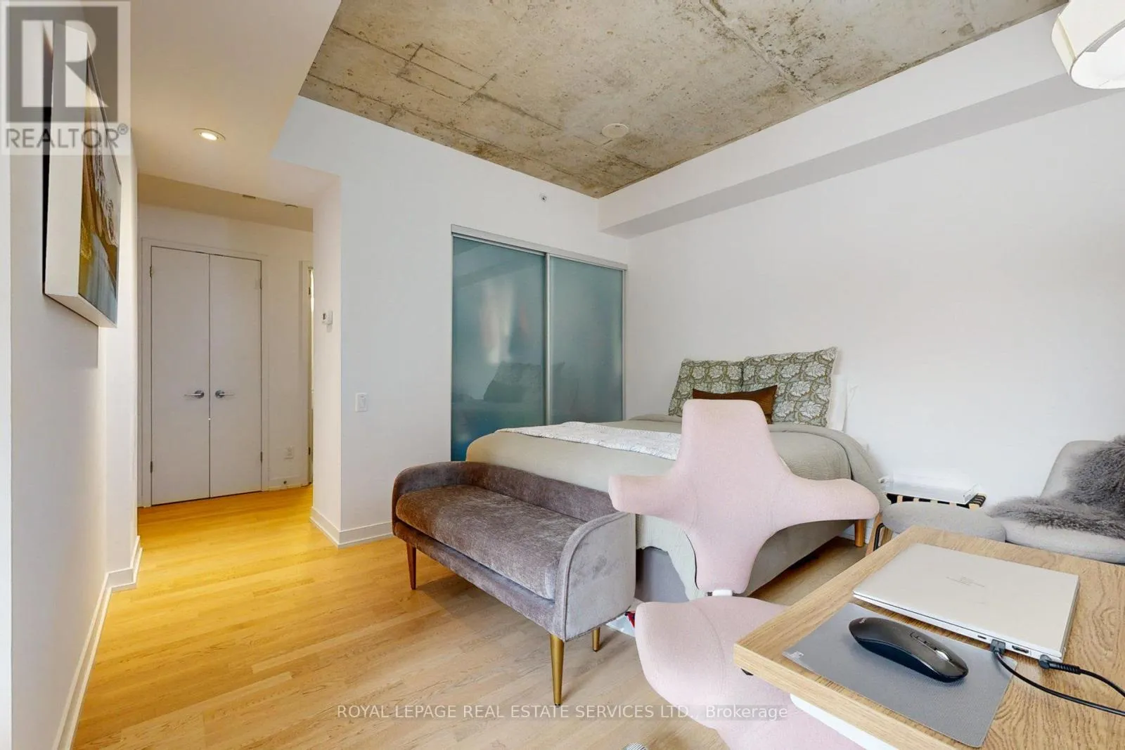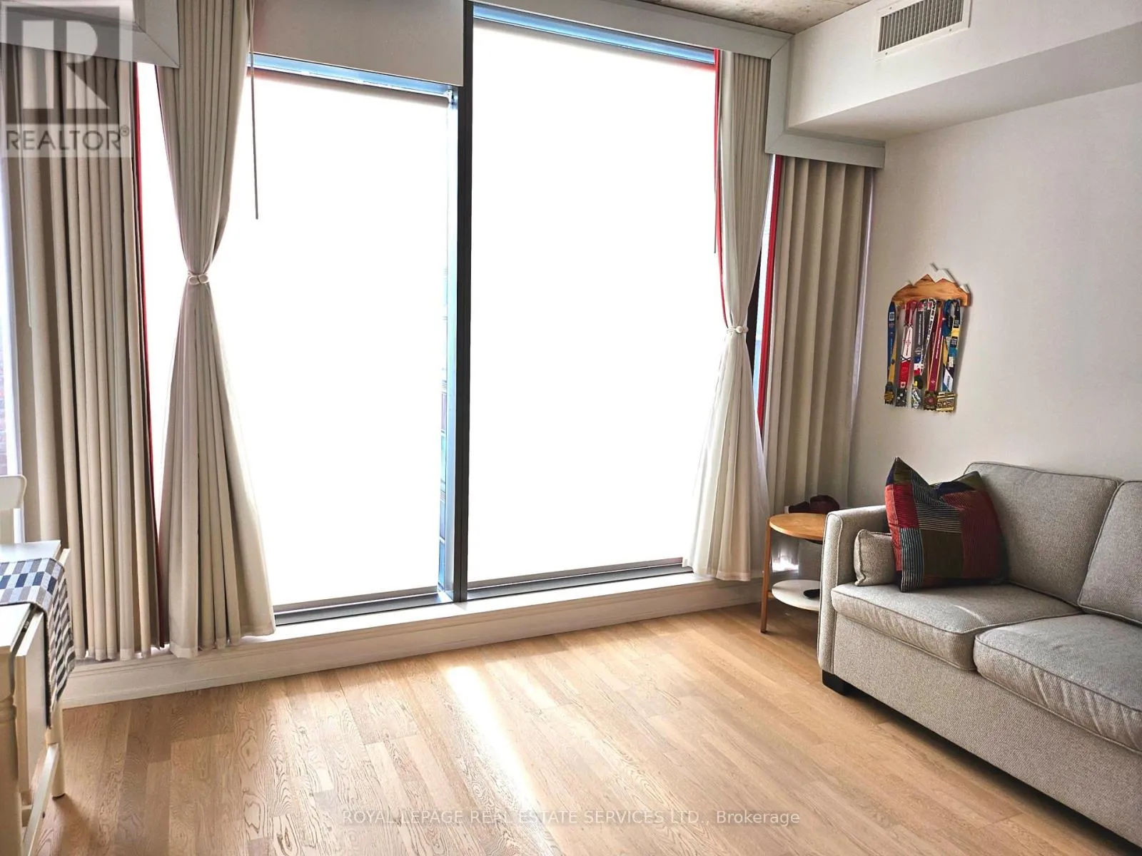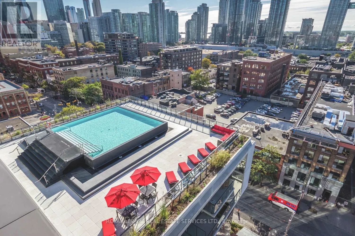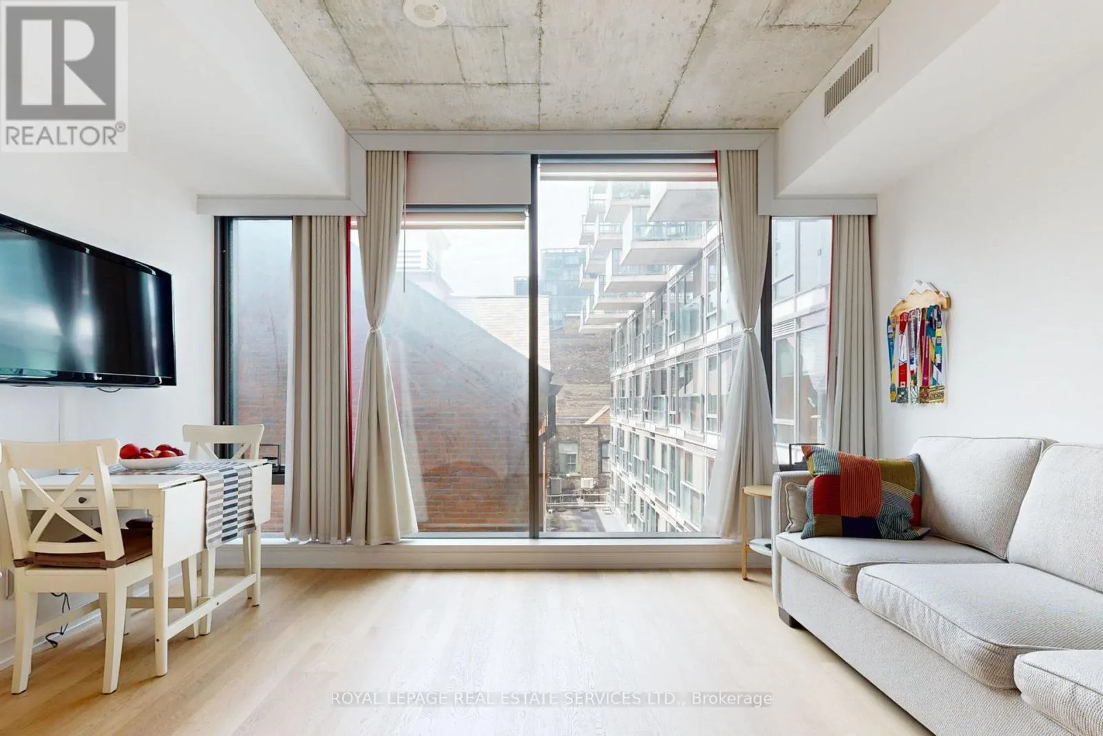 King & Bathurst Impeccably maintained, freshly painted 1-bedroom with a locker at the desirable Fashion House in the heart of King West. Loft style, with soaring exposed concrete ceilings, beautiful finishes and floor-to-ceiling windows bringing in ample West-facing light. Efficient layout, 531 sq ft., with a well-proportioned kitchen/living/dining space. Sleek, modern kitchen with stainless steel appliances including a built-in oven, electric radiant cooktop, range hood, countertop microwave, refrigerator and panelled dishwasher. The bedroom has a large closet with organizers and has been enclosed with a sliding frosted-glass door (new photos coming soon). Well-managed, boutique building with top-notch amenities: gym, 24 hr concierge, party/meeting room, and a rooftop infinity pool with incredible views of the downtown skyline! Ideal location on King West, close to transit, top restaurants, trendy bars and shopping. Well-established maintenance fees include water and a storage locker. This unit has been very well cared for by its owner. Excellent value in a superb building! (id:27476)