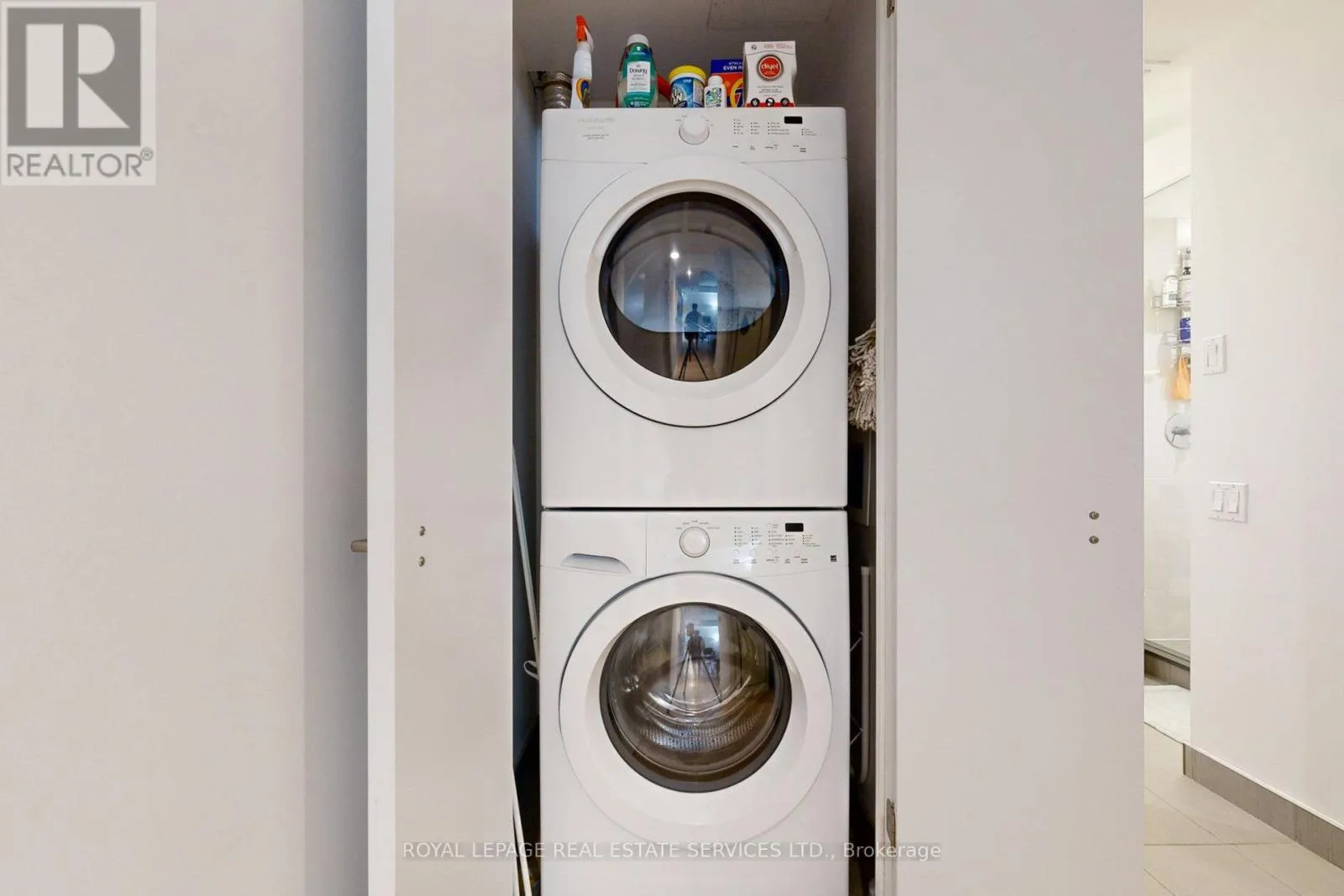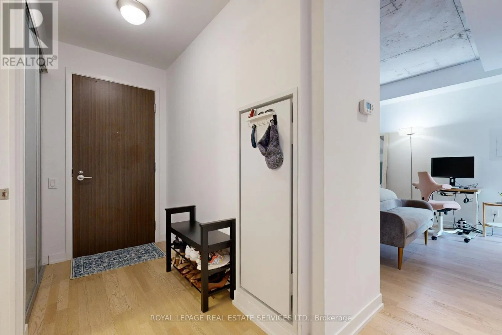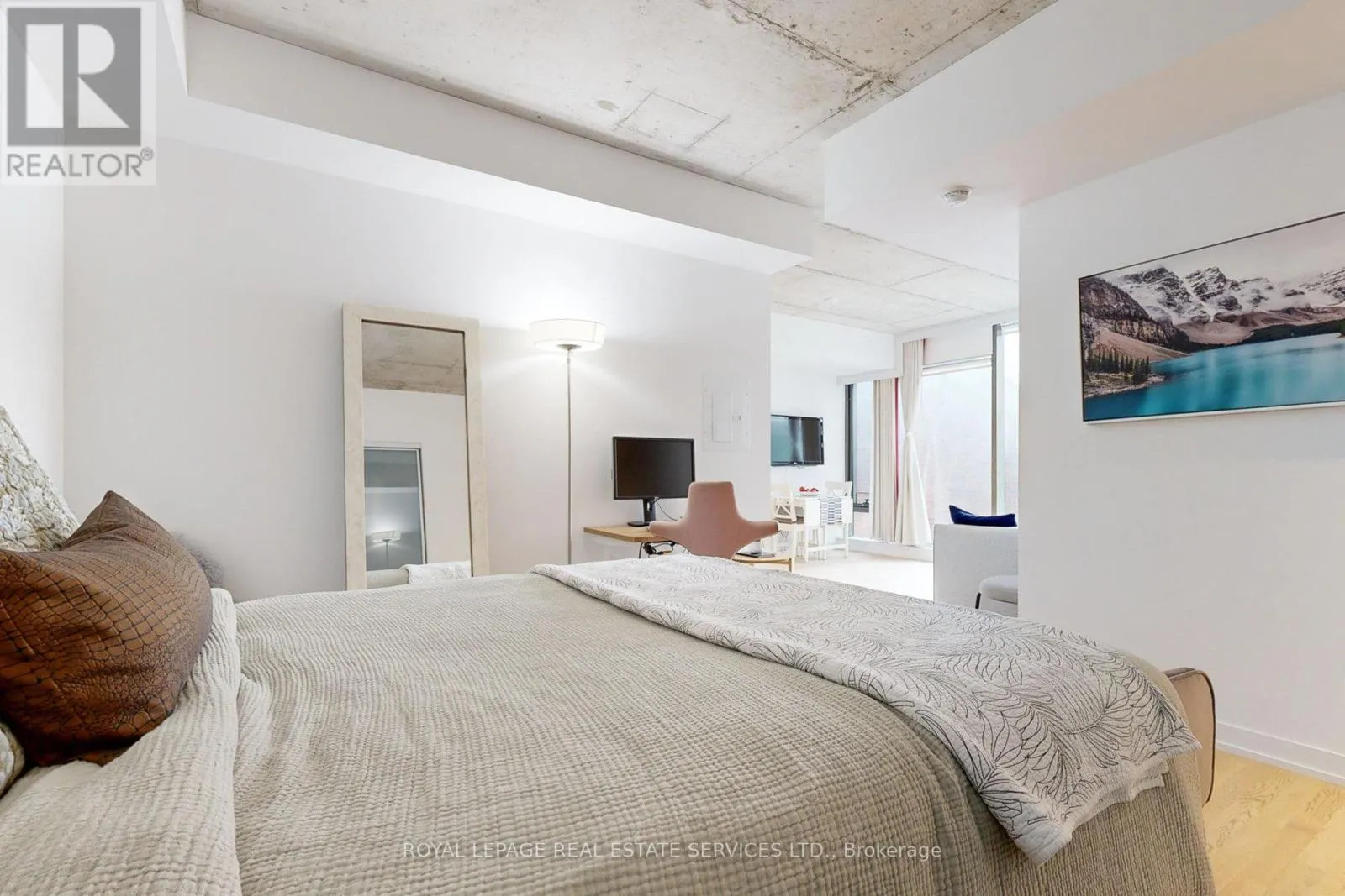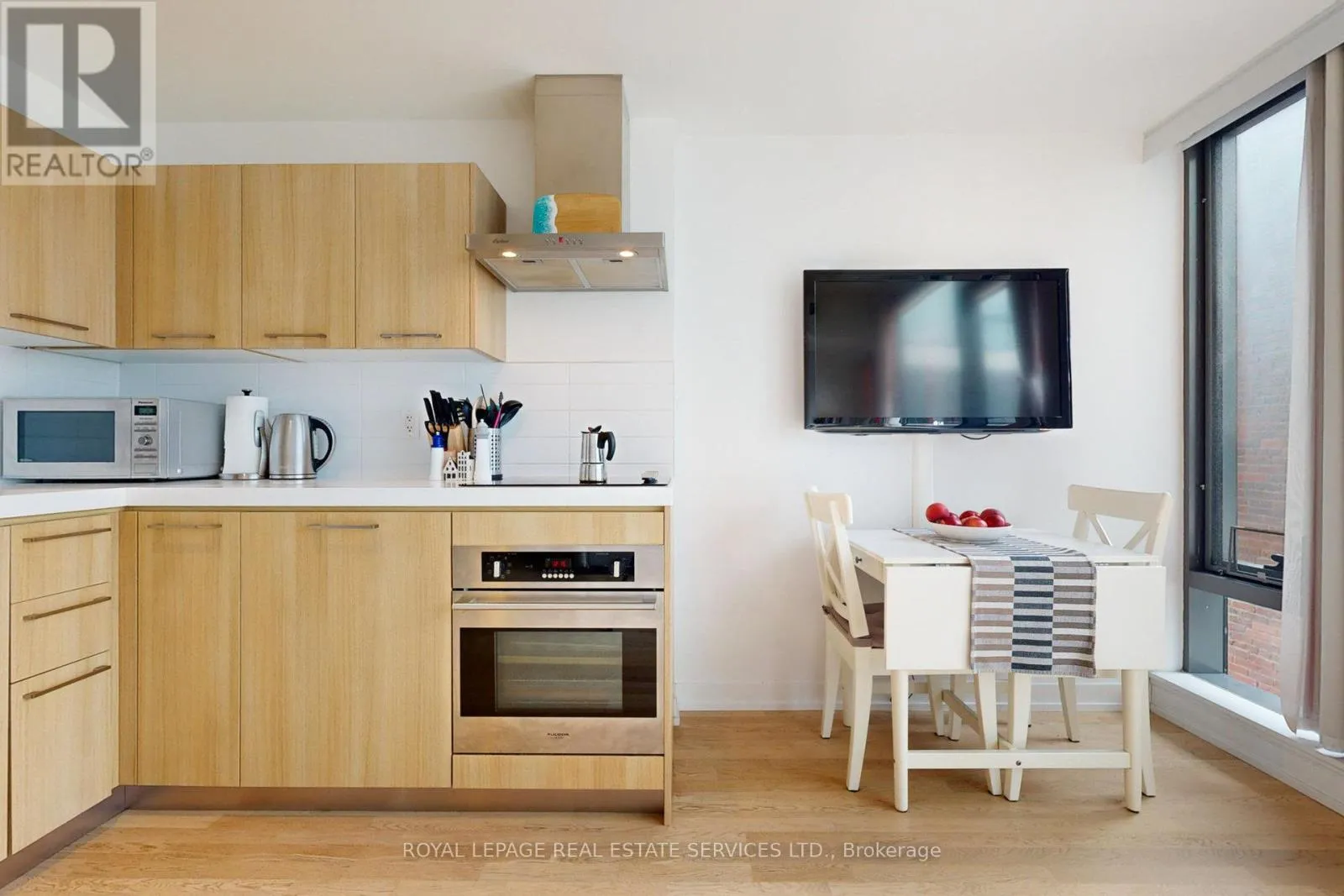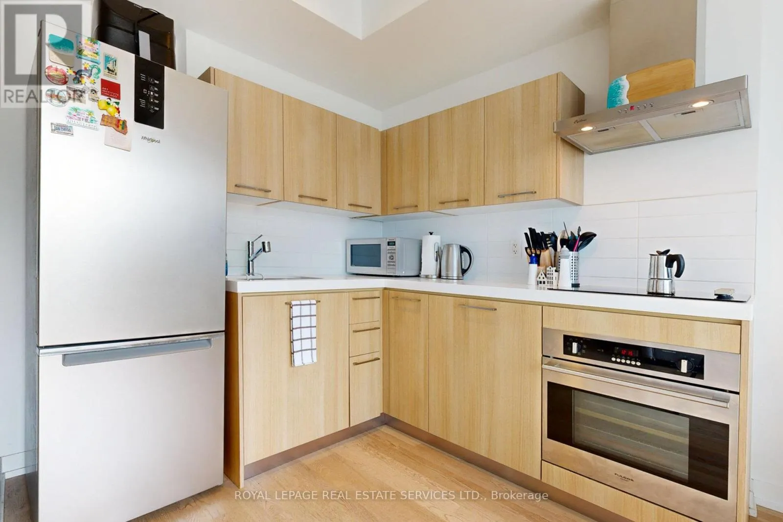 King & Bathurst Impeccably maintained, freshly painted 1-bedroom with a locker at the desirable Fashion House in the heart of King West. Loft style, with soaring exposed concrete ceilings, beautiful finishes and floor-to-ceiling windows bringing in ample West-facing light. Efficient layout, 531 sq ft., with a well-proportioned kitchen/living/dining space. Sleek, modern kitchen with stainless steel appliances including a built-in oven, electric radiant cooktop, range hood, countertop microwave, refrigerator and panelled dishwasher. The bedroom has a large closet with organizers and has been enclosed with a sliding frosted-glass door (new photos coming soon). Well-managed, boutique building with top-notch amenities: gym, 24 hr concierge, party/meeting room, and a rooftop infinity pool with incredible views of the downtown skyline! Ideal location on King West, close to transit, top restaurants, trendy bars and shopping. Well-established maintenance fees include water and a storage locker. This unit has been very well cared for by its owner. Excellent value in a superb building! (id:27476)
