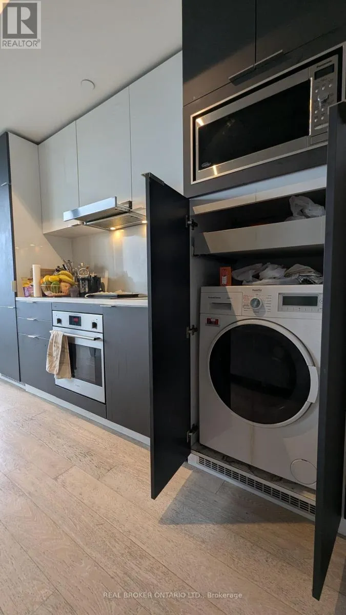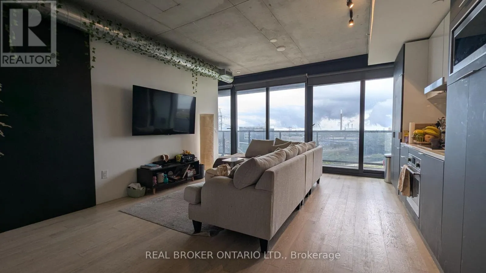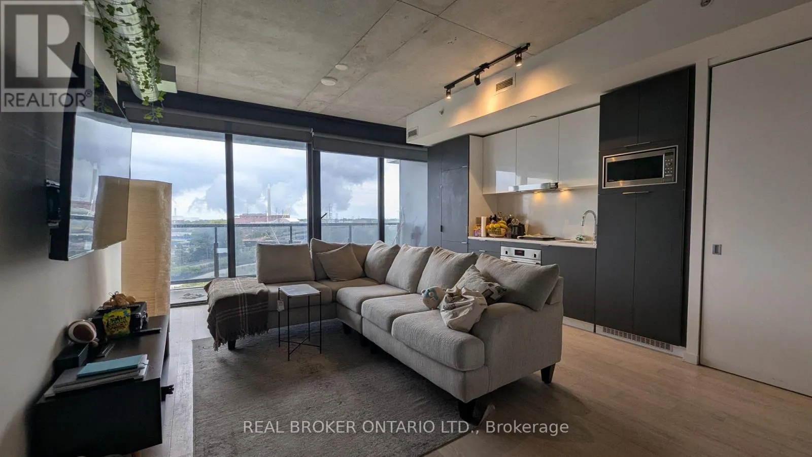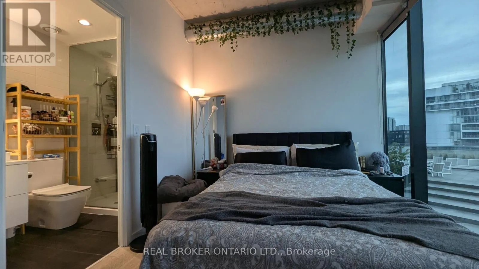 Cross Streets: Bayview/ Lawren Harris Sq. ** Directions: Entrance Facing Bayview. This stunning 2-bedroom, 2-bathroom suite offers 893 sqft of bright, open-concept living, plus a generous 112 sqft southeast-facing balcony, perfect for enjoying your morning coffee or evening views. Flooded with natural light through floor-to-ceiling windows, this suite features exposed 9' concrete ceilings, stylish light fixtures, and contemporary finishes throughout. The primary bedroom includes a spa like ensuite bath, while the second bedroom is perfect for guests or a home office. The modern kitchen boasts all built-in appliances, including dishwasher and washer/dryer. You'll find premium roller blinds located on every window, with blackout curtains in the bedrooms. River City 3 is a LEED Gold certified building with exceptional amenities including an outdoor pool, fitness center, kids playroom, meeting rooms, workshop, dog wash station, concierge service, and more. Nestled in the heart of Corktown Commons, you're steps from the park, Don River Trails, Distillery District, King and Queen Street shops, cafés, and restaurants with quick access to the DVP, & transit. Experience the perfect balance of modern urban living and green space at River City 3 - this beautiful suite truly has it all! 1 parking space and 1 locker Included. Unit to be freshly painted prior to occupancy. (id:27476)