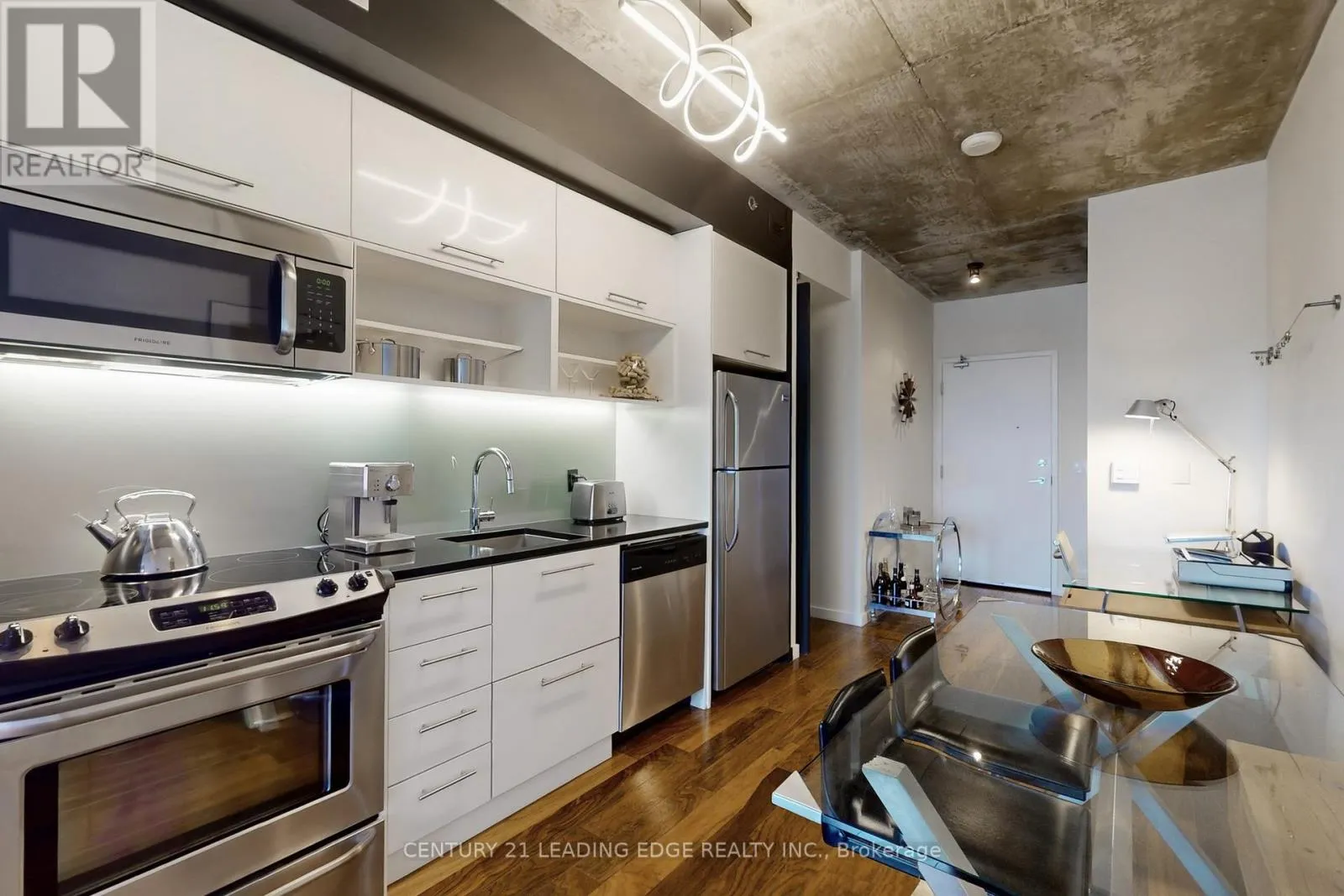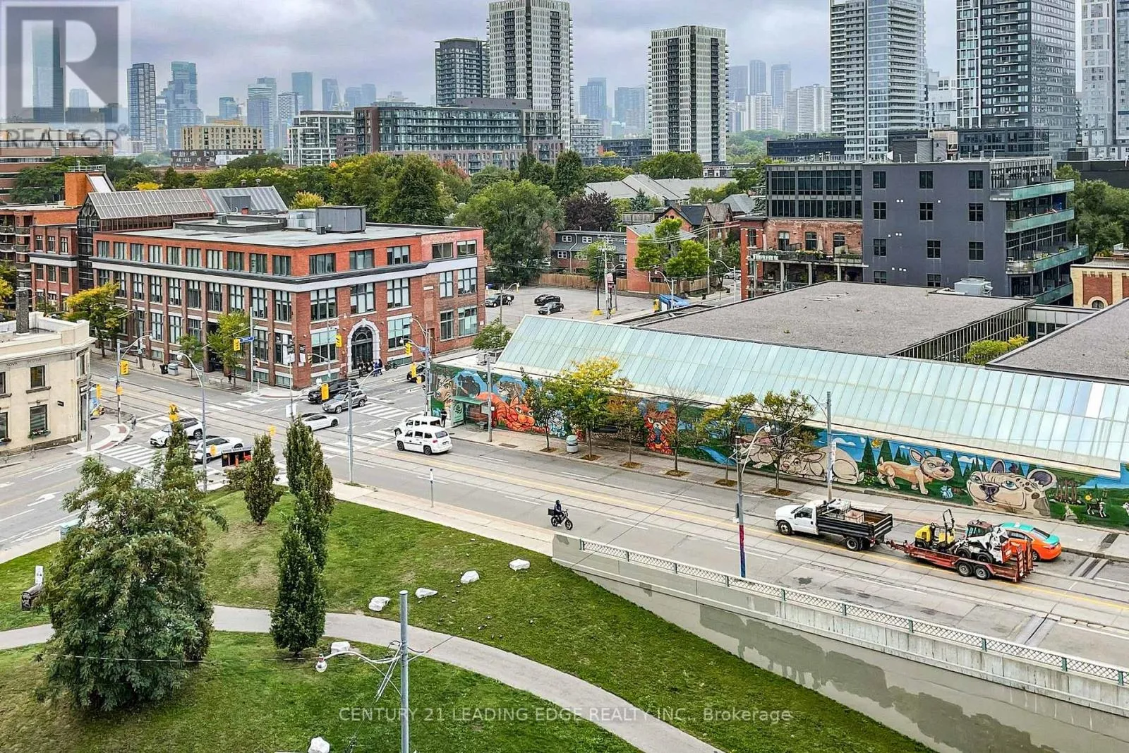 Cross Streets: River St / King St E. ** Directions: Off of King St E or Adelaide St E. STUNNING Loft Style Condo! This bright and sleek 1-bedroom suite offers unobstructed panoramic city views and a bright, open-concept layout with 589 sq. ft. of interior space + A Balcony. The Large Bedroom Easily fits a king-sized bed, boasts a spacious walk-in closet, and offers direct access to the balcony for a relaxing moment overlooking the city! Industrial-chic finishes include 9ft exposed concrete ceilings, galvanized spiral ductwork, floor-to-ceiling windows, and carpet free floors throughout. The modern kitchen features sleek quartz countertops and stainless steel appliances, perfect for entertaining or everyday living! Located just steps to the Distillery District, Leslieville, St. Lawrence Market, Corktown Common Park, and scenic bike trails. Be ahead of the curve - steps to the future Corktown & Riverside/Leslieville Ontario Line stations! Don't miss the Gorgeous Pool, Gym and Multiple Party Rooms as well! (id:27476)