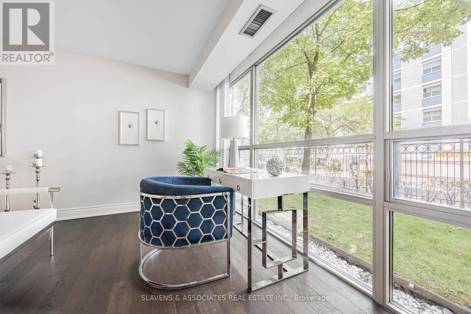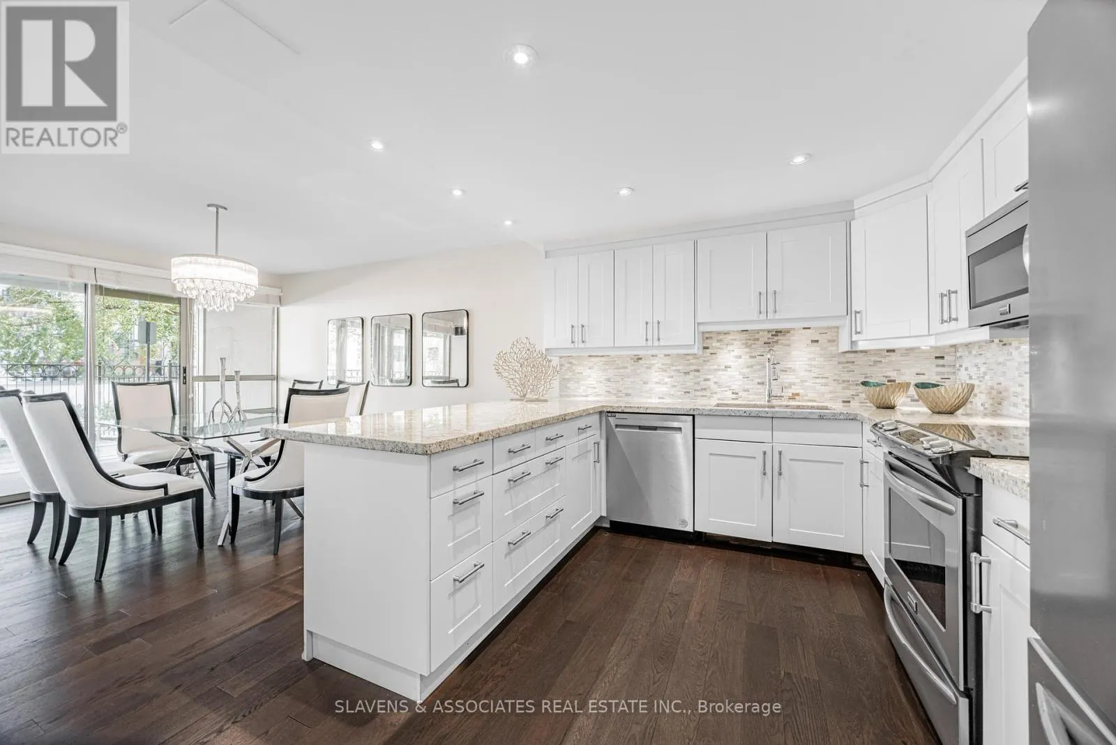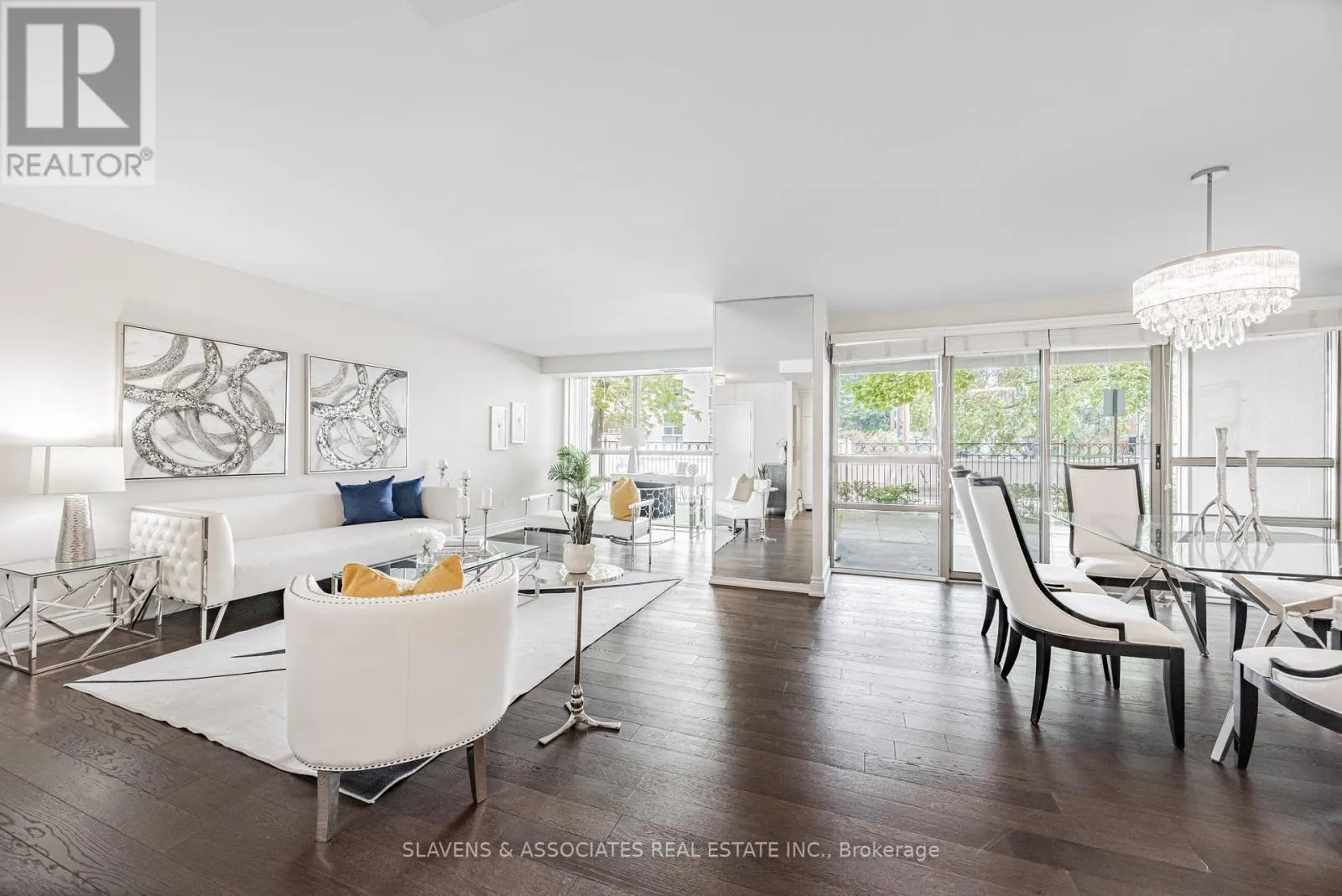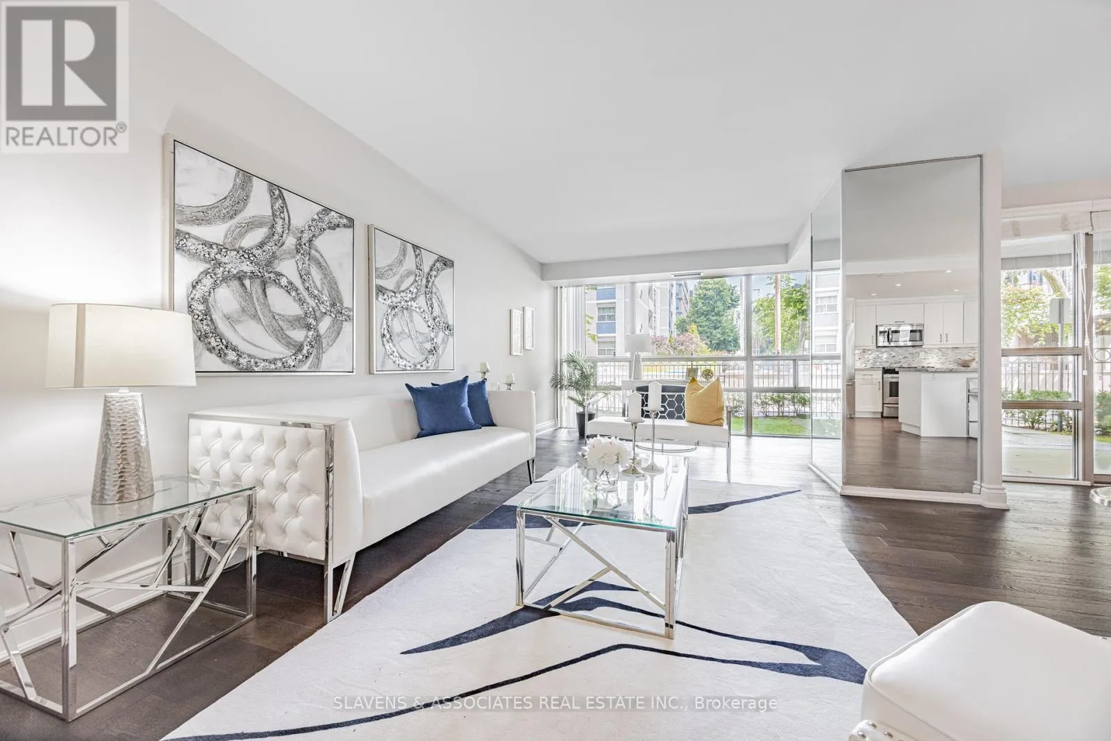 Spadina & St. Clair Welcome to 18 Lower Village Gate. A community like none other where you want to live. Rarely Offered Ground Floor 2 Bedroom/2 Bath East facing Suite With Oversized Principal Rooms, Eat-In Renovated Kitchen, Walk/Out To Private Exclusive Garden + Covered Patio Oasis Over 200 Sq. Ft.(BBQ allowed), This exquisite contemporary Village Gate residence offers approximately 1430 Sq. Ft. for Elegant Everyday Living. Spacious Gourmet Kitchen with top of the line stainless steel appliances and a granite island that seats 5. Incredible attention to detail. The living room is flooded w/ natural light through floor-to-ceiling windows & leads to the serene patio. This is one you don't want to miss. Beautiful Space Conveys A Feeling Of Living In Your Own Luxurious Bungalow. Great Amenities Include: 24 Hr. Gatehouse Security, Outdoor Pool, Exercise Rm, Party Rm, Loads of Visitor Parking. Steps To The Subway, Forest Hill Village Shops & Restaurants and Parks. Maintenance Includes ALL Utilities & Cable TV. (id:27476)