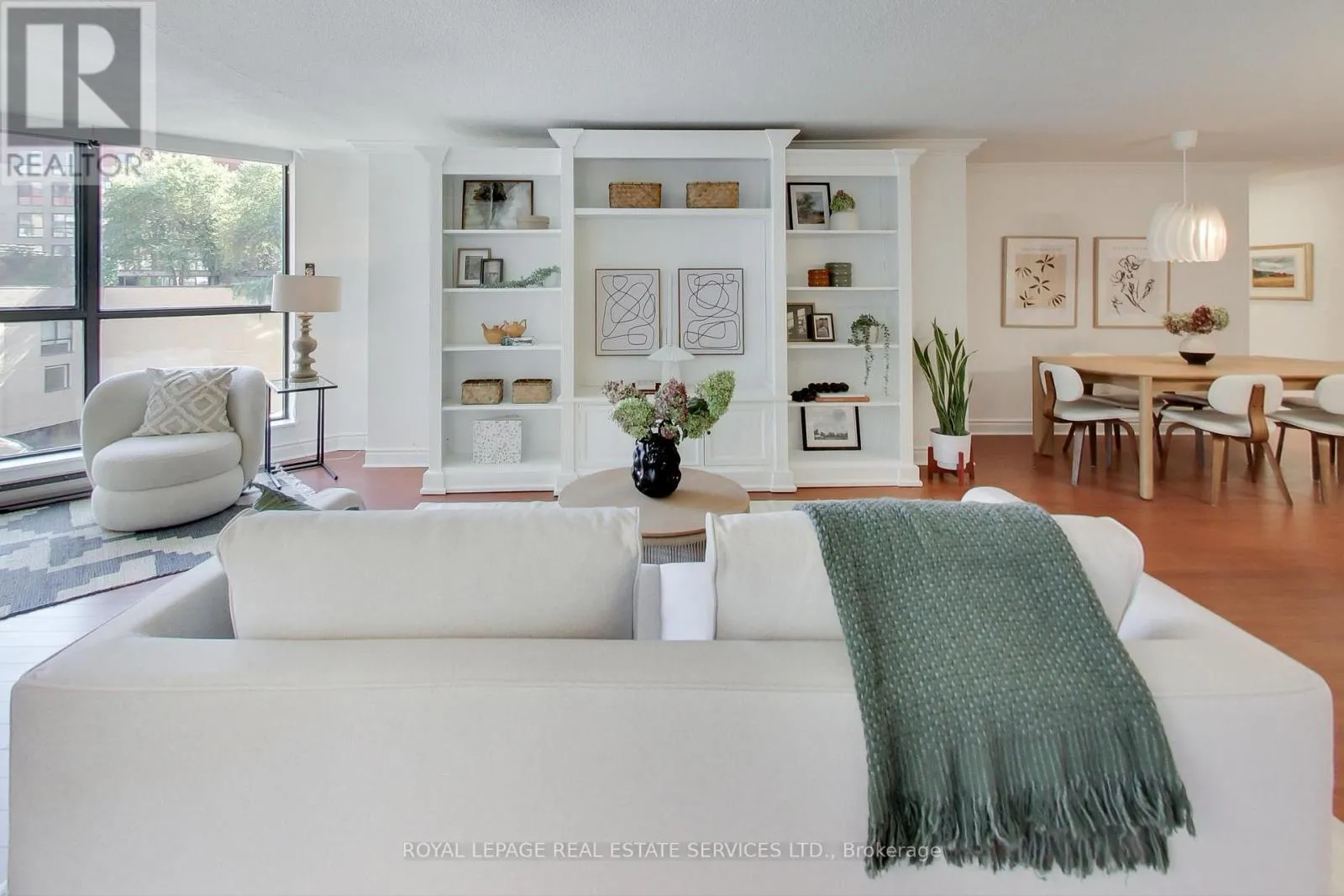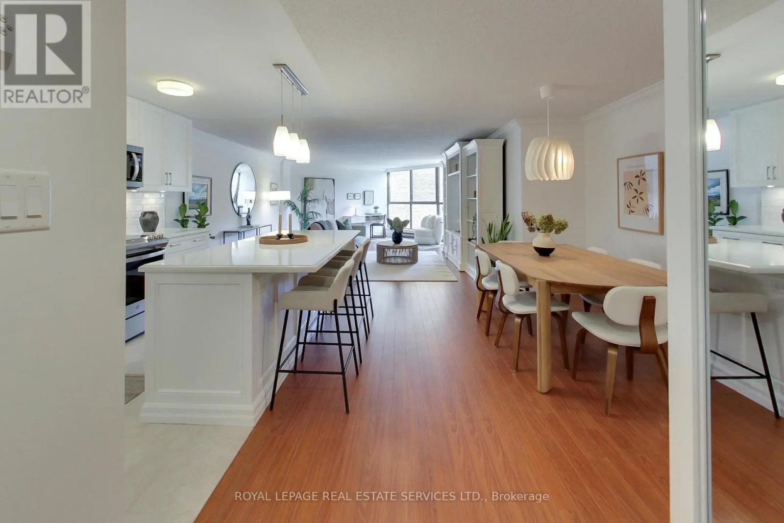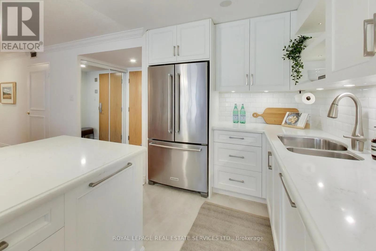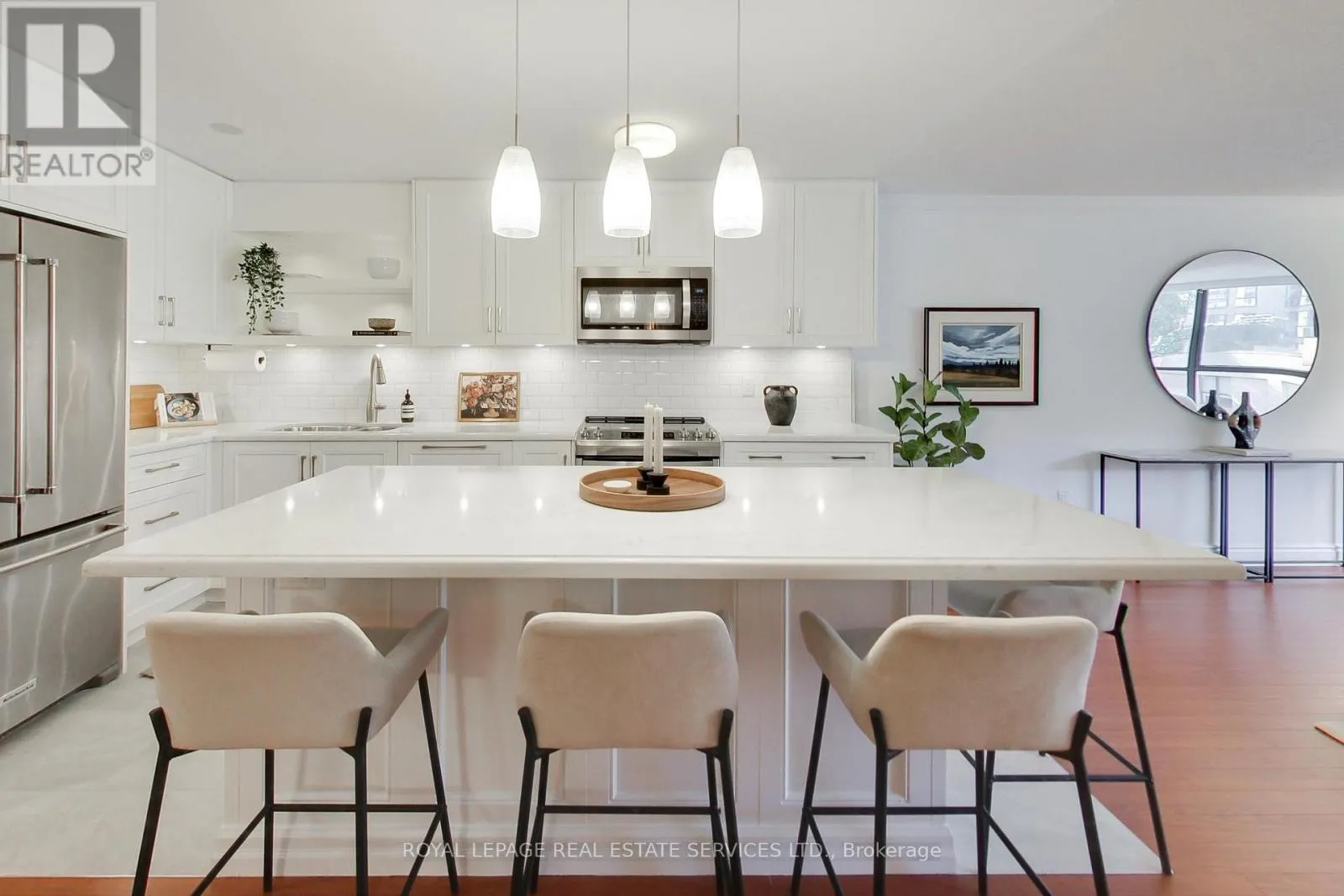 Church & Front Remember when they used to build spacious and gracious condominiums? This one fulfills that memory and even more. You step out of the vibrancy of St. Lawrence Market neighbourhood into the lobby of 35 Church and the concierge greets you with a smile. Up the elevator and down the wide hallway to open your door to a freshly-painted, updated and renovated home. The modern kitchen boasts white quartz countertops, with an abundant island area for chopping vegetables while chatting with friends perched on bar stools. Who doesn't love a large stainless steel fridge, stove, and microwave, with a built-in dishwasher and lots and lots of cupboard space? The kitchen flows into the wide dining and living room space which finishes in floor-to-ceiling windows where the sunlight pours in. It makes sense that this area is often called a solarium. The blinds are automated, so you don't have to leave your comfortable perch, wherever it is. The super-sized wall unit houses your media systems and reading material, along with your collection of ceramics. The 3-piece bathroom is tastefully renovated and generous in size. Down the hall is a linen closet, roomy walk-in closet and then your very large bedroom which you don't have to measure to hope that the bed could fit, with space on each side. A king-sized bed easily slips into this space. Ensuite, quality appliances in the laundry room put the finishing touch on convenience. A home to worship, on Church Street, at an exceptional value per square foot! (id:27476)