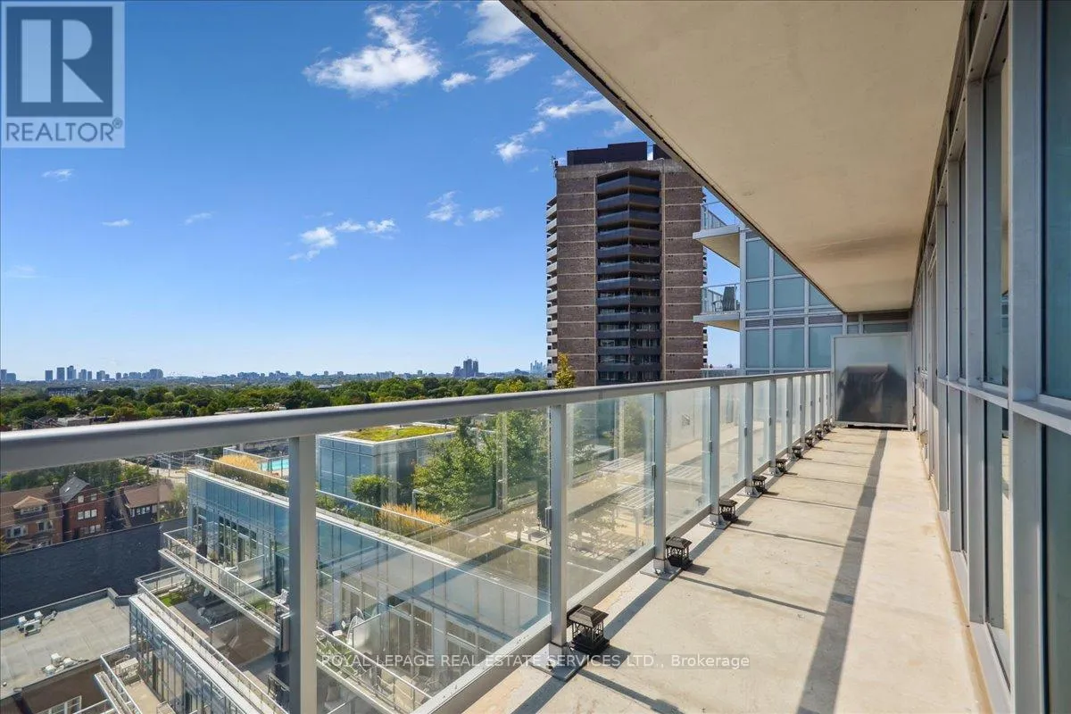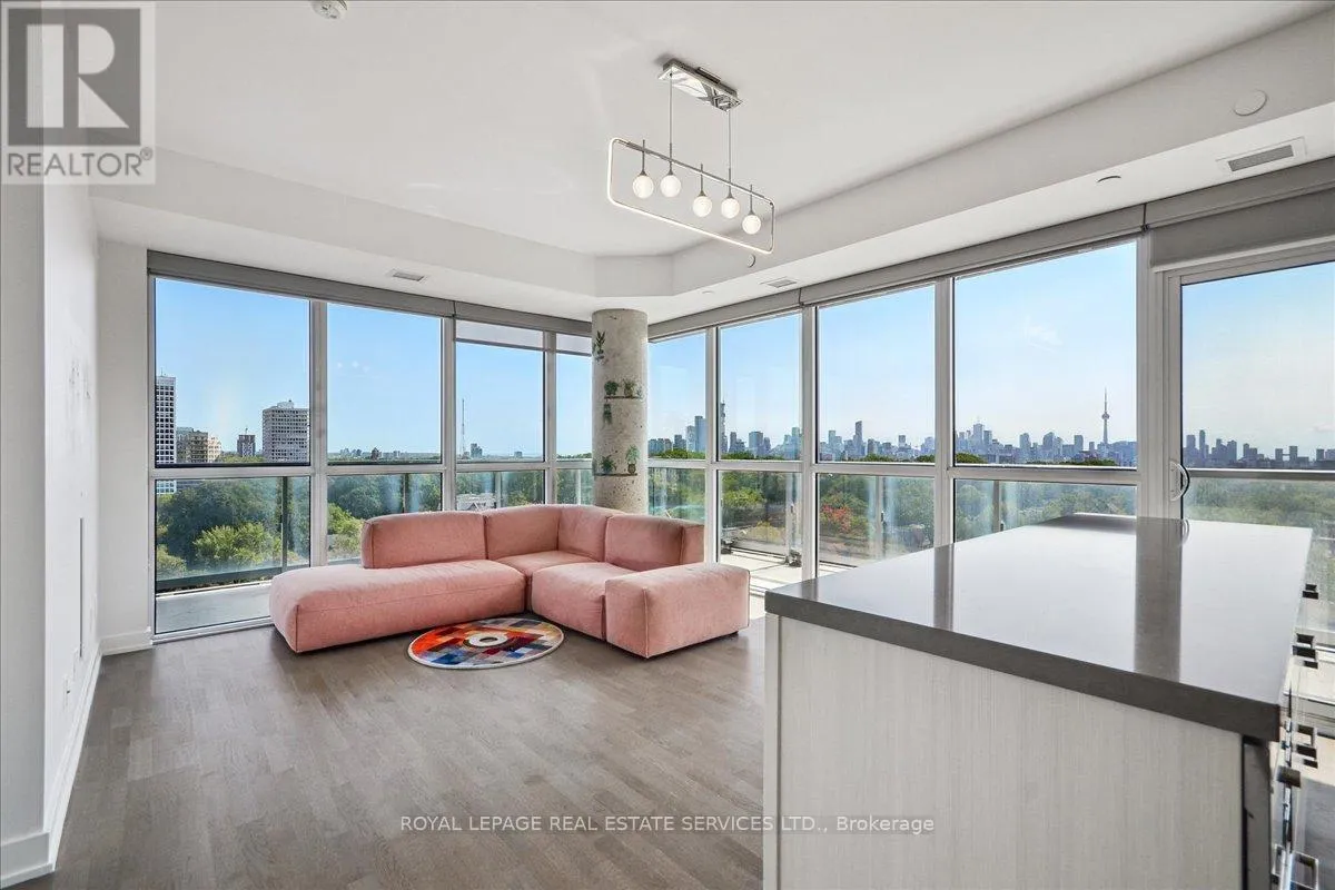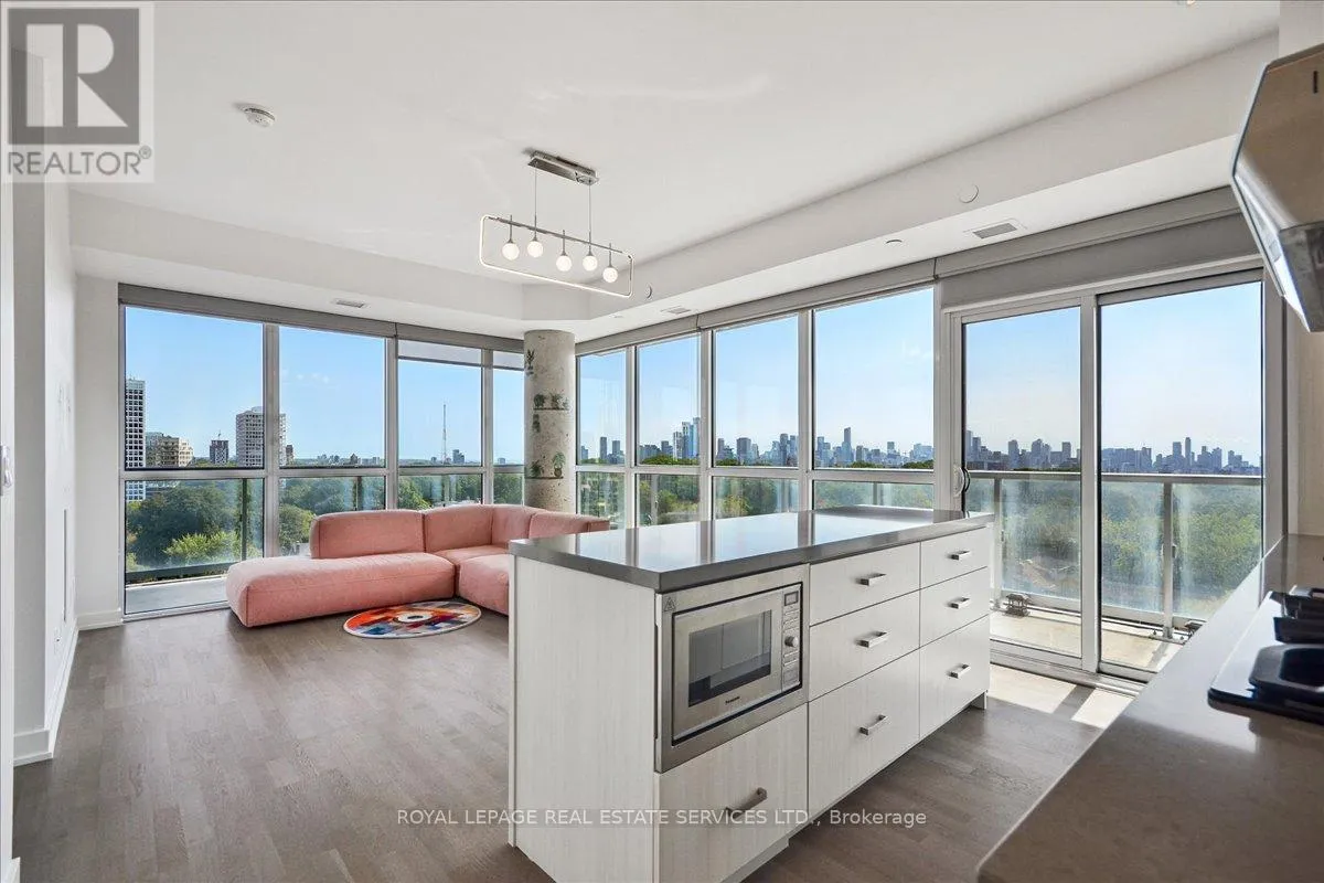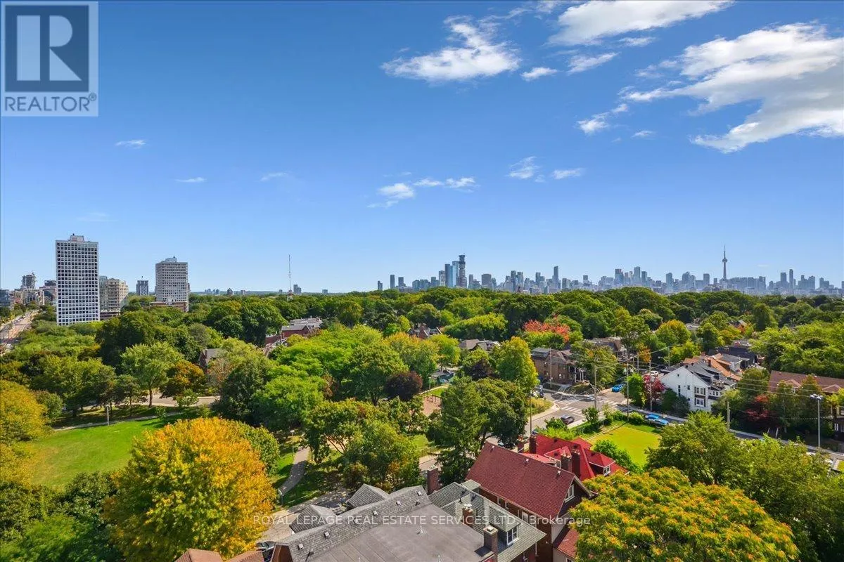 Bathurst St / St. Clair Ave West Modern 2+1 Bedroom Corner Suite with Spectacular Views in the Heart of Casa Loma. Welcome to this luxurious 2+1 bedroom corner suite, perfectly situated to offer unmatched views of the Toronto skyline and Lake Ontario. With floor-to-ceiling windows, engineered hardwood flooring throughout, and an expansive wraparound balcony with a gas BBQ hookup. This home is designed for both entertaining and relaxing while taking in breathtaking south-facing vistas. Key Upgrades: Custom Range Hood and a new larger fridge enhance the kitchen's style and functionality. Dual Shade Roller Blinds ($6,000 value) allow for customized light control and privacy. Custom Cabinetry with Ample Storage throughout, providing a clean, modern look and maximizing space. New LG Washer/Dryer Tower ensures efficient laundry care with sleek, stacked design. Upgraded Toilets in both bathrooms for modern convenience. Custom Shelving in all closets for added organization and smart storage solutions. New Kitchen Faucet for an elegant, contemporary touch. Additional LED Flush Lighting throughout the suite for a well-lit, inviting atmosphere.The open-concept living and dining area seamlessly flows into the chef-inspired kitchen, which features a gas stove, a large oversized island with seating for six, sleek cabinetry, and a custom six-door pantry perfect for entertaining guests or preparing meals.The primary bedroom offers a built-in closet system, a modern 3-piece ensuite, and direct access to the balcony for your morning coffee with a view. The second bedroom is filled with natural light from the floor-to-ceiling windows and offers stunning lake views, a double closet, and ample space.The versatile den offers the perfect spot for a home office, reading nook, or nursery, making it adaptable to your lifestyle needs. With two full bathrooms and premium finishes throughout, this suite is the epitome of modern urban living. (id:27476)