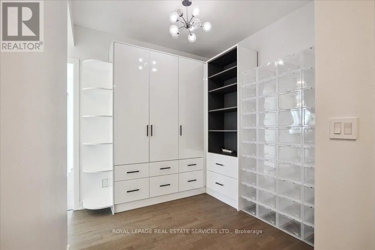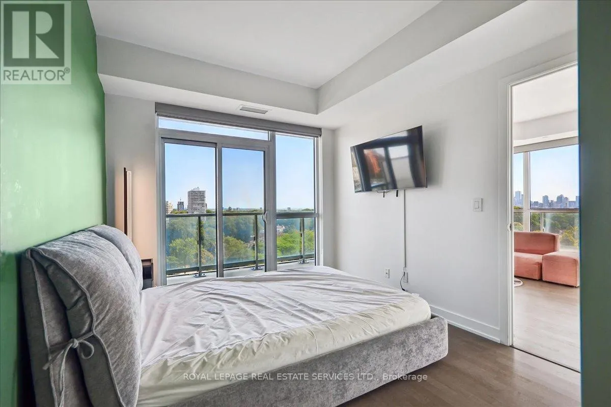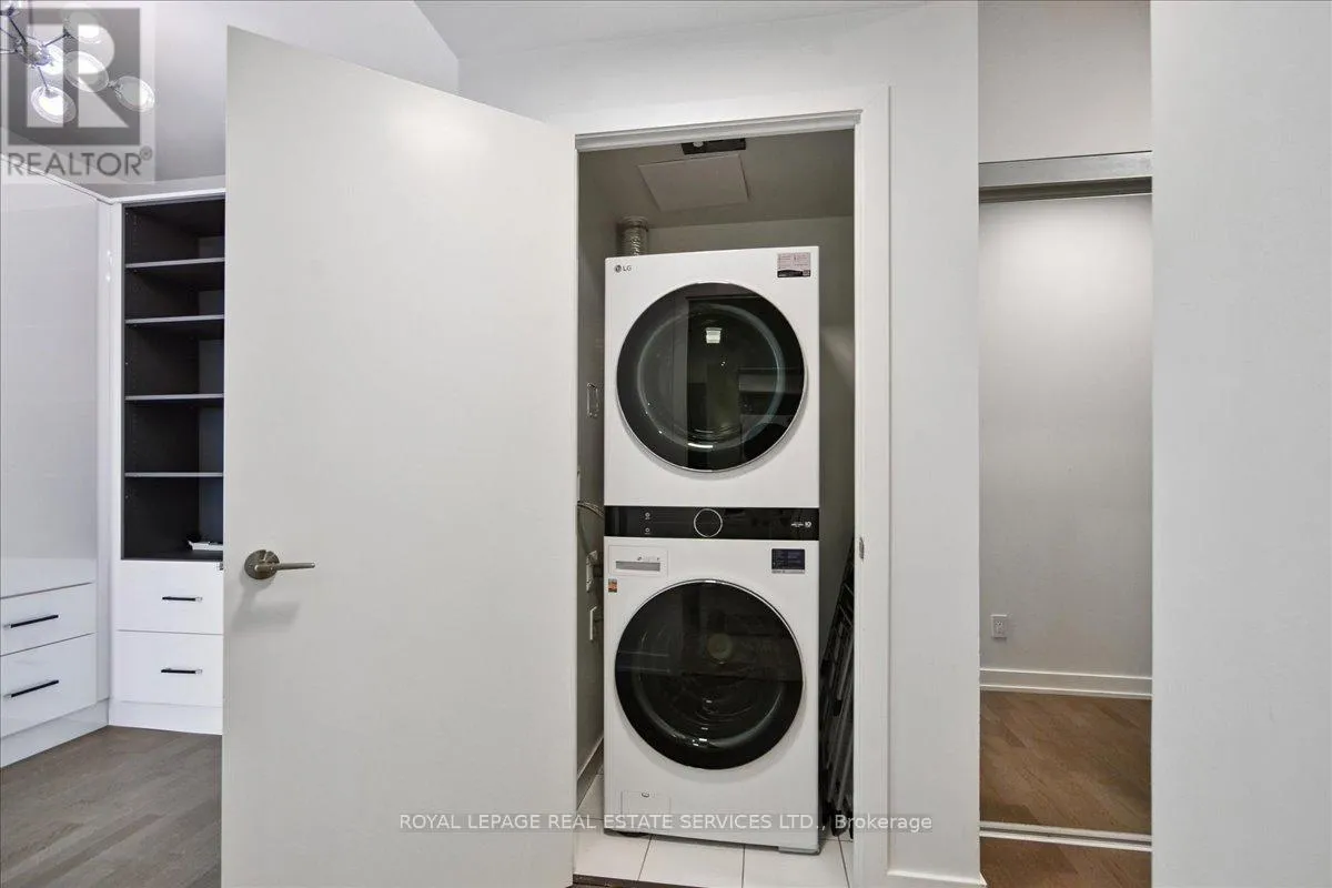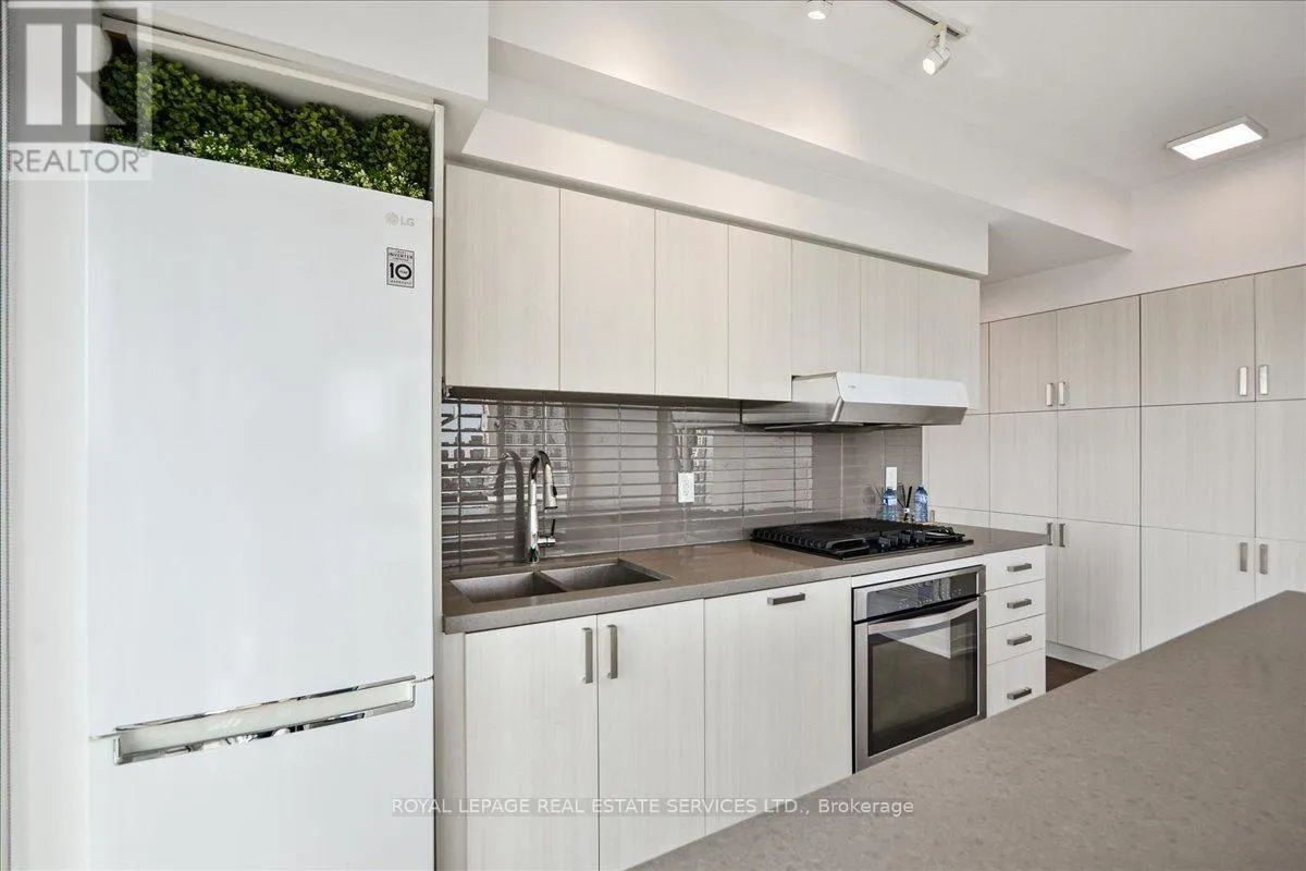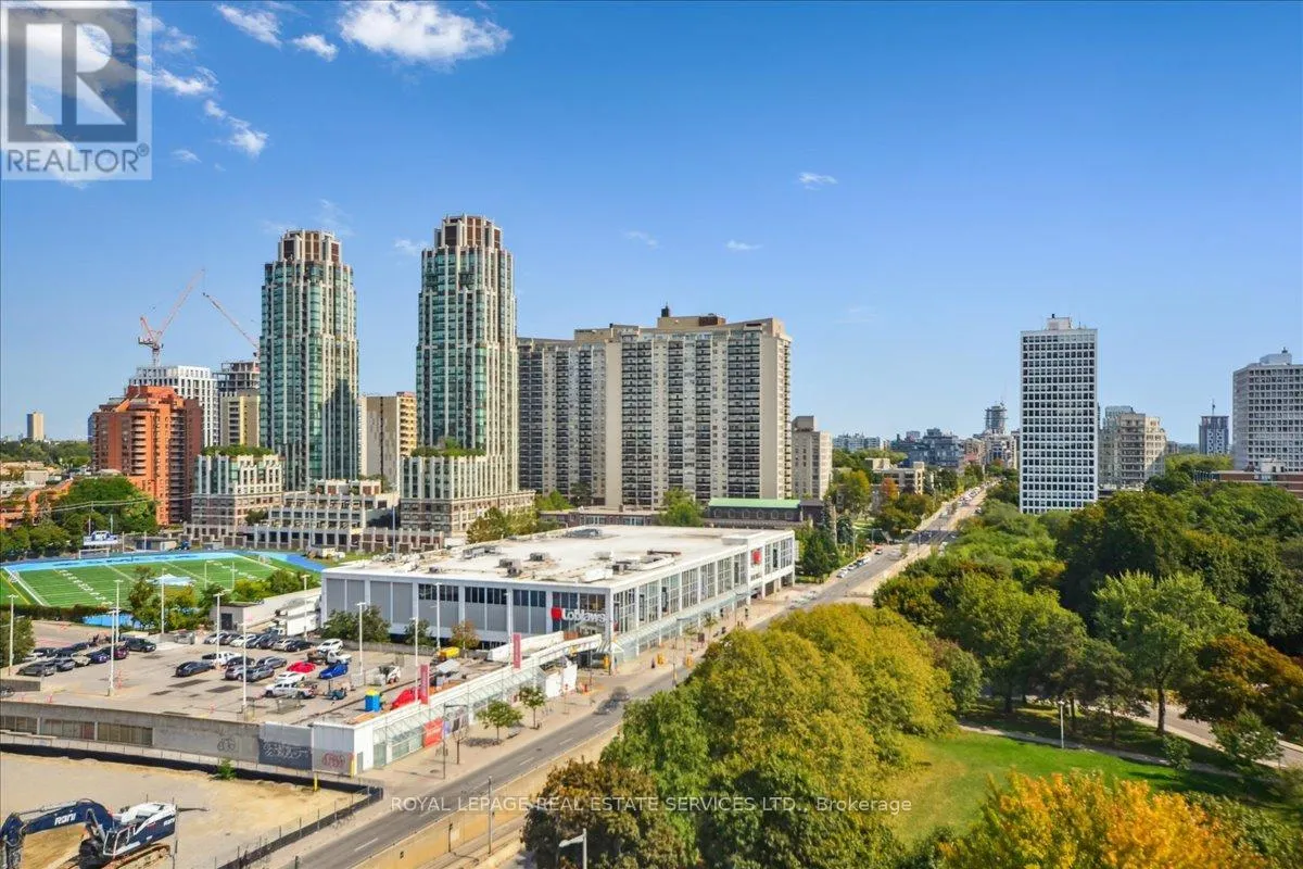 Bathurst St / St. Clair Ave West Modern 2+1 Bedroom Corner Suite with Spectacular Views in the Heart of Casa Loma. Welcome to this luxurious 2+1 bedroom corner suite, perfectly situated to offer unmatched views of the Toronto skyline and Lake Ontario. With floor-to-ceiling windows, engineered hardwood flooring throughout, and an expansive wraparound balcony with a gas BBQ hookup. This home is designed for both entertaining and relaxing while taking in breathtaking south-facing vistas. Key Upgrades: Custom Range Hood and a new larger fridge enhance the kitchen's style and functionality. Dual Shade Roller Blinds ($6,000 value) allow for customized light control and privacy. Custom Cabinetry with Ample Storage throughout, providing a clean, modern look and maximizing space. New LG Washer/Dryer Tower ensures efficient laundry care with sleek, stacked design. Upgraded Toilets in both bathrooms for modern convenience. Custom Shelving in all closets for added organization and smart storage solutions. New Kitchen Faucet for an elegant, contemporary touch. Additional LED Flush Lighting throughout the suite for a well-lit, inviting atmosphere.The open-concept living and dining area seamlessly flows into the chef-inspired kitchen, which features a gas stove, a large oversized island with seating for six, sleek cabinetry, and a custom six-door pantry perfect for entertaining guests or preparing meals.The primary bedroom offers a built-in closet system, a modern 3-piece ensuite, and direct access to the balcony for your morning coffee with a view. The second bedroom is filled with natural light from the floor-to-ceiling windows and offers stunning lake views, a double closet, and ample space.The versatile den offers the perfect spot for a home office, reading nook, or nursery, making it adaptable to your lifestyle needs. With two full bathrooms and premium finishes throughout, this suite is the epitome of modern urban living. (id:27476)