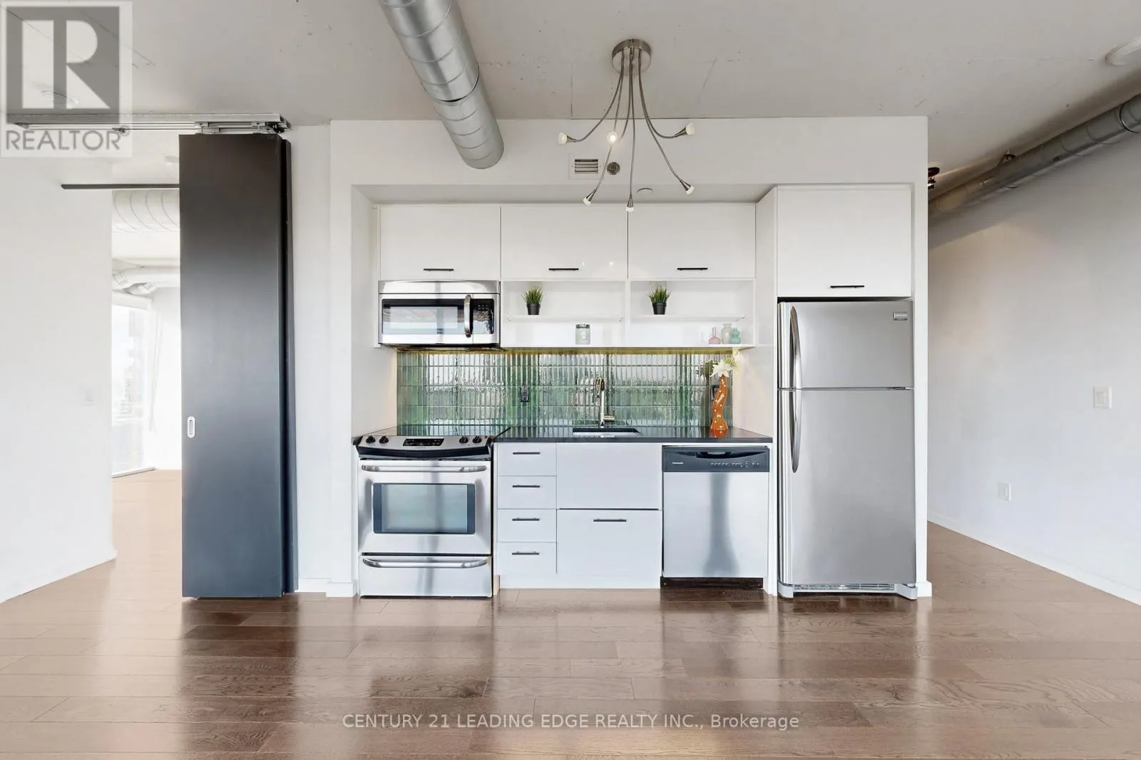 Cross Streets: King St & Lower River. ** Directions: King/Lower River. Live in the heart of Corktown in this modern 2-bedroom, 2-bathroom condo located in the highly sought-after River City 2 building. This bright and stylish soft-loft suite offers 696 square feet of functional living space plus a spacious 114 square foot balcony, featuring floor-to-ceiling windows, 9-foot exposed concrete ceilings, and unobstructed views that fill the unit with natural light. The upgraded kitchen and bathroom cabinetry, sleek countertops, stainless steel appliances, and hardwood flooring throughout create a contemporary and inviting atmosphere. Enjoy generous closet space, custom window coverings, two bike lockers, and a private storage locker. Residents benefit from exceptional amenities including a state-of-the-art fitness centre, yoga and wellness studios, media and billiards rooms, a party lounge, business centre with Wi-Fi, guest suites, 24-hour concierge, and outdoor features such as a heated lap pool, sauna, rooftop terrace with BBQs, and a landscaped courtyard. Ideally situated in the Canary District just east of the Distillery, you're steps from shops, restaurants, and the King streetcar, with Union Station and the Financial District only minutes away. Nature lovers will appreciate the nearby Don River and Corktown Common trails, offering scenic paths for walking, running, and cycling**Unit comes with Locker and option to add parking spot for $150 extra. (id:27476)