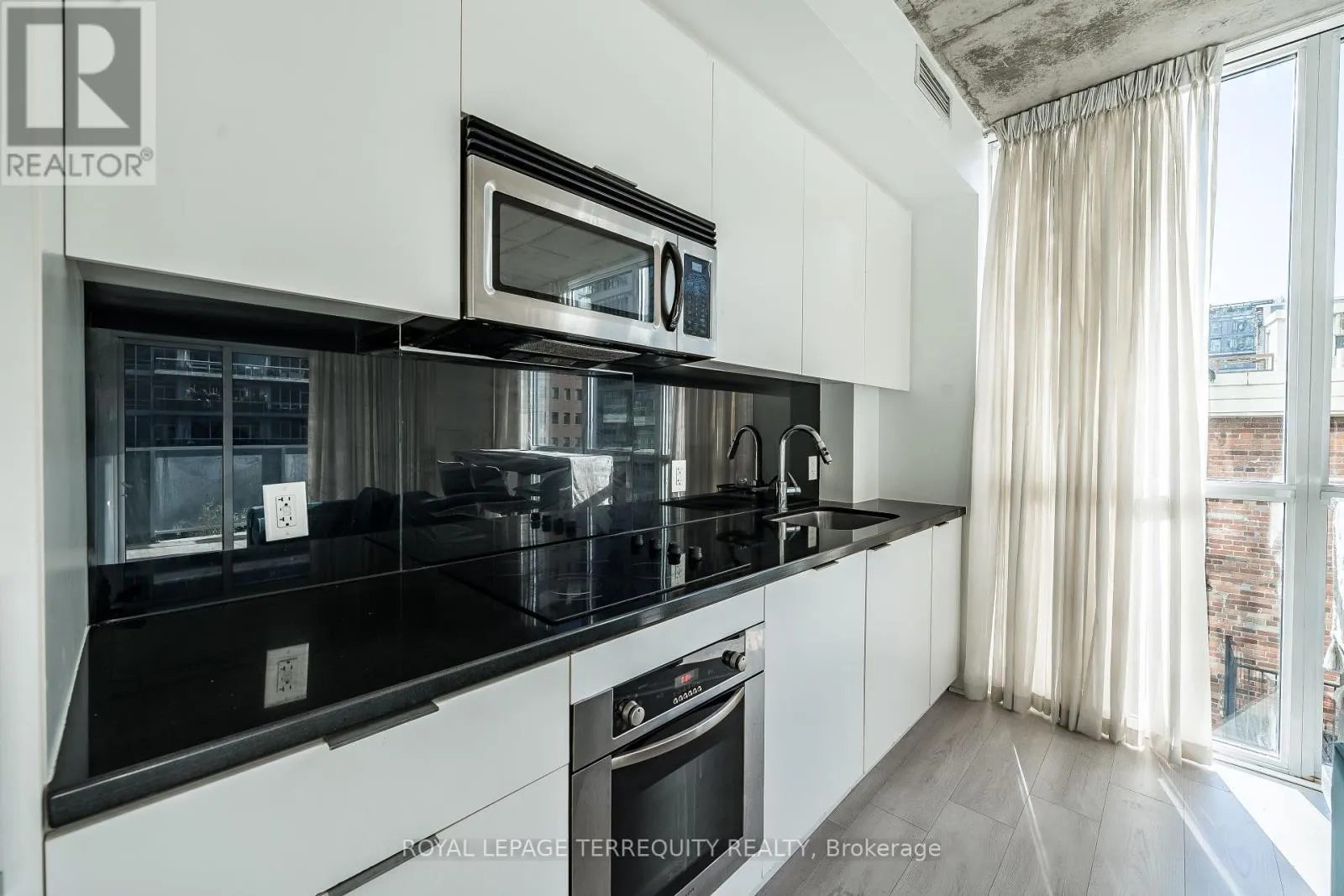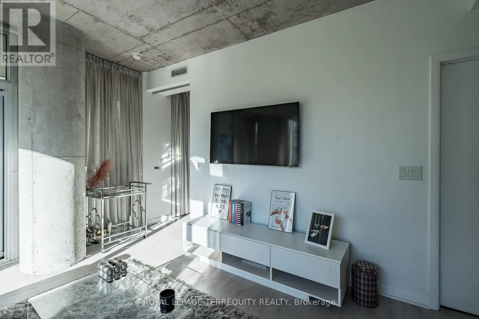 King And Spadina Welcome to The Victory Lofts a boutique condo building located in the heart of King West! Nestled within Toronto's vibrant Fashion District, this stunning loft features exposed concrete ceilings and columns, open-concept living with floor-to-ceiling windows, and a spacious balcony spanning the entire length of the suite. The second bedroom is perfect for a home office or guest space, and the unit also comes with parking for added convenience. The location is unbeatable everything you need is within walking distance. Just minutes away from The Well, the Ace Hotel, and the Waterworks Food Hall, you'll be surrounded by trendy restaurants, cozy coffee shops, and beautiful parks. Enjoy the perfect blend of downtown convenience and boutique-style comfort, with easy access to the Rogers Centre, CN Tower, shopping, dining, major highways, and public transit. (id:27476)