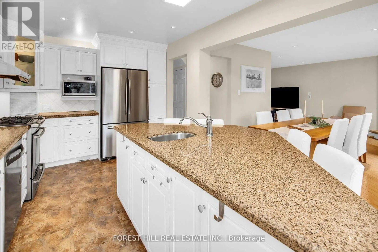 Ellesmere/Conlins Welcome to this beautifully renovated 4+2 bedroom, 4-bathroom executive home in the sought-after Highland Creek neighborhood. Nestled on a sunny south-facing lot, this home boasts modern finishes, a fully automated smart home system, EV charging and a thoughtfully designed layout perfect for families, professionals, or multi-generational living. Located just steps from schools, parks, UofT Scarborough, and minutes from Highway 401. The main floor showcases an open-concept design, featuring a spacious living and family room with a cozy fireplace and walkout to the deck, a formal dining room, and a renovated eat-in kitchen with granite counters, a center island, breakfast bar, high-end exhaust fan, and refinished cabinets. The king-sized primary suite is a private retreat, complete with a renovated ensuite, sitting area, and a spacious, built-out walk-in closet. The main floor laundry room offers dual entry access, providing an excellent mudroom space. Incredible secondary suite potential, featuring two additional rooms ideal for bedrooms or offices, a spacious living area, a home theatre room, and a luxurious spa-like bathroom, cold room pantry. With plumbing and electrical rough-ins already in place for a second kitchen/bar, this space is perfect for multi-generational living or future rental income. EXTRAS: The backyard is an entertainers dream, featuring a two-tier Trexx composite sundeck with cedar accents, natural gas line for BBQ or outdoor heating, and a private, tree-lined setting. Additional upgrades include updated lighting fixtures throughout, brand-new gas fireplace, a high-efficiency furnace, thermal windows, 30-year shingles, smart LED pot lights, and a brand-new 2024 EV charger. (id:27476)